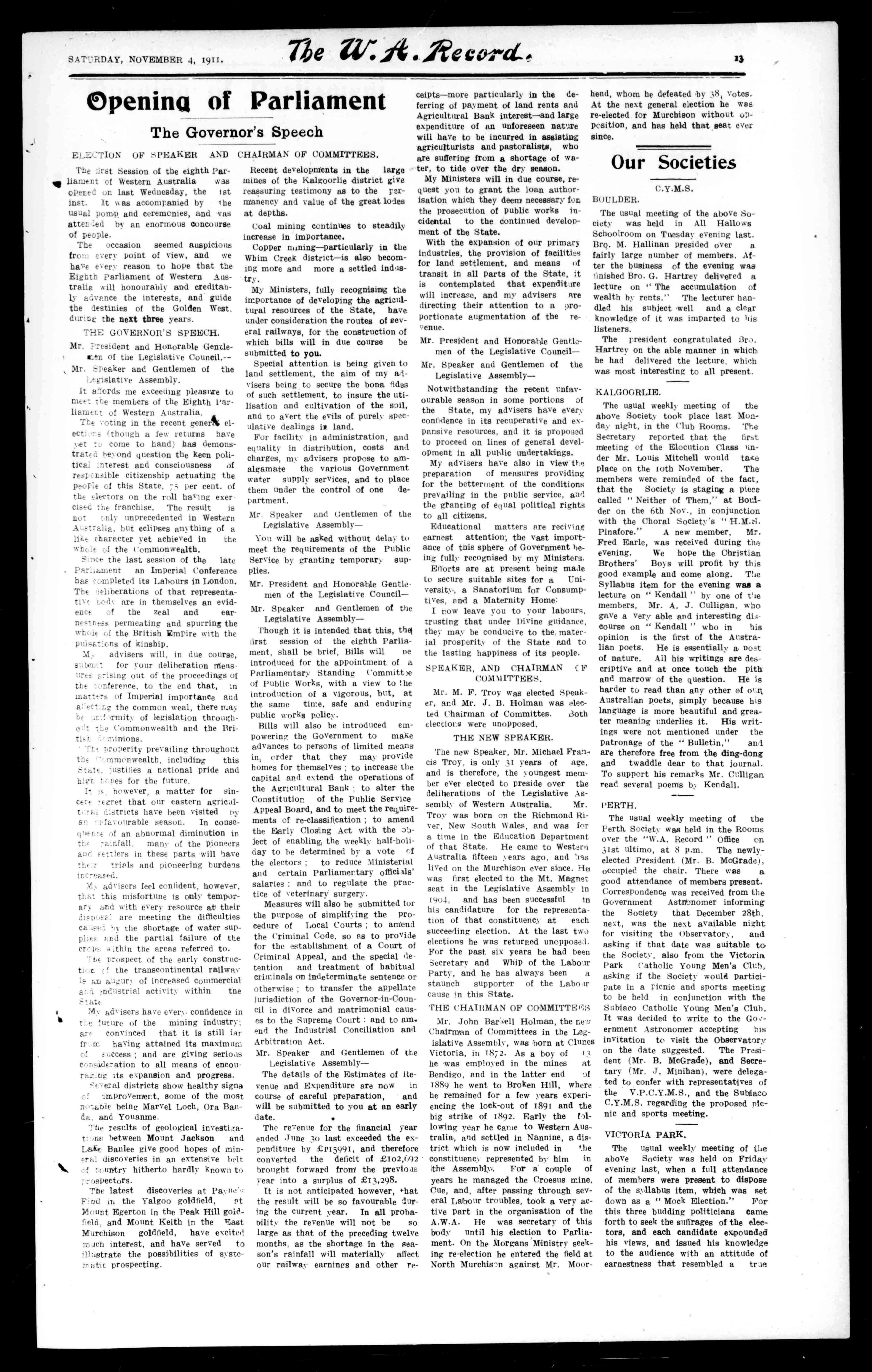 TheWest AUSTRALIAN RECORD SATURDAY,NOVEMBERI.1911