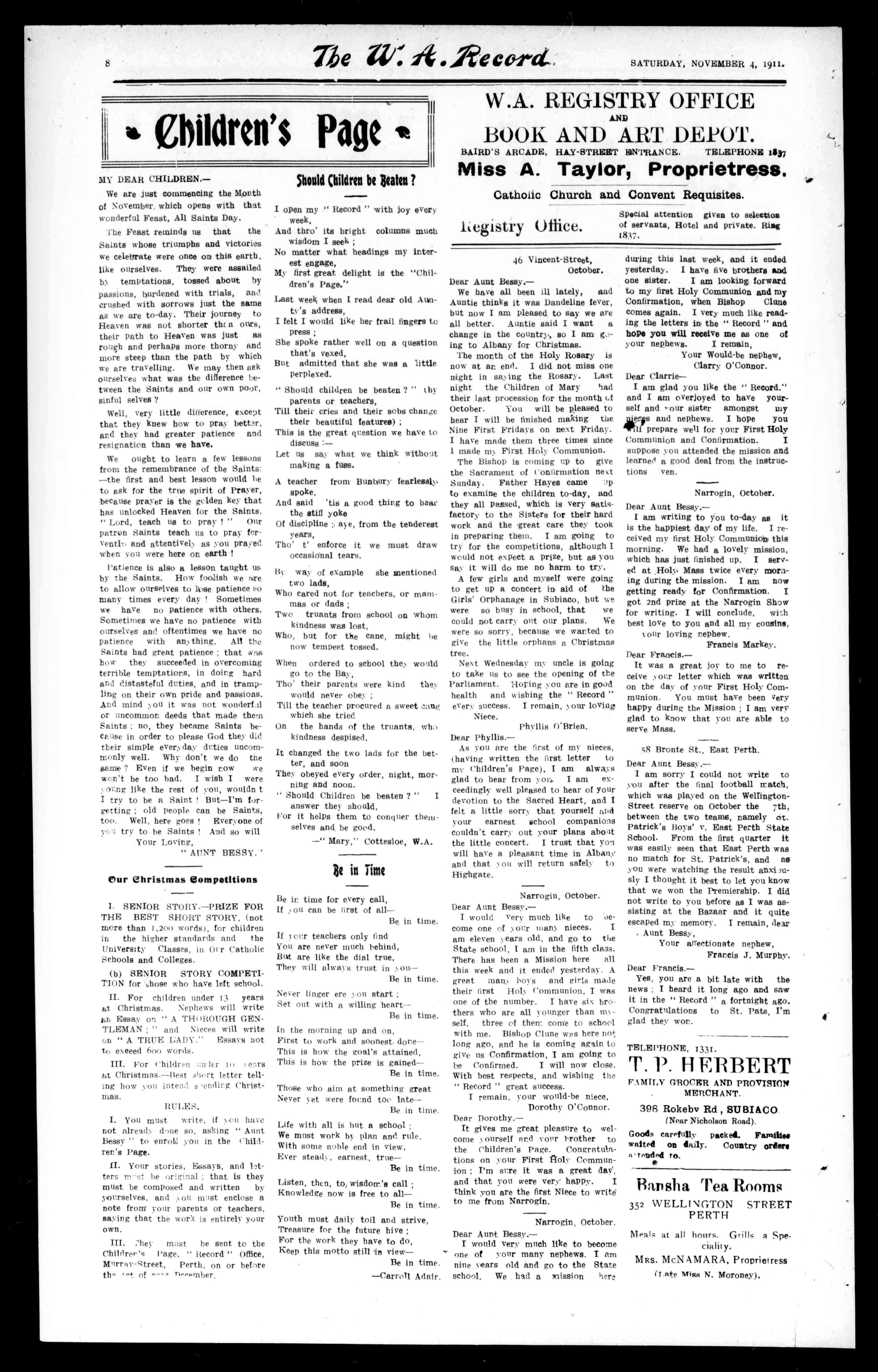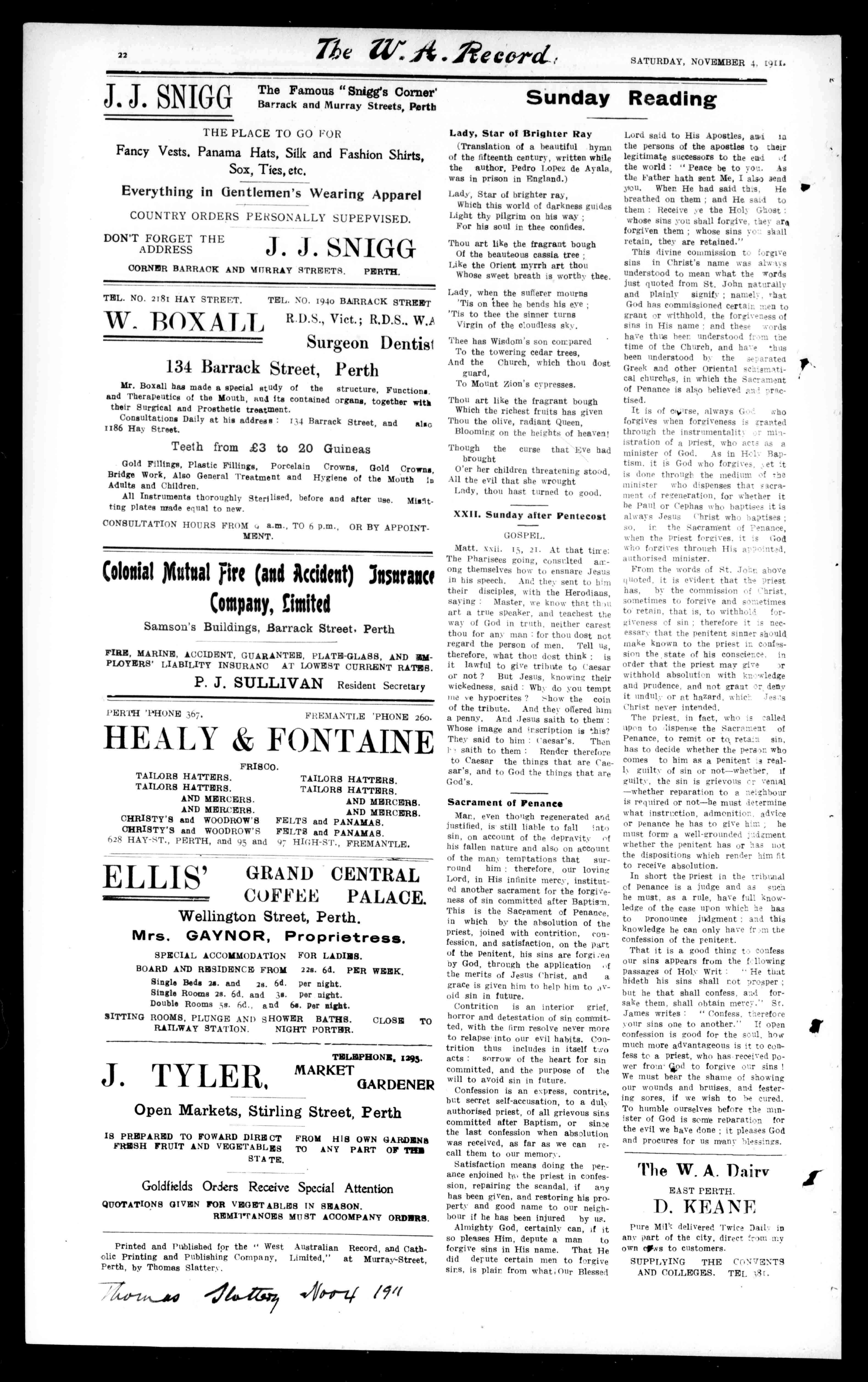 PrintedandPublishedforthe"WestAustralianRecord,andCatholicPrintingandPublishingCompany,Limited,"atMurray-Street, Perth,byThomasSlattery.