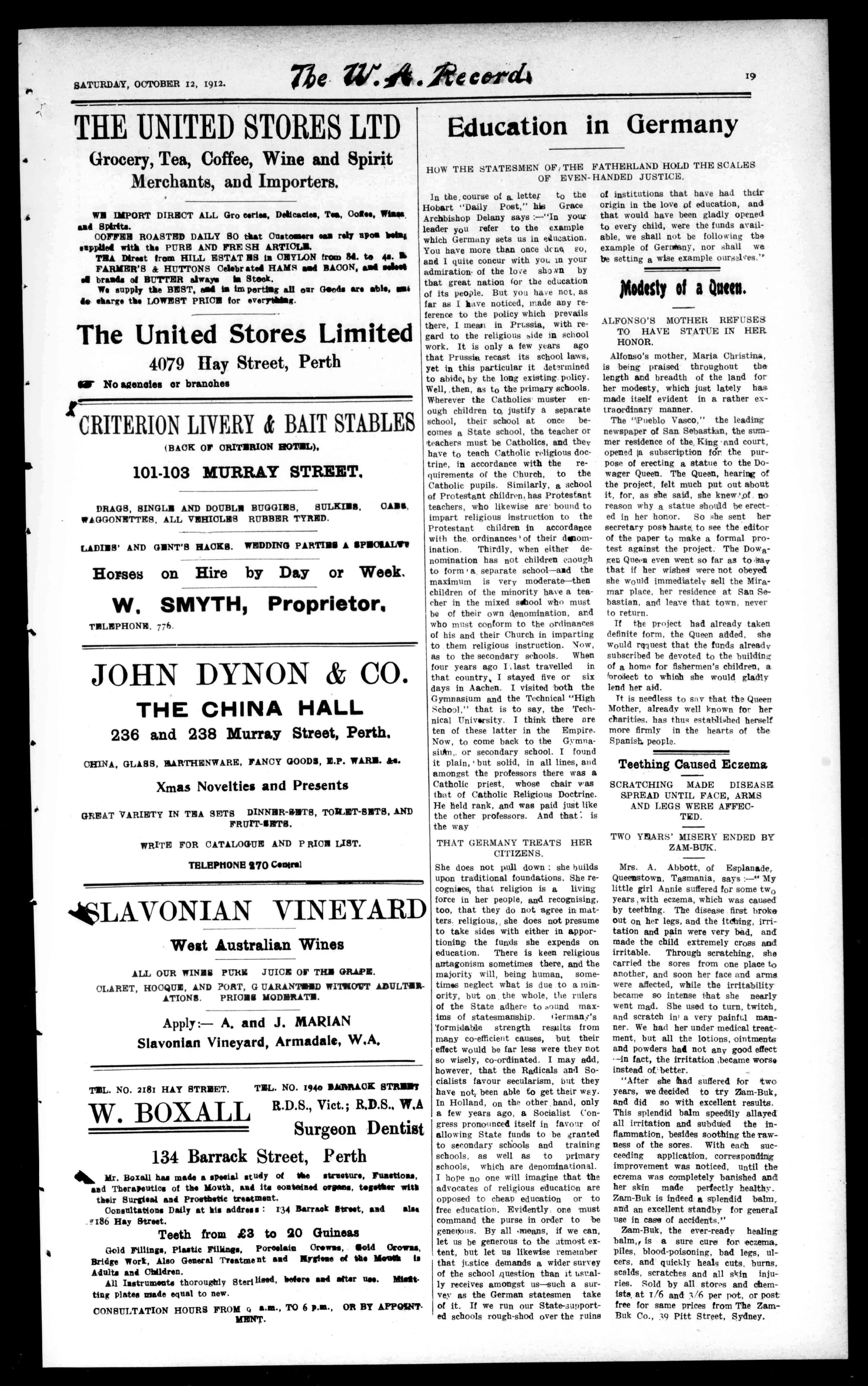 195PierStreet,Perth. PracticalIndentured(3111111811). COACHANDM@TORCARPAM. TERS. PatronisedbyVice-Royalty. 'PHONE1244.