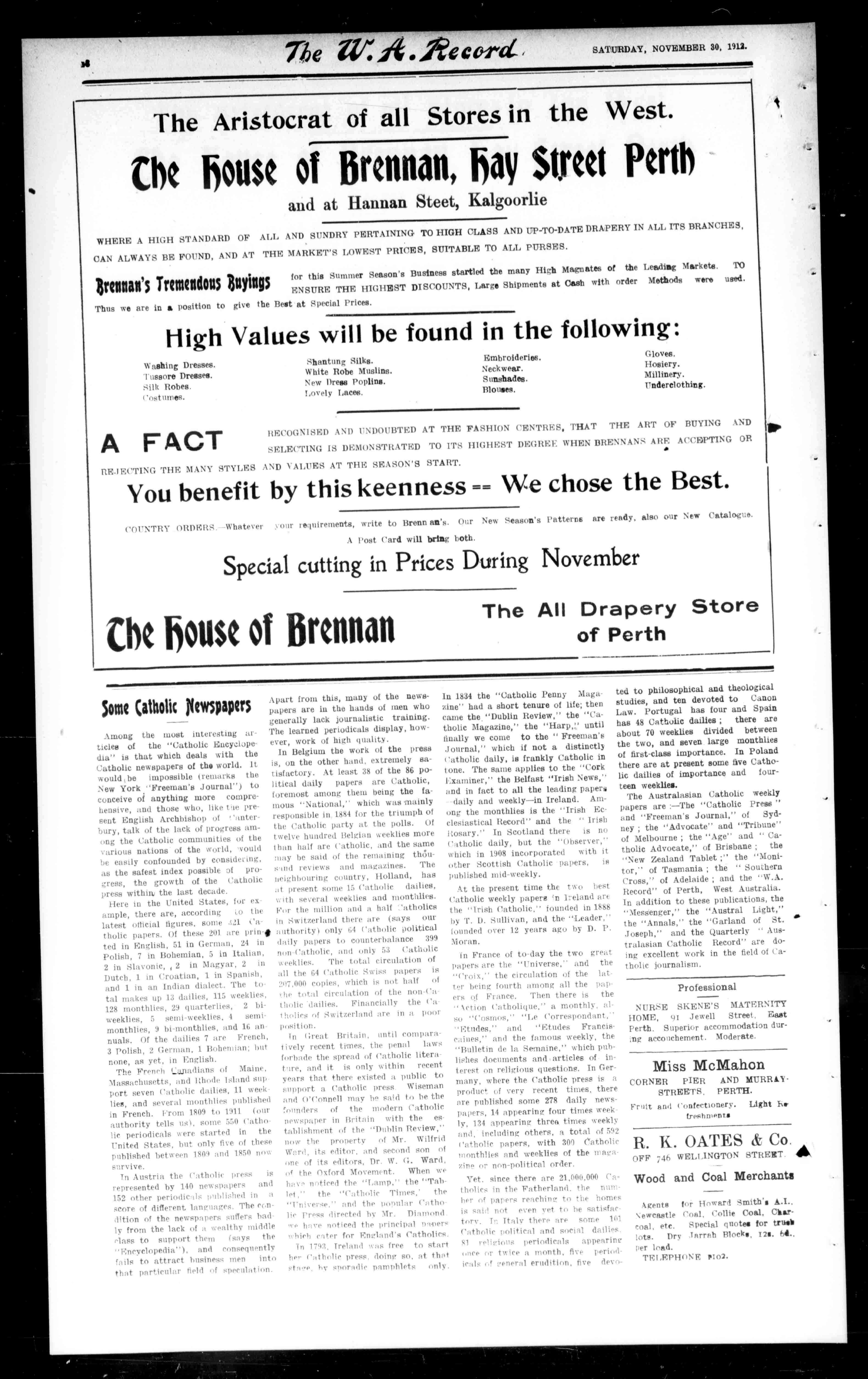 TheWest AUSTRALIAN RECORD SATURDAY,NOVEMBER30,1912