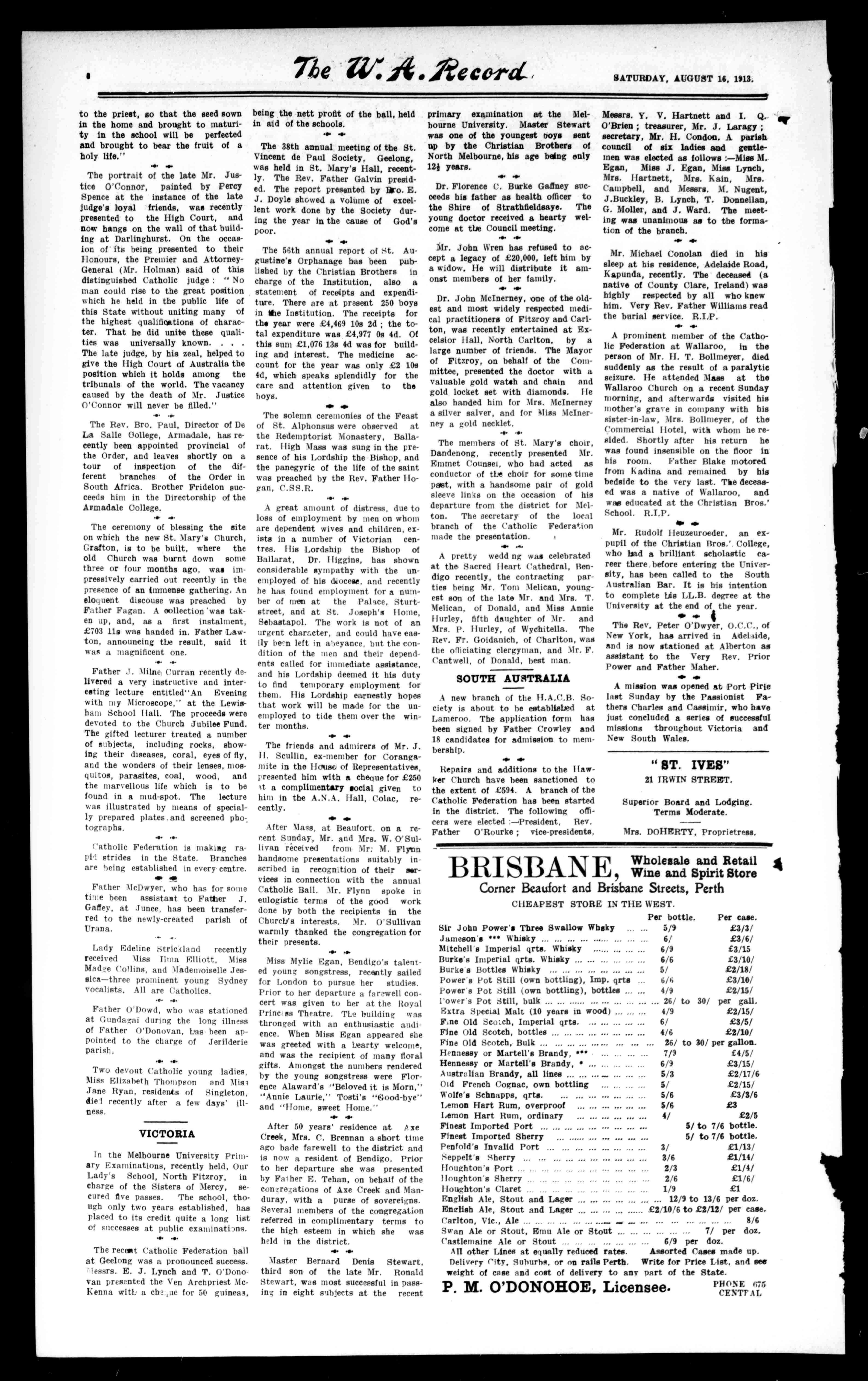 SATURDAY,AUGUST16,1918. neill:A.Record Telephone285,Office,1558BondedStores,RailwayStreet,WestPerth