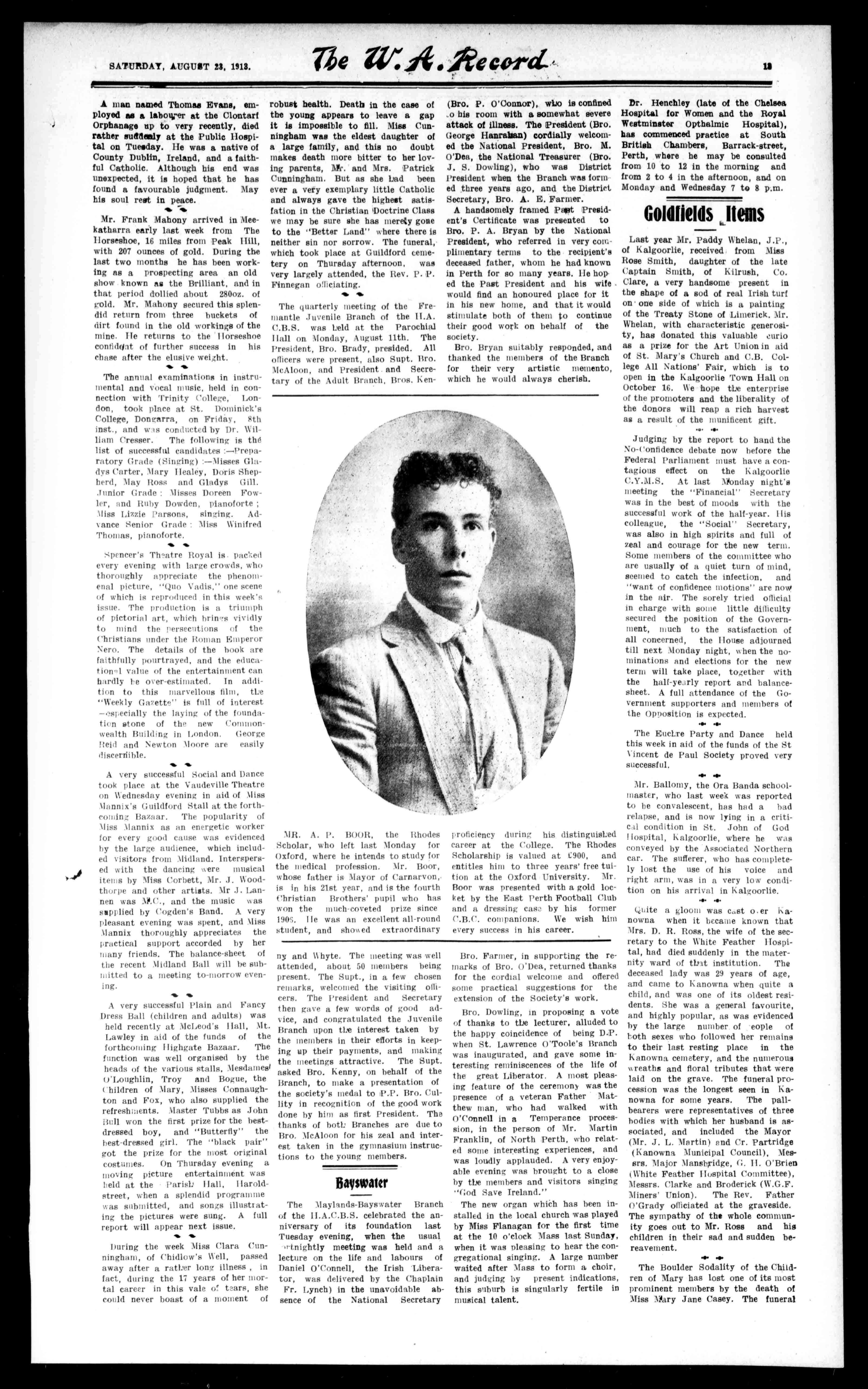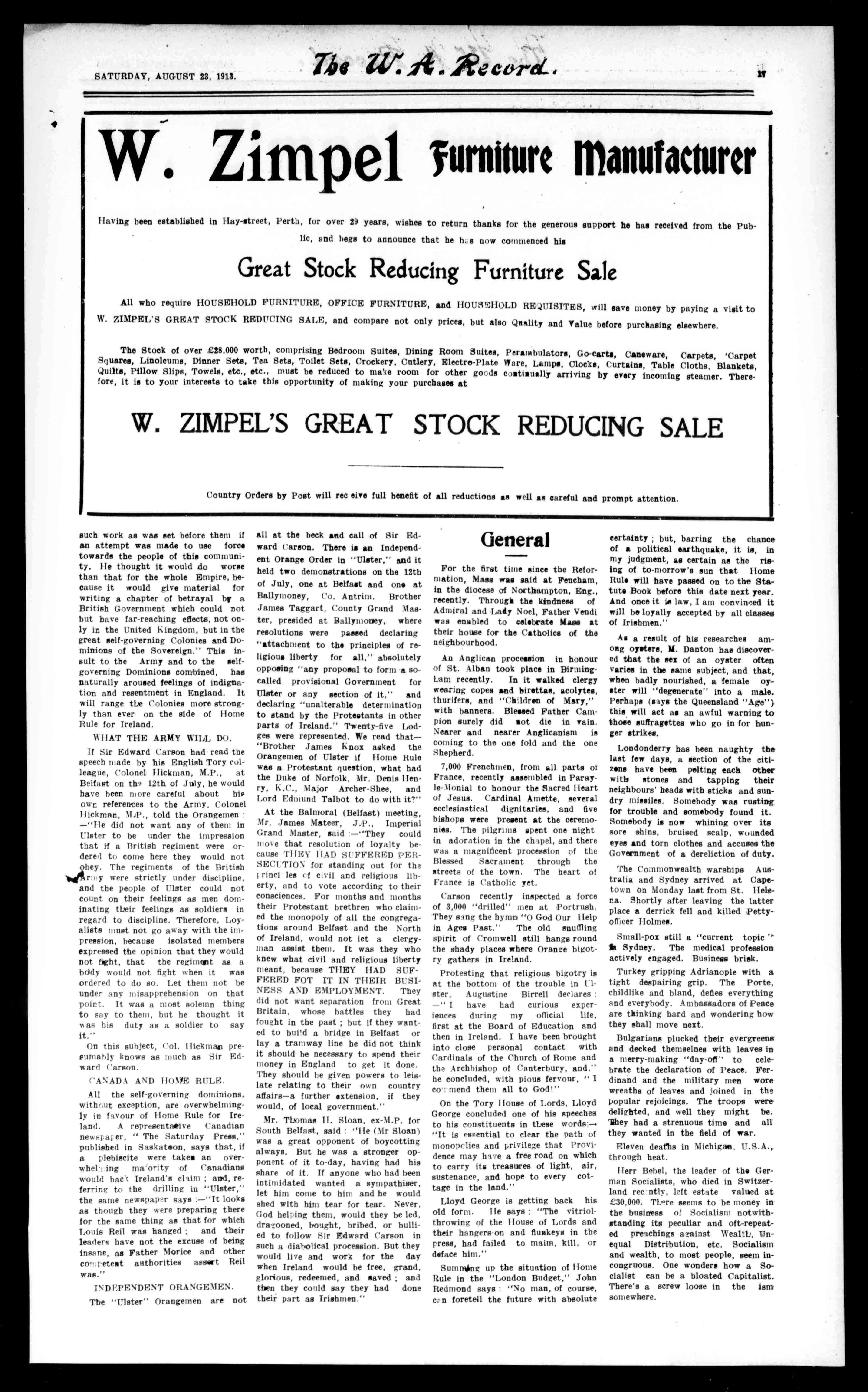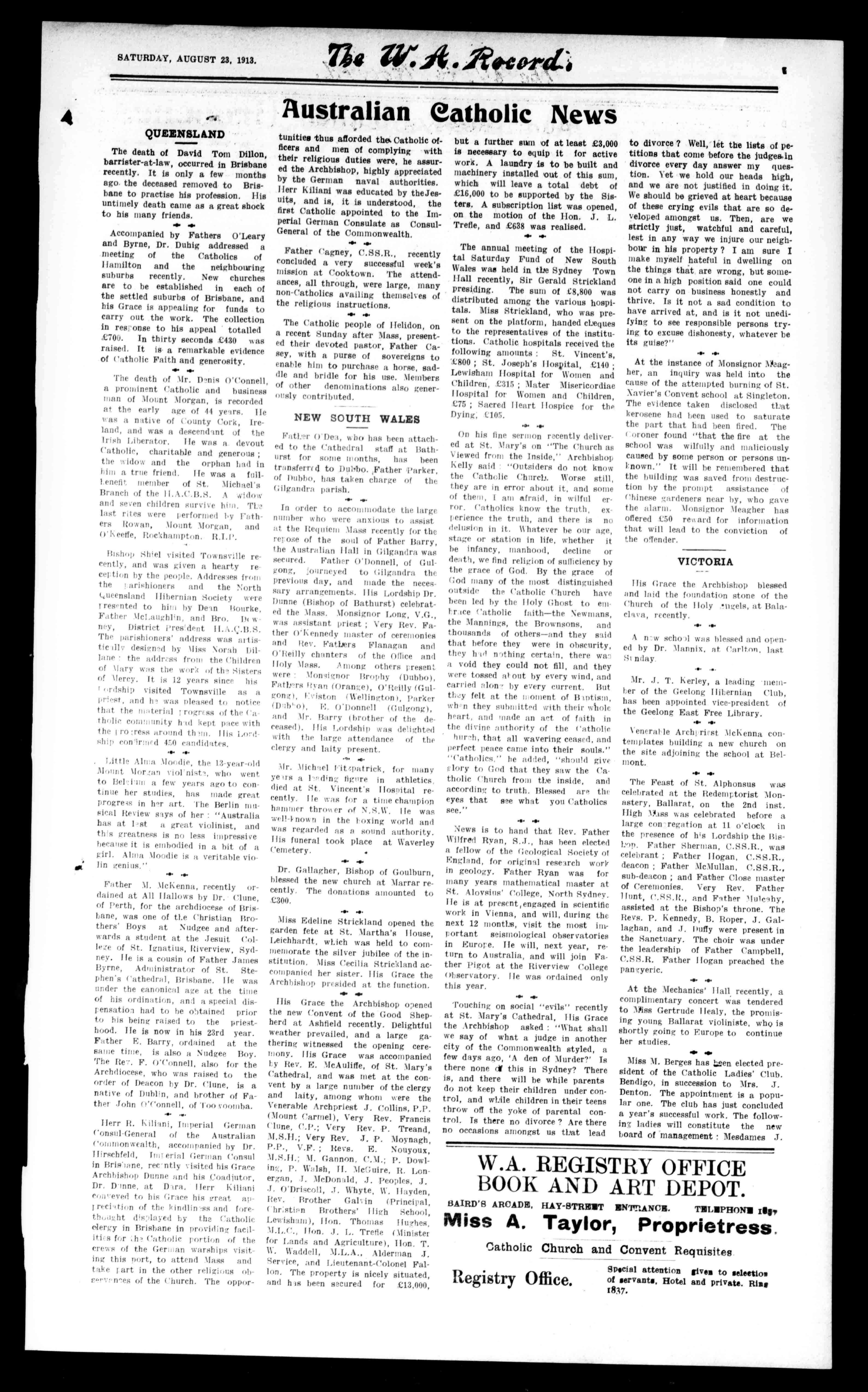 SATURDAY,AUGUST23,1913. The 1{'ecord IIt Telephone285,Office.1558BondedStores,RailwayStreet,WestPerth