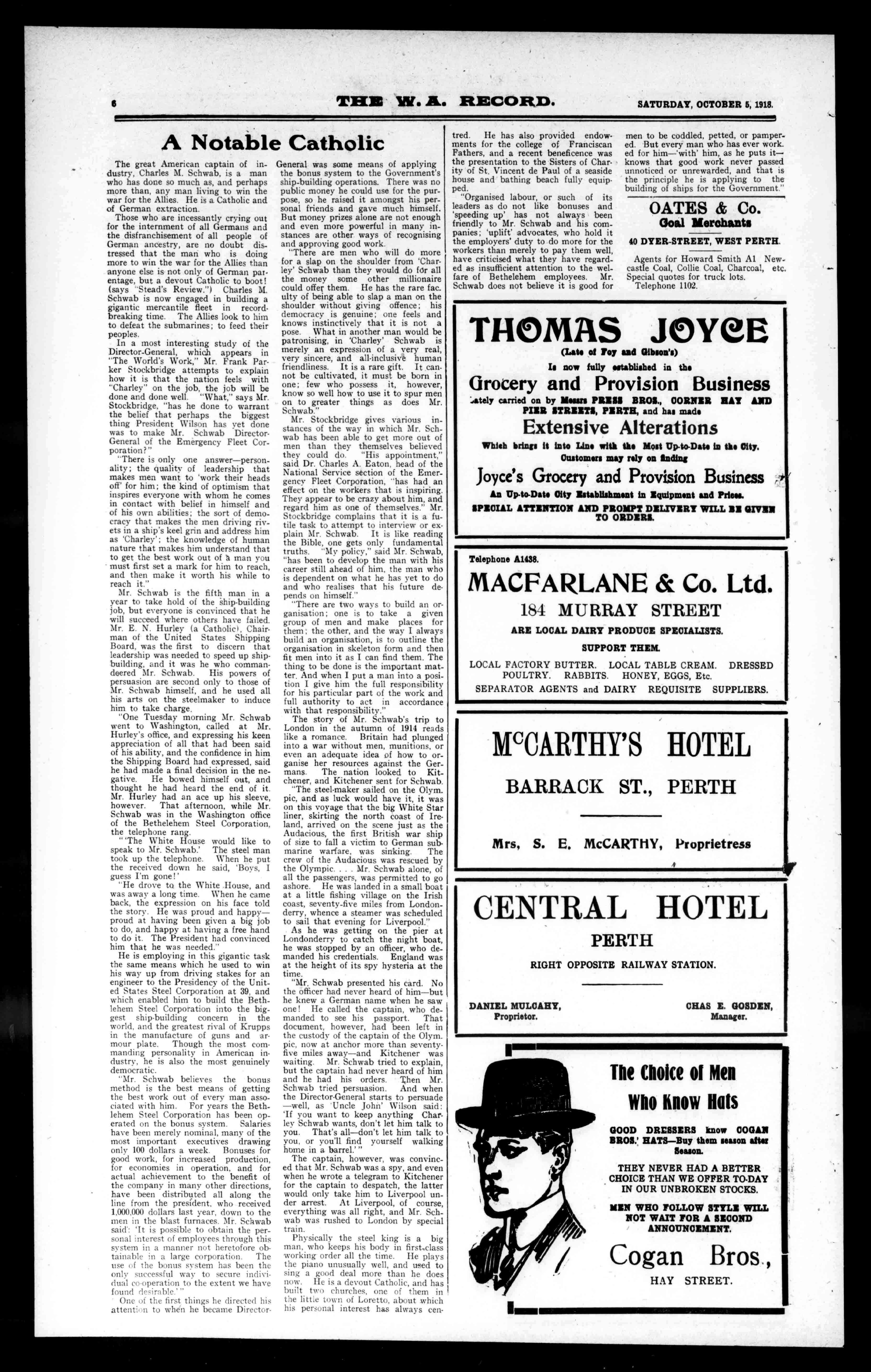 CHALICES, CIBORIUMS, REMONSTRANCES, STATIONofCROSS INRELIEF CANVAS, Etc.,Etc. PELLEGRINI&Co MANUFACTURERSofRELIGIOUS STATUARYandCHURCH METALWARE. 244Elizabeth-street,Melbourne,and 489George-street,Sydney. 'Phone1341. G.GIBBS LateM.HANNAY. WineandSpiritMerchant. CornerMURRAY&GEORGESTS., WESTPERTH. QualityGrocer,TeaandProvision MerchantandImporter.OurMotto: SmallProfitsand Returns.OrdersCalledforandDeliveredDaily. J.B.GEORGE PHARMACIST 542HayStreet, PERTH PRESCRIPTIONSPECIALIST and VETERINARYCHEMIST. Mr.B. THEOPTICIAN,Means BUCKERIDGE, PI.O.,P161.0.,D.B.O.A., freedomofCityofLouden. THE HIGHESTQUALIFICATIONS. INTHESTATE. ByExam.,London. AskForMr.B. inthe ROYALARCADE OppositeTownHall. 'PhoneA4046. BENMATTHEWS NEWGARAGE. 522HAYSTREET (OppositeMasonicClub_ CARREPNIRS'