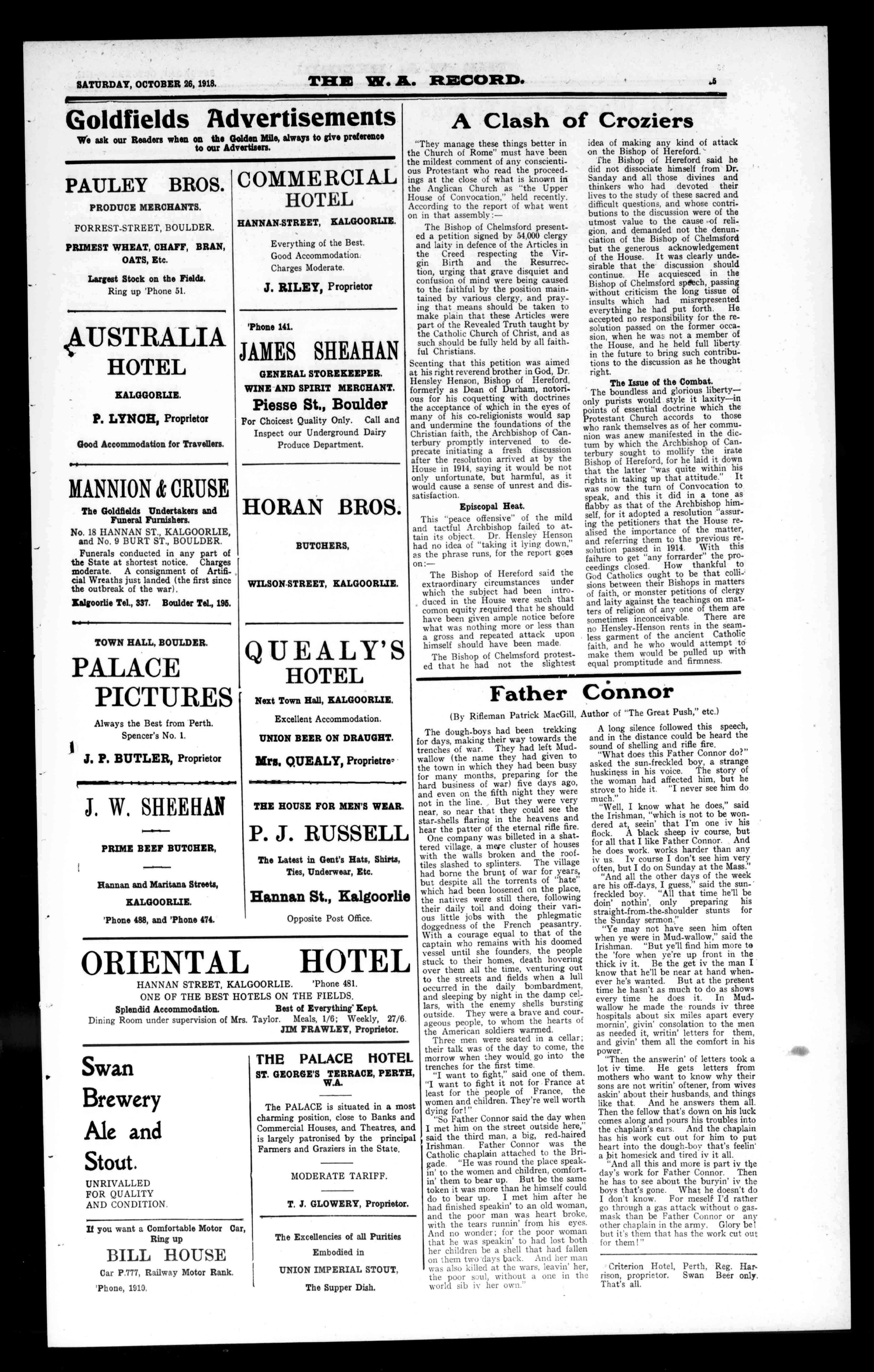 prizesmaybe obtainedonapplicationatthePresbytery,9McCourt-street,Leederville. Anobstinateresolutiongetsthebetterofeveryobstacleandshowsthat thereisnodifficultytohimwhohas resolvedtobepatient.-Seneca. 49FIRST-AVENUE,MT.LAWLEY. ASKFOR PHIL.RYAN DODGEMOTORCARFORHIRE DAYORNIGHT. CarNo.208. MotorGarageTelephone,A1927. G.P.O.MotorRankTel.A3488. Telephone395. HOLDWAY& LICENSEDSEWERAGEPLUMBERS (CERTIFICATED). GASFITTERSandSHEETMETAL WORKERS. ATrialSolicited. 40-44PIERSTREET.PERTH. OATES&CO. CoalMerchants 40DYER-STREET,WESTPERTH. AgentsforHowardSmithAlNewcastleCoal,CollieCoal,Charcoal,etc. Specialquotesfortrucklots. Telephone110'2. 'PhoneA1794. THOS.ANDERSON FAMILYGROCERandPROVISION MERCHANT. CornerFitzgerald-streetandRaglanroad,NORTHPERTH. Familieswaitedondaily. CountryOrdersAttendedto. SAVOYCAFE HAY-STREET(nextMetropoleHotel), BasementJ.W.Barnard's,Ltd. MEALSATALLHOURS. G.STACK. the RuskinStudios Tel.A1893. BAIRDS'ARCADE. HIGHCLASSPHOTOGRAPHERS. OurSpecialties:Soldiers,Wedding Groups,ChildrenandPresentation Groups. Enlargementsfinishedinanystyle, colours,orplain. DAVIES-FRANELINCYCLEAND MOTORAGENCY, 178-180Williamstreet,Perth. WholesaleandRetailDirectImporters. CyclesBuilttoOrder.MotorandCycle RepairsaSpecialty.LargeStock.,of MotorAccessories.Go-cartsTyre, etc.TelephoneA3281. 0.S.BURTON,Proprietor. TheJ.J.BENDON SHOESTORES 130HIGHSTREET, FREMANTLE. 'PhoneB425. BRYANT&WATERS 80to90StirlingWest,PEW WOODANDGOALKEROZAIE. OrdersPromptlyAttendedto. TeLA3938. Padbury'sStores,Limited GUILDFORD,MIDLANDJUNCTIONandMOORA TheBestValuesintheStateareObtainableattheseStores OurValuesareUnapproachable TheHouseofHighQualityandLowPrices PADr"f'Y'SSTORES,LIMITED