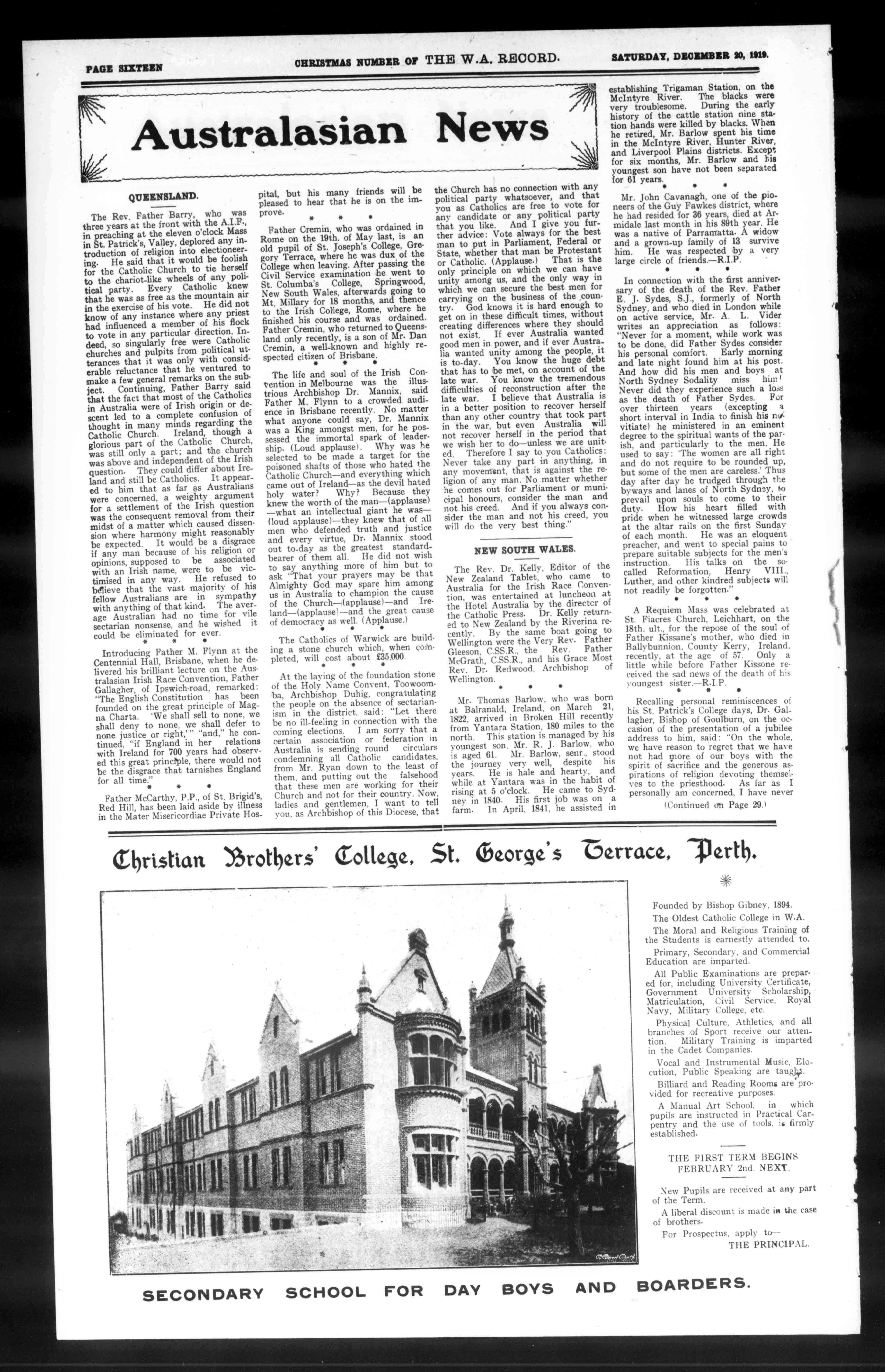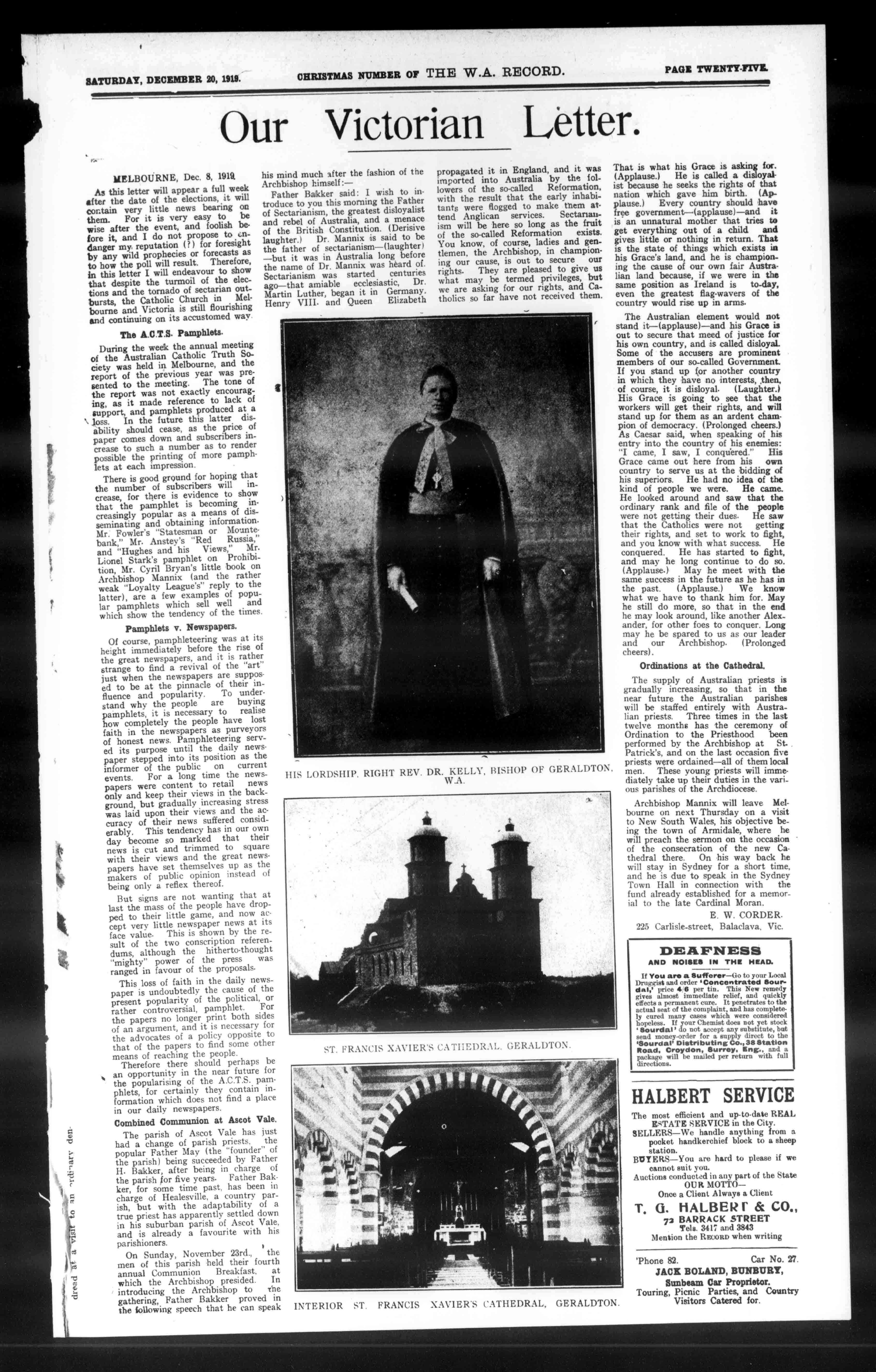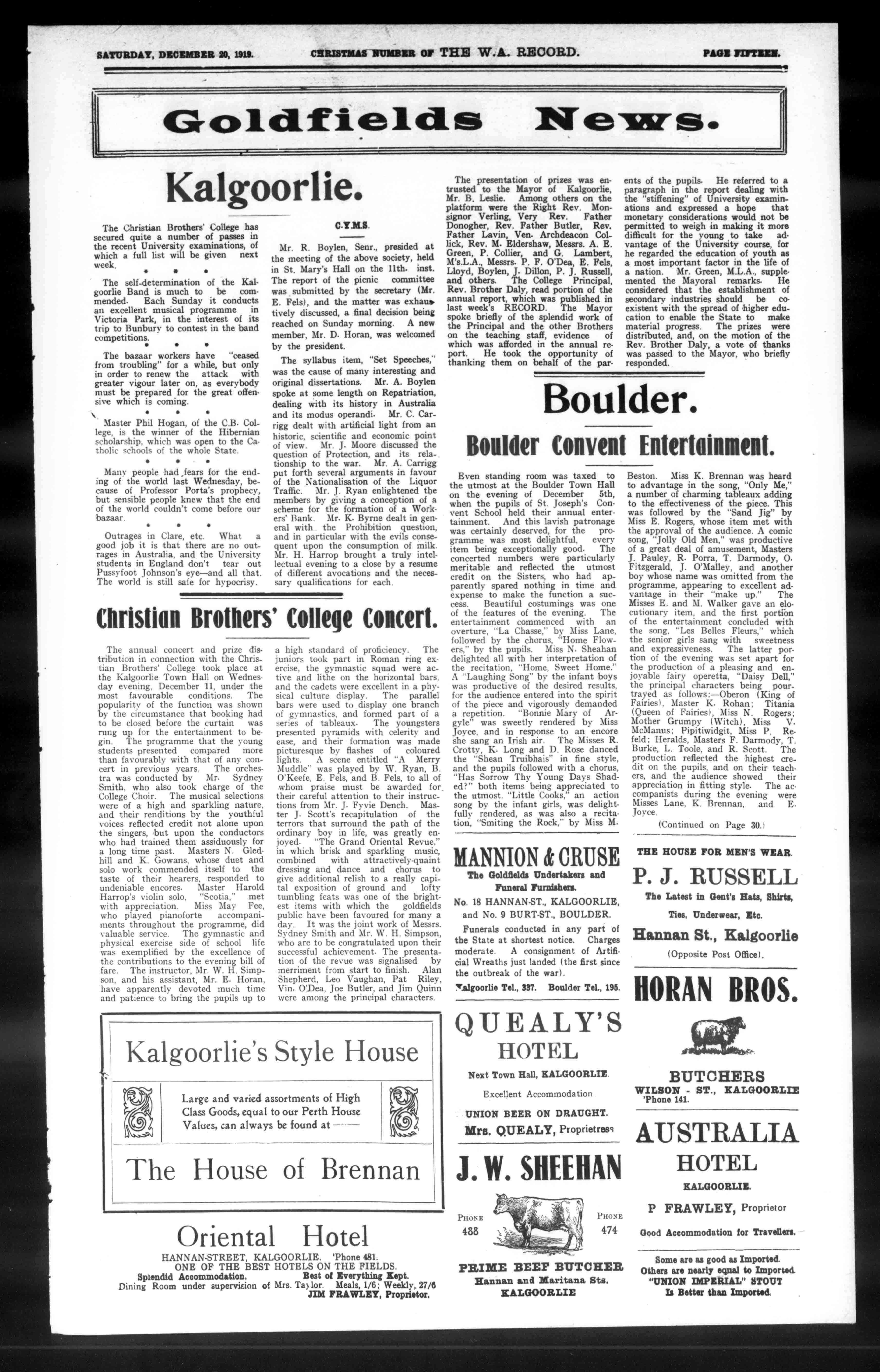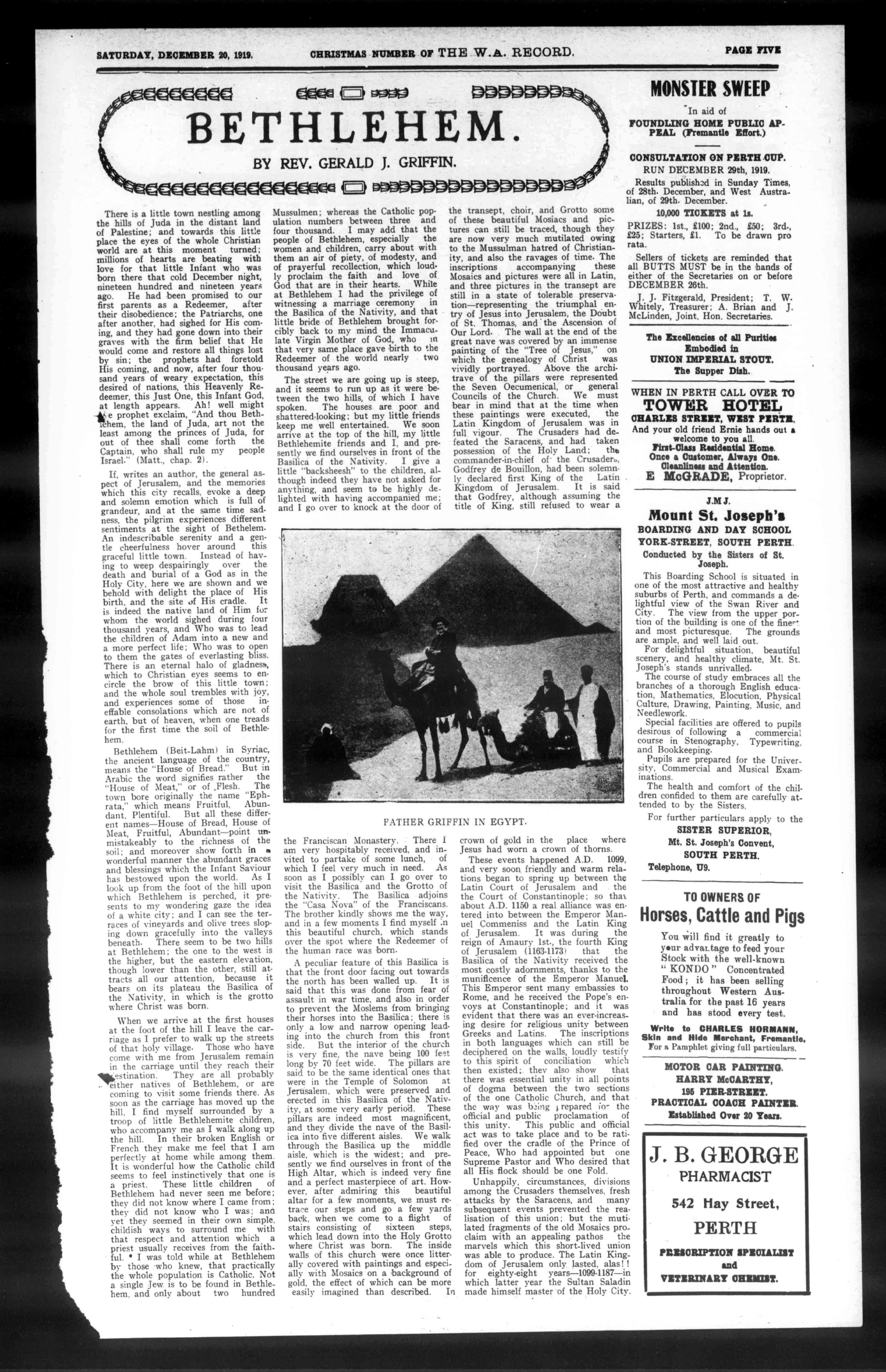 BUTCHER, 181ROKEBY-ROAD,SUBIAOO. ONLYPRIMEFRESHKILLED MEATSOLD. 'Phone1341. HOTEL PERTH J.J.RYAN,Prop. ThisHotelisnotedforits PurityofDrinks CleanlinessandCivility SocietyofSt.Vincentdepall,*sten. Australia"(Ncorporated) CATECHISMINSTRUCTION CLASSES. TheSocietywillforwardCatechisms toanyCatholicManorWoman,freeof allcosts,whoarewillingtoundertake theteachingofChristianDoctrineto ChildrenandAdultsinremotecoun trydistrictsanddistantplaceswhere noPriestresidesorConventisestab. fished. Communicationsgivingparticularsof requirements,addressedtotheSecre tary,Mr.J.F.Waldron,24Harleystreet,Highgate,Perth,willreceive immediateattention. Mr.B. THEOPTICIAN,Means BUCKERIDGE, F.I.G.,F.I.M.O.,D.3.0.A., FreedomelOityelLiman. THE HIGHESTQUALIFICATIONS. INTHESTATE. ByExam.,Londos, AskForMr.B. Lathe ROYALAROAD1 OppositeTowsHall. BEAU PIANOS Cornish PIANOS JONES' SewingMachines Thomson's SoleDistributors, PERTH. 209MurrayStreet. SI.Gertrude'sCollege,NewNord°. ConductedbytheSisters'ofSt.Joseph,fortheEducationofYoungLadies. IDEALCONDITIONS. BEAUTIFULCLIMATE. CATHOLICATMOSPHERE MAGNIFICENTSURROUNDINGS. THECOURSEOFINSTRUCTIONINCLUDESATHOROUGHENGLISHEDUCATION,BOOK-KEEPING,SHORTHAND, TYPEWRITING,PIANO,VIOLIN.THEORYOFMUSIC,DRAWING,PAINTING(OilsandWaterColours),PLAINAND ORNAMENTALNEEDLEWORK. FORFURTHERPARTICULARS,APPLYTO-SISTERSUPERIOR