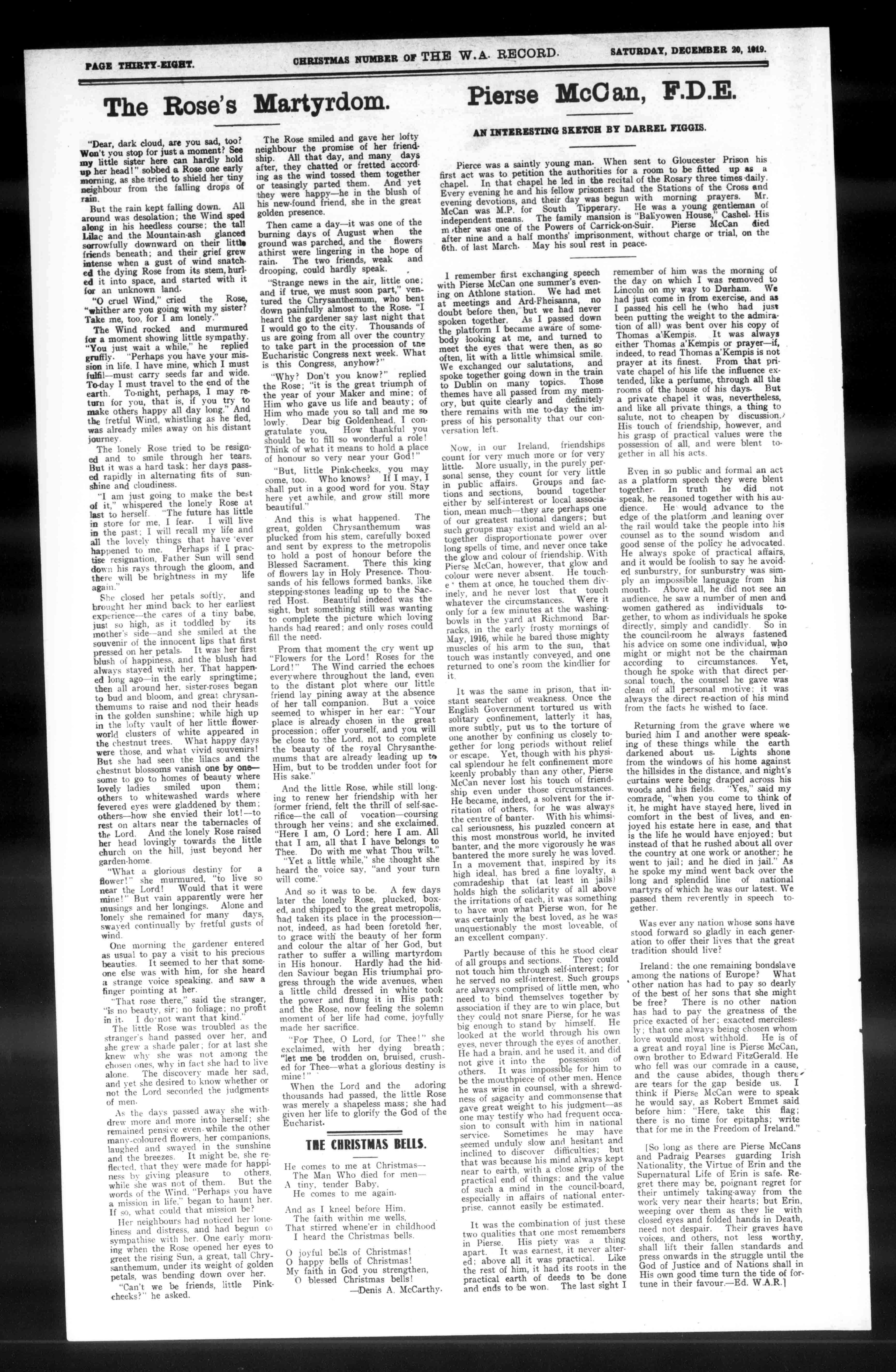 ByDorothyTangney.Age121. WillieSmithwasalittleCatholic lad,whoenjoyedtheprivilegeofbeing abletoattendMasstwiceaweek.One morningintheweekprecedingChristmas,Williewasgoingtochurch,and whistlingahymntoOurBlessedLady. whenhesawMr.Grey,acarelessCatholic,emergefromhishome,andproceedalongtheroadleadingtothe littlebushchurch.Williewasoverjoyedatthis,forhethoughtthatMr. Greywasonhiswaytochurch,and itwasawell-knownfactthathehad neverenteredthechurchforseven - years.