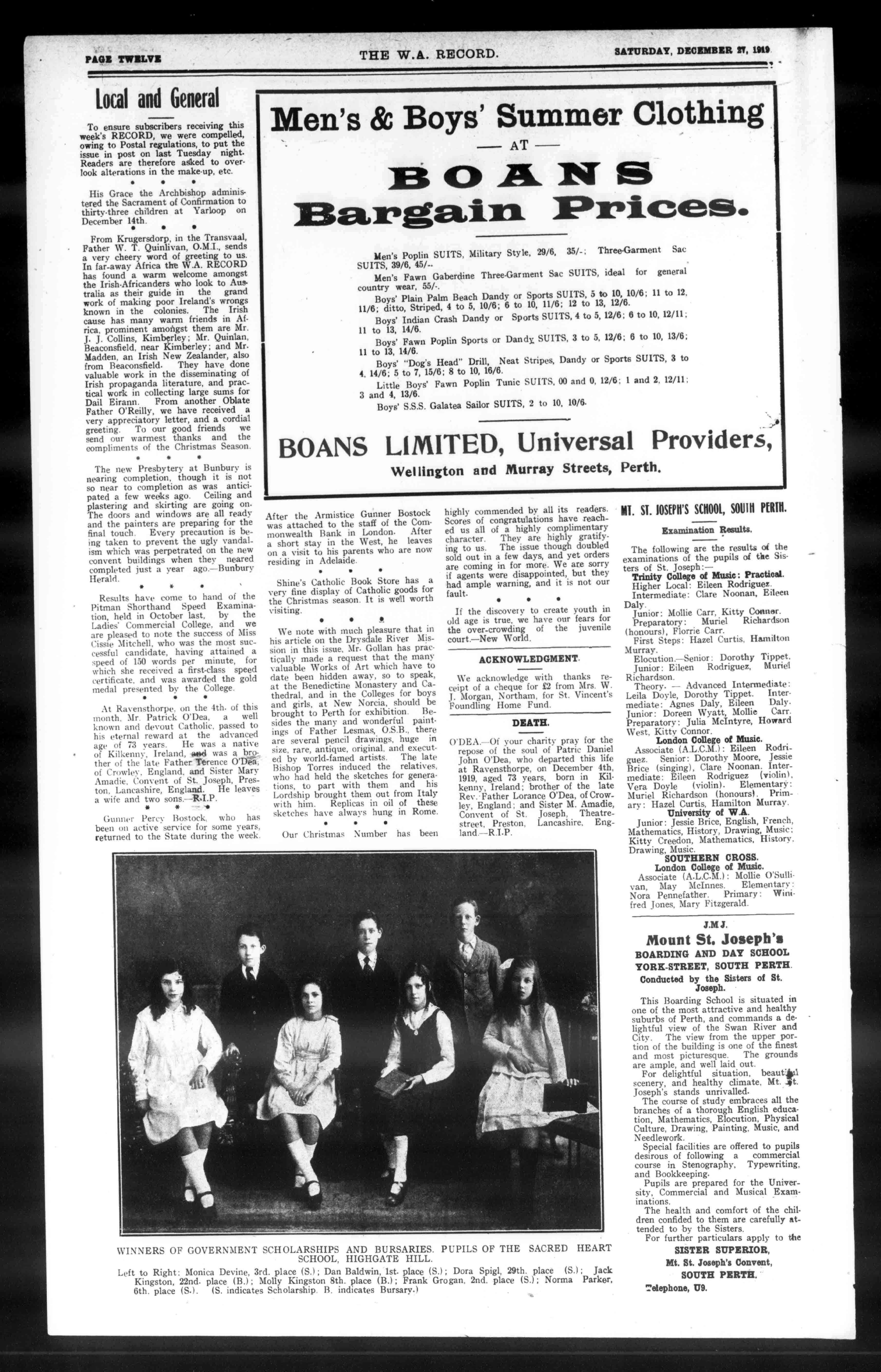 Intheclericallinetwoofourboys giveparticularsatisfactioninthe magisterialdepartmentoftheGovernment,andanotheroneisanexcellent bookkeeperinourbigMissionstoreon YuleIsland.Henryisaperfectbusinessman,aperfectgentleman,anda thoroughCatholic.Heservesyou withthatmodestsmileofhis,butyou couldnotplayhimoutforafarthing. Hepromenadeshisbethrothedwithall thegraceanddemeanorofamodel youth,andhegoestoHolyComininion threehundredandsixtyfivedaysin theyear.
