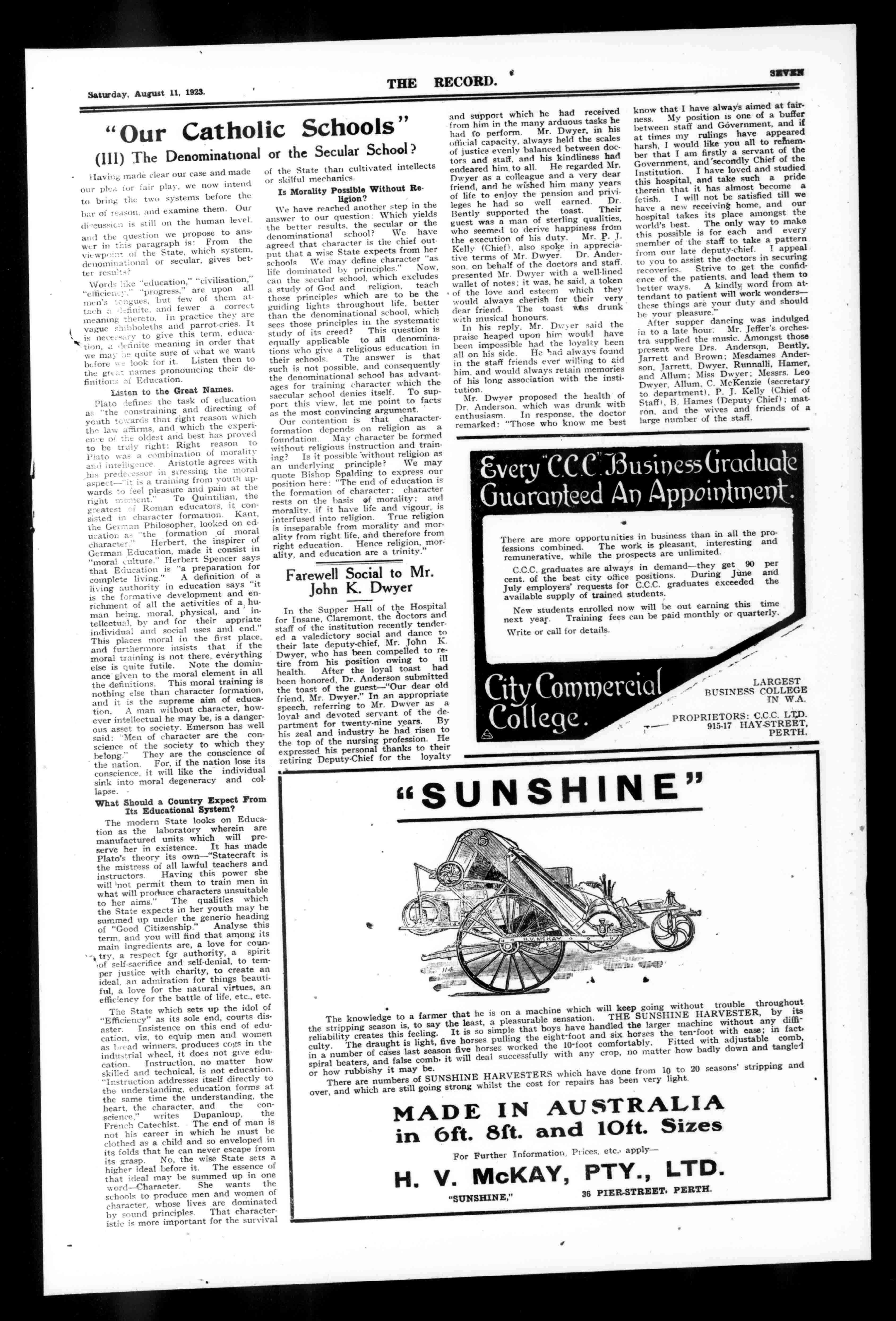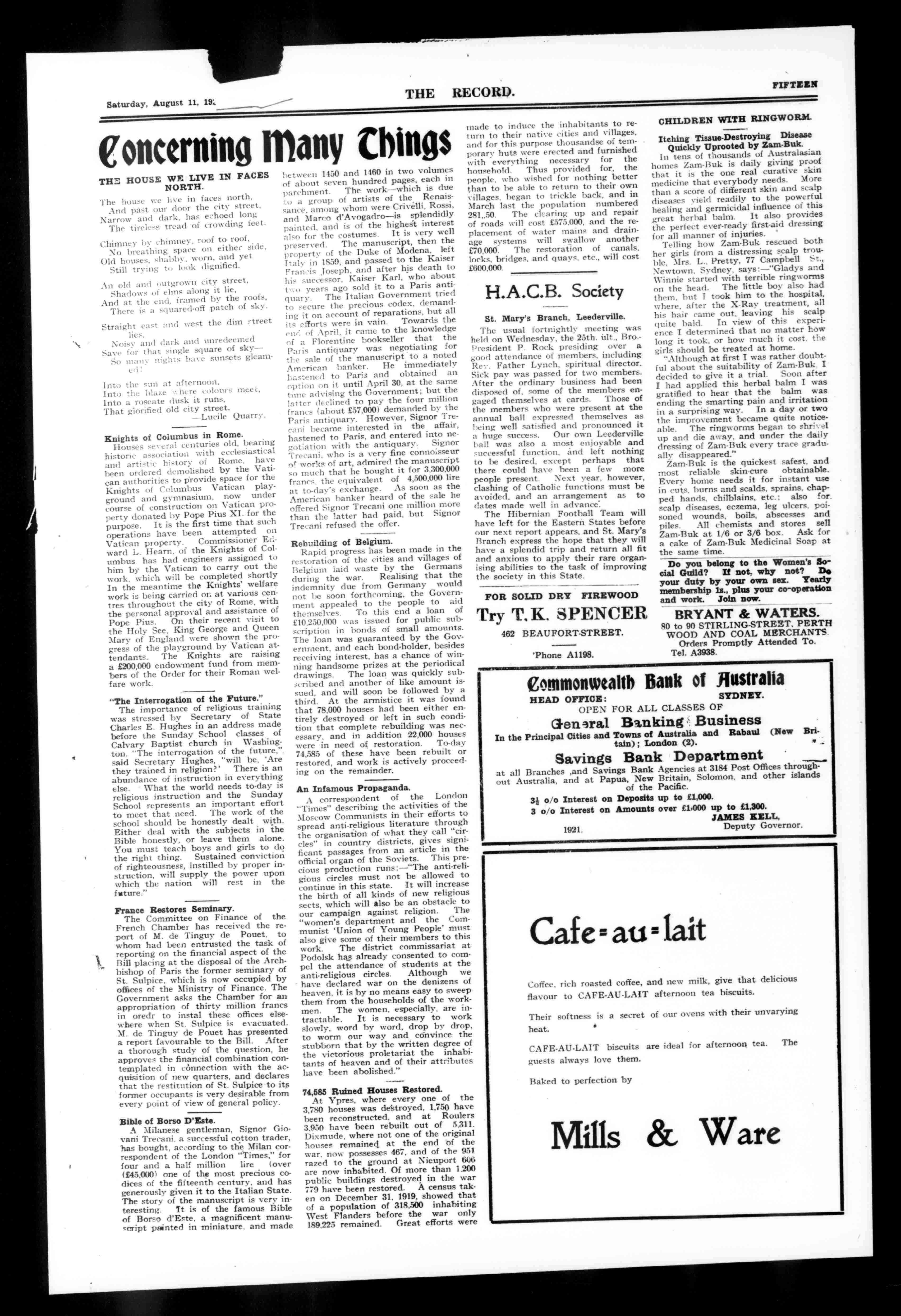 A5447 PRICETHRELPIINCa OFFICIALORGANOFTHEARCHDIOCESEOFPERTH,WESTERNAUSTRALIA. RegisteredattheG.P.O..Perth.forTransmissionbyPostasaNewsp NO2140 PERTH,SATURDAY,AUGUST11,1928. VOLUMEXLVIII.