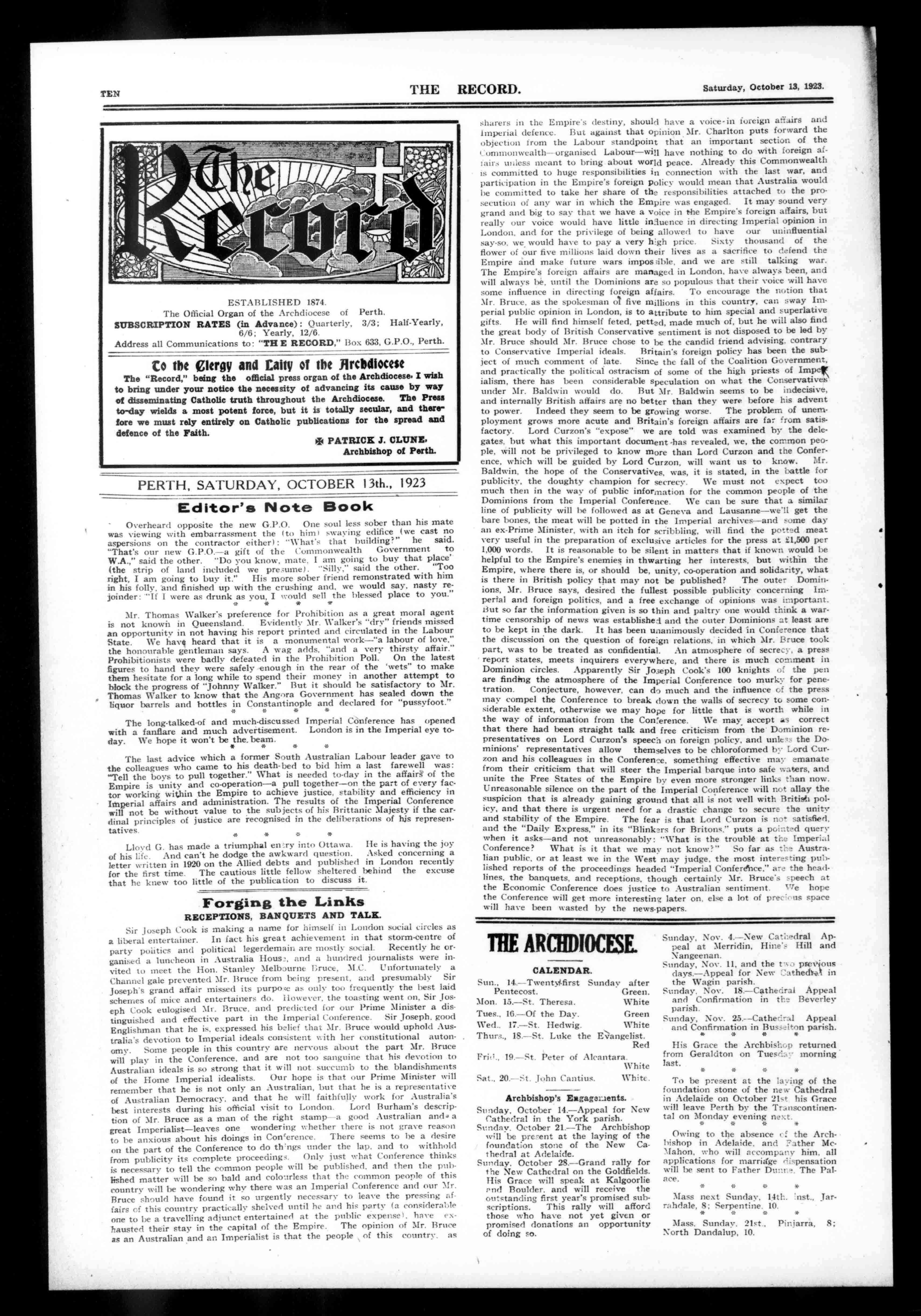 gbei.4.4,4,r;7teLleri#.57)-41-ille, PUBLISHEDWEEKLY. 'PhoneA5447 PRECETHREEPENCE. OP' .1,Pii1( "Ilk II iiii.iyilli : ,e, q " ====._ ? 4 0' ..f 11:11:II 'le oaf...i,I R.1 19i - ppl : 1 ;;;.:. ' k. li !MEW _ ..-.....-...... -7. ....=...=.,.: ..' Idill 0i t - =. :.7---di !II1 AI' .3a 4:141 ,Ilea h OFFICIALORGANOFTHEARCHDIOCESEOFPERTH,WESTERNAUSTRALIA. ESTABLISHED1874. RegisteredattheG.P.O..Peth,forTransmissionbyPostasaNewspaper. NO.2149. PERTH,SATURDAY,OCTOBER19,1923. VOLUMEILVI:12. Chris.McCarthy LARGESTMOTORCARPAINT WORKSINW.A. 107FITZGERALDSTREET (NearNewcastleStreet). PhoneA1219.