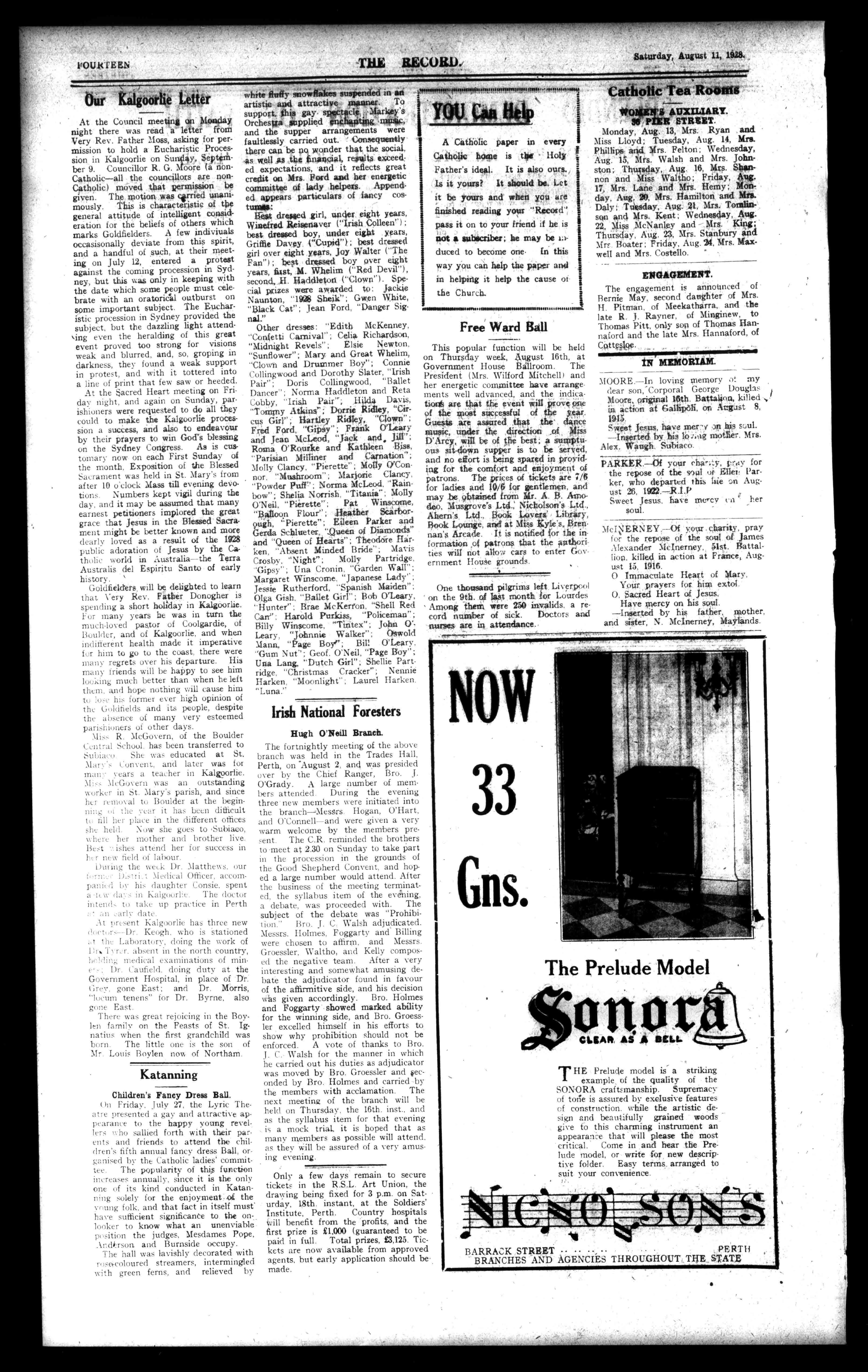 BOWRA&O'DEA,donned GeneralFuneralFurnishers MOTORVEHICLES FUNERALSCONDUCTEDINANYPARTOFTHESTATE. NotetheAddress-195.PierStreetPERTH 'Phone,A4308;Private'Phones:A2938andA3376. Printedandpublishedfortheproprietor,byThomasSlattery,atthe"Record"Office,450Hayetreet,Perth,WesternAustralia