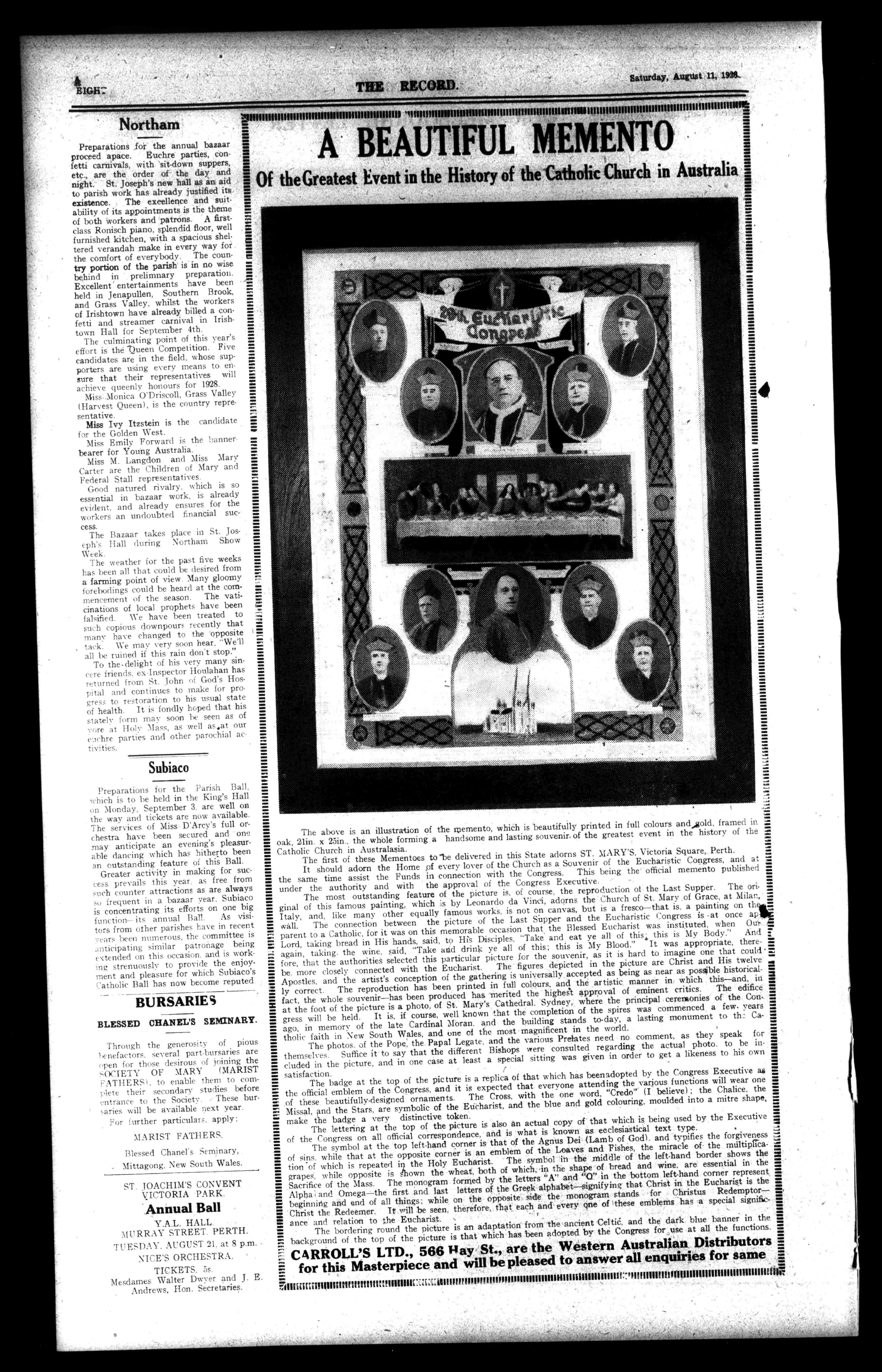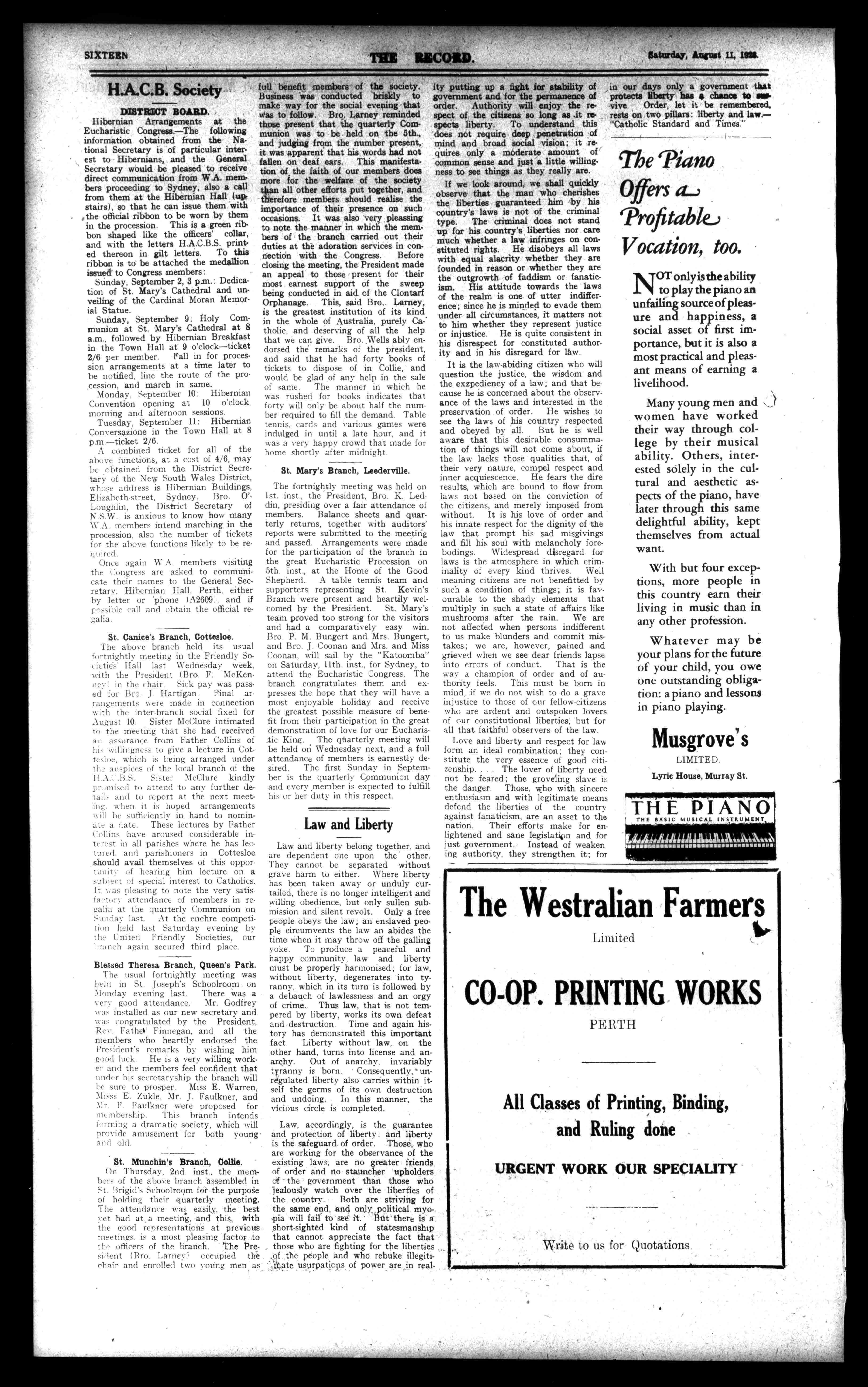 PUBLISHEDWEEKLY. 141.1.1.111014.1.111 rawnames*.samilio. ADDRESS:BOXJ633,G.P.O ACATHOLICWEEKLYCIRCULATINGTHROUGHOUTTHESTATEOFWESTERN PRICETHREEPENCE. RegisteredattheG.P.O.,Perth,furTransmissionbyPostasaNewspaper. 11.101.111114MIONIIMPIR oemmomnemme.esellPlemia ISSIONNewievinetoUnwrmen 111111111111111illi1111111111111111111111111111111111111111111111111111111111111111111111111M4 ANWPMA,WMAW= No.2,523 PERTH,SATURDAY,AUGUST11,1928 ismstmeme 100011NOMNIMINIMOSIIIMMO MMMMIINIMIS001. eAustralasianCatholicAssurance COMPANYLIMITED. I. H.SA.D OFFICE: OCEANHOUSE,34MARTINPLACE, SYDISI RegisteredundertheCompanies'Act,1890,ofNewSouthWales. BRANCHOFFICES:-VICTORIA:47504/11As4treet,1441boresa SOUTHAUSTRALIA: 29 Eing William-street, Adelaide. HEADOFFICEFORWESTERNAUSTRALIA: WARWICKHOUSE,ST.GEORGE'STERRACE,PERTH. DistrictOffices:Newcastle,BallaratandGeelong.StateMaids. ADULTLIFEANDENDOWMENTASSURANCESOFALL CLASSESEFFECTED. SPECIALENDOWMENTASSURANCEFORCHILDREN. 'PhoneA6484. T.J.McGRATH,ResidentSecretary. YOURSILKS AREBESTPROOURZDAT COURT'S ONEQUALITY-THEHIGHEST!ONEPRICE-THELOWEST: AUTUMNSILKSANDVELVETSJUSTOPENED. NOWSHOWINGINWONDERFULARRAY. CONVENTS,COLLEGES,INSTITUTIONSANDSCHOOLSSPECI ALLYCATEREDFOR. THEYAREINBARRACKSTREET Aredwoome.m.w.i.w.v.w., ToFittinglyCelebratetheFinalDayof 2...:11iiiiiiiiiiiiiiiiiiiiinummilmiliniiiiiiiminimmillifonninnommitumnommummmummumunnummtw.: = --±: . F. E E E E E E g 2 -2 E E.: g MADEINHAWAII,OFGENUINEKOAWOOD. = Tj. THEFINESTANDBESTTONED'INSTRUMENTMADE. Cr THREEDIFFERENTMODELSTOCHOOSEFROM:MODELA,i COMPLETEWITHCASE,TUTOR.EXTRASTRINGS,PITCH-PIPE, P-.. PICKS,ETC.,£312s6d.MODELC,COMPLETE,£415s;ANDMODELE. E,COMPETE,£515s. . E P.. = = gTHESEUKULELESHAVEADELIGHTFULLYSWEETTONE,ARE-i-aPERFECTLYFRETTED,HAVEANATTRACTIVEFINISH,AND= g E = ARETHEEASIESTOFALLINSTRUMENTSTOPLAY. E COMETO . E = GetyourModelbeforeourStocksareDepleted STEELGUITARS:NewShipmentjusttohand;fiveDifferentModels-1 t,cho,,s,..trum.Alloutfitsarecompletewithcase,tutor,extrastrings,E Pitch-pipe,steelliarandpicks,etc.Pricesrangefrom£45sto£12lOs E E. :1= 7_ E: GETALLYOURMUSICALREQUIREMENTSFROMUS. = E EeE THECHEAPESTHOUSEINWESTERNAUSTRALIA. E =Infinite1yGrvater._ : . lia'':IAlbert-8E.SouLimitedi E i E F-; 180MurrayStreet,PERTH = -3 RememberMondaNextfrom8.45_ Killini,,,,inutiminimniimmilimunuummunnimmiiimmomilimiiii,,Hilimminiiimilawilitimmimpl; =.:v...v.y.....w.wwrrerrewe.-o:WVV.".%VWANW'V'XA:V."Ye'";AN%W."1"1."1"11iiMAY.W.P.N..Wee"..%..ArAW%."i., ZoologicalGardens--PopularSundayAfternoons