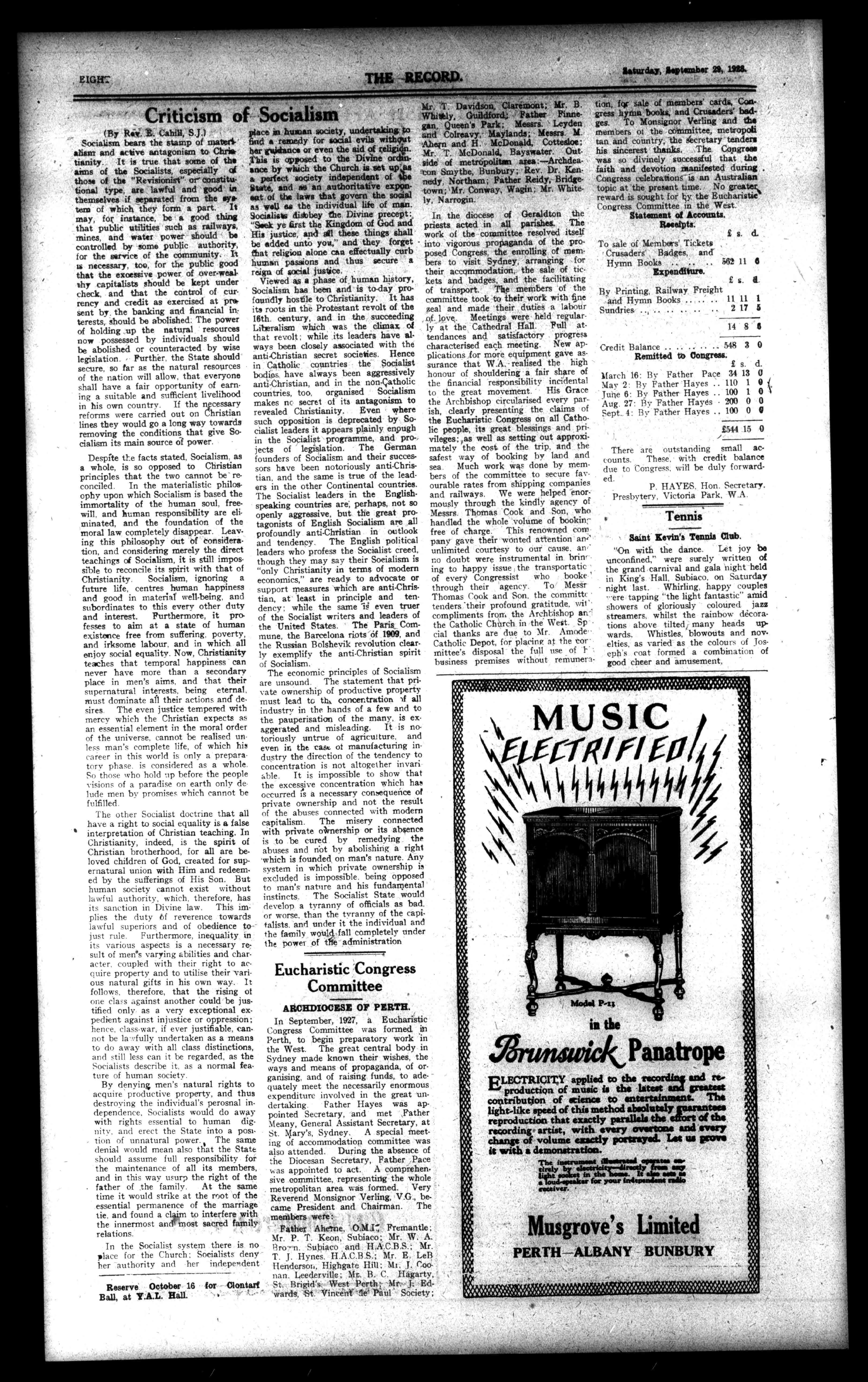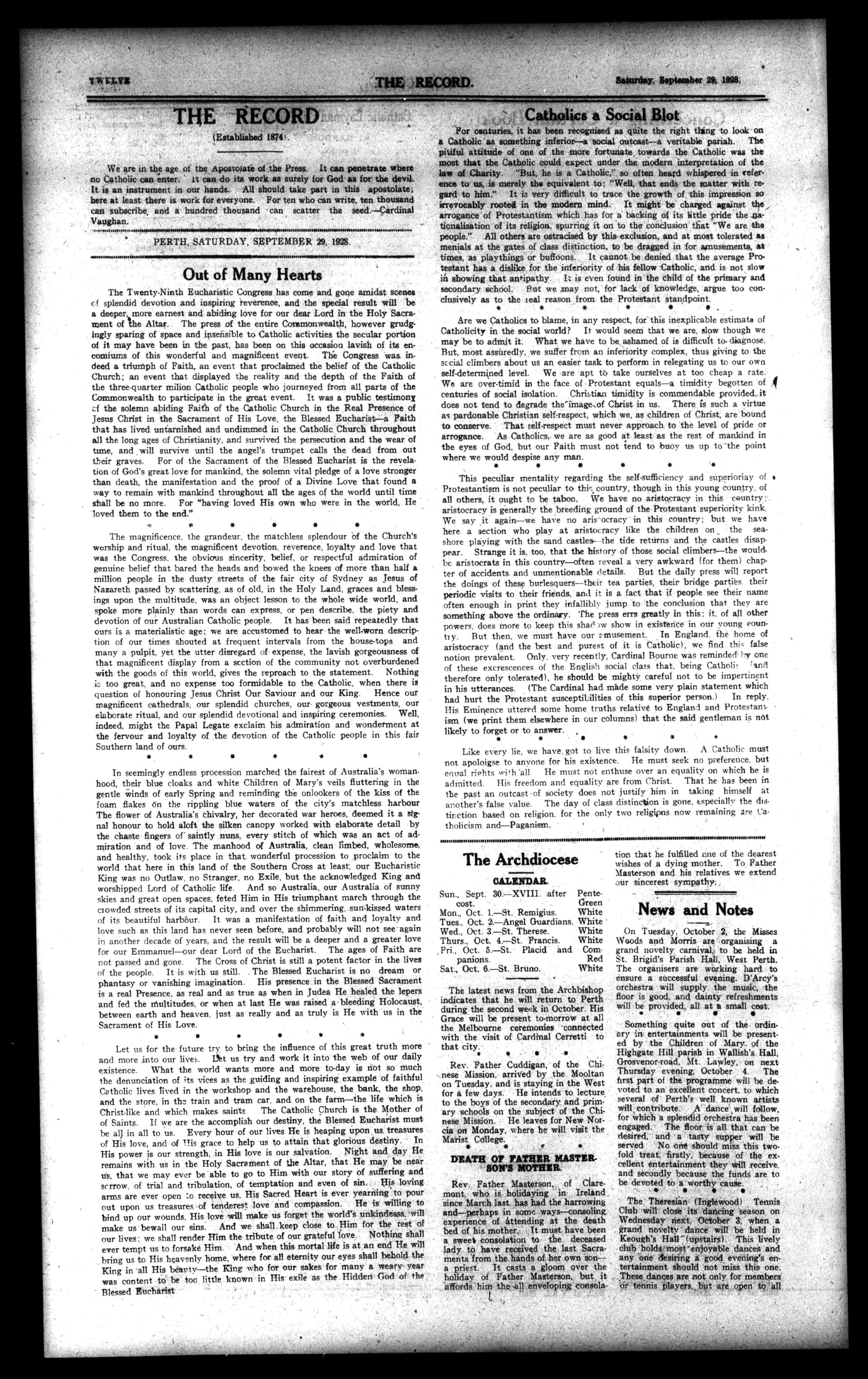 "Wearenotpronetoboasting,but wehavefrequentlyseenstatementsin theUnitedStatesandIrish,journals thattheSydney'CatholicPress'is'the mostnotableCatholicpaperinthe world.Nodoubttheyarenotcomparingitwithpaperswhichcaterfor specialclassesofreaders,butjudge itasavehiclefordistributingCatholic opinionamongthegeneralpublic. Theyadmiretheadvertisingsupport whichitsbulkysizeindicates,andthey admitthatsuchsupportwouldnotbe givenunlessitprovidedavarietyof newsandcommentsthatattractand holdsubscribersandgiveitinfluence. Postalofficialssaythatthereisno paperinAustraliare-mailedmoreextensivelythanthe'CatholicPress,'and theofficeoftenreceivesevidencethat, besidesnumerouscopiessenttoIrelandandAmericadirect,manyAustraliansusethe'Press'tokeeptheir friendsabroadintouchwiththecurrentlifeofAustralia."