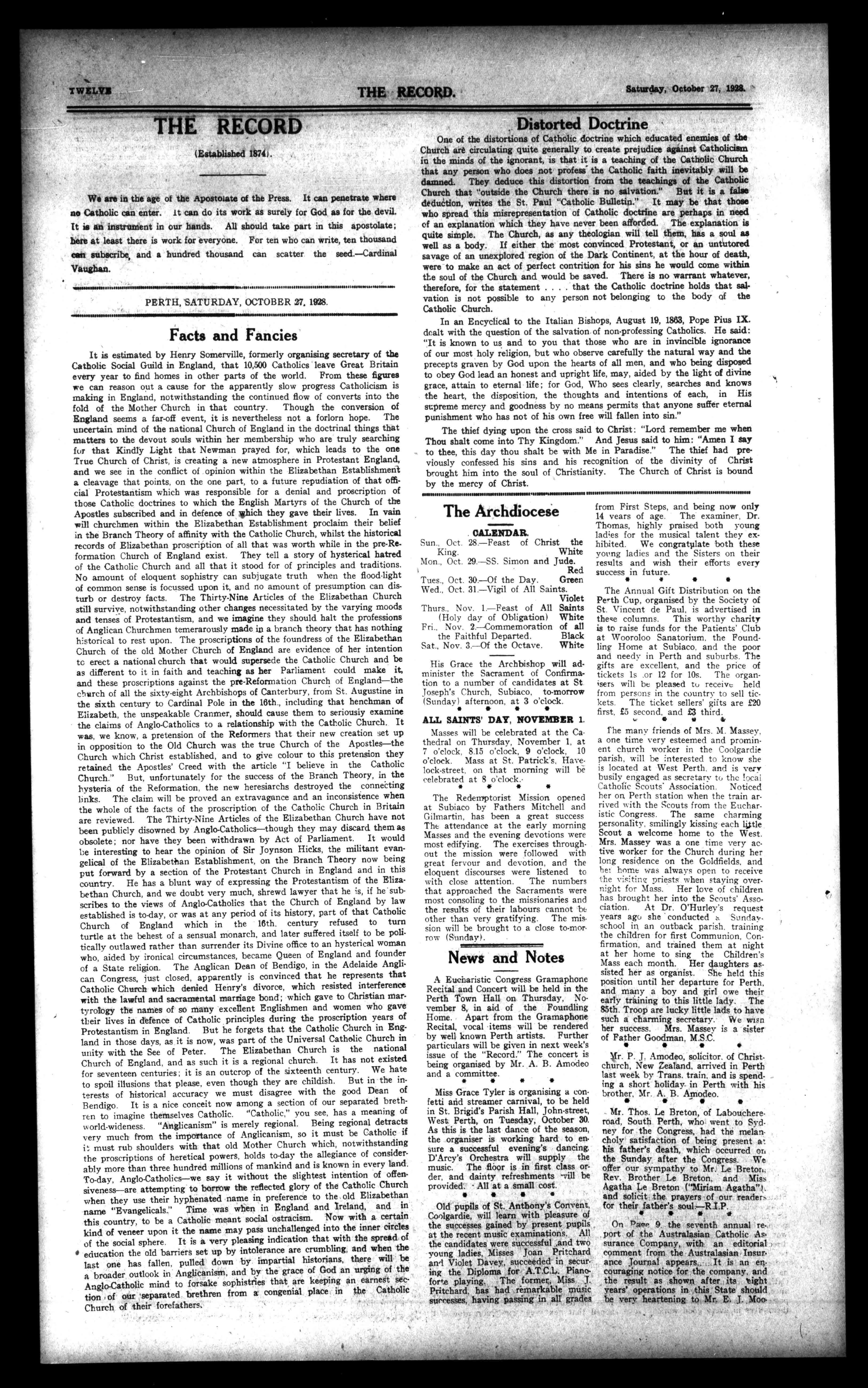 ComparedwiththeOldWorld,Australiahasnonationalshrines;comparedwithAmerica,shehasfewpointsof anyhistoricalinteresttotheoutside world.Herhistory,especiallyherreligioushistory,is,indeed,veryinterestingeventotheoutsider.Butitis notmypurposetoattemptanaccount oftheestablishmentandrapidgrowth oftheChurchinAustralia.Ishall limitmyselftoadescriptionofafew ofthecharacteristicfeaturesofAustralianCatholicism.