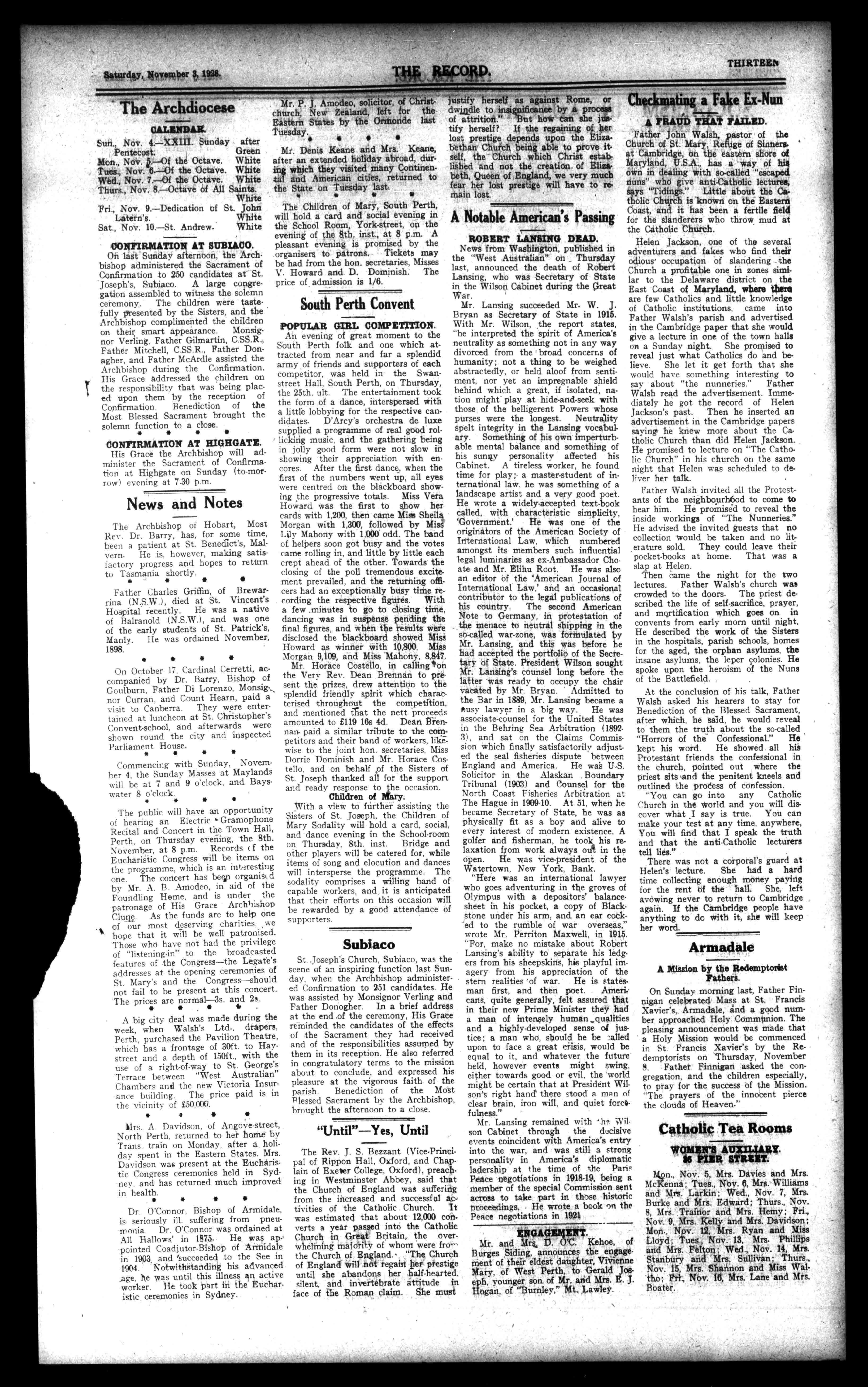 ForCatholics,thenewfeasthas meantanewexpressionoftheirconsciousmembershipinthatmystical bodyofwhichChrististheHead.It willbehardtoimagineanygreaterincentivetoholinessoflife,ofthought, ofword,ofdeed,thanthatveryfact ofourconsciousnessofbeingsoclosely unitedtoChrist.Inthatconsciousness werecognisethedutiesofChristian livingandtheurgencyofcompliance whichthatmembershipputsuponus. Thisistruewhetherthedutiesdeal withthetemporaldemandsofreligion orwiththespiritualrelationshipsarisingbetweentheReadandmembersof thatmysticalbody.Thereisnodistinction,whenthetestofloyalty comes,betweenChristandHisChurch; andofthetemporaldutiesalone,such tasksassupportingtheChurchand helpingparishanddiocesancharities, andheedingtheneedsoftheaugust VicarofChristhimself,willneverbe metwithmurmuringsandcomplaints bytheloyalsubjectsofChristthe King.TheorganisationofthefaithfulinsuchprosperityasCatholicsenjoyintheworldofto-day make themagratefulunitnotonlyinthe properanddecoroussupportofparish buildings,butfindthemjustasintentlydevotedtothepoor,theneedyand theweaklings,theirfellow-membersin thatmysticalbodyofChrist.