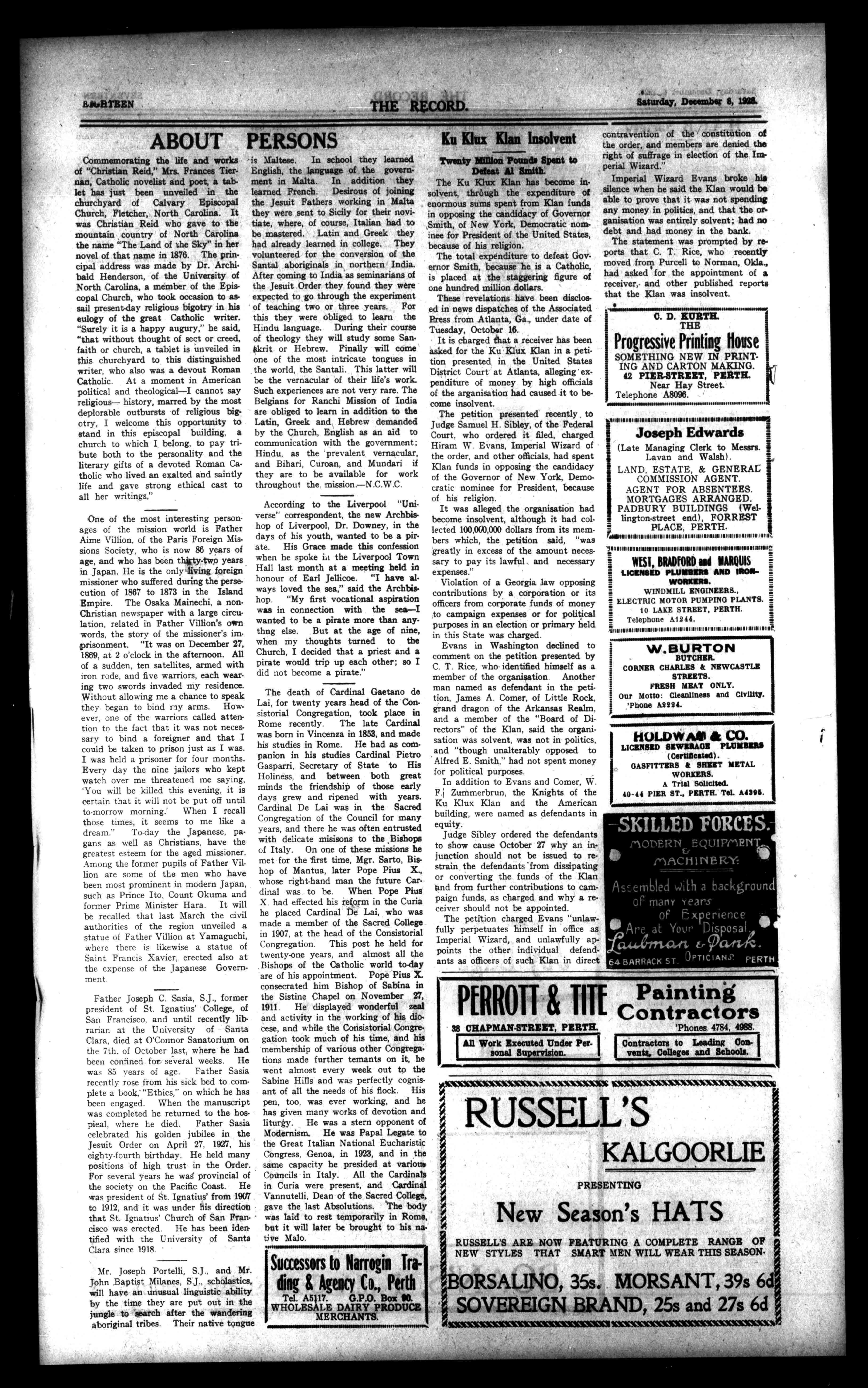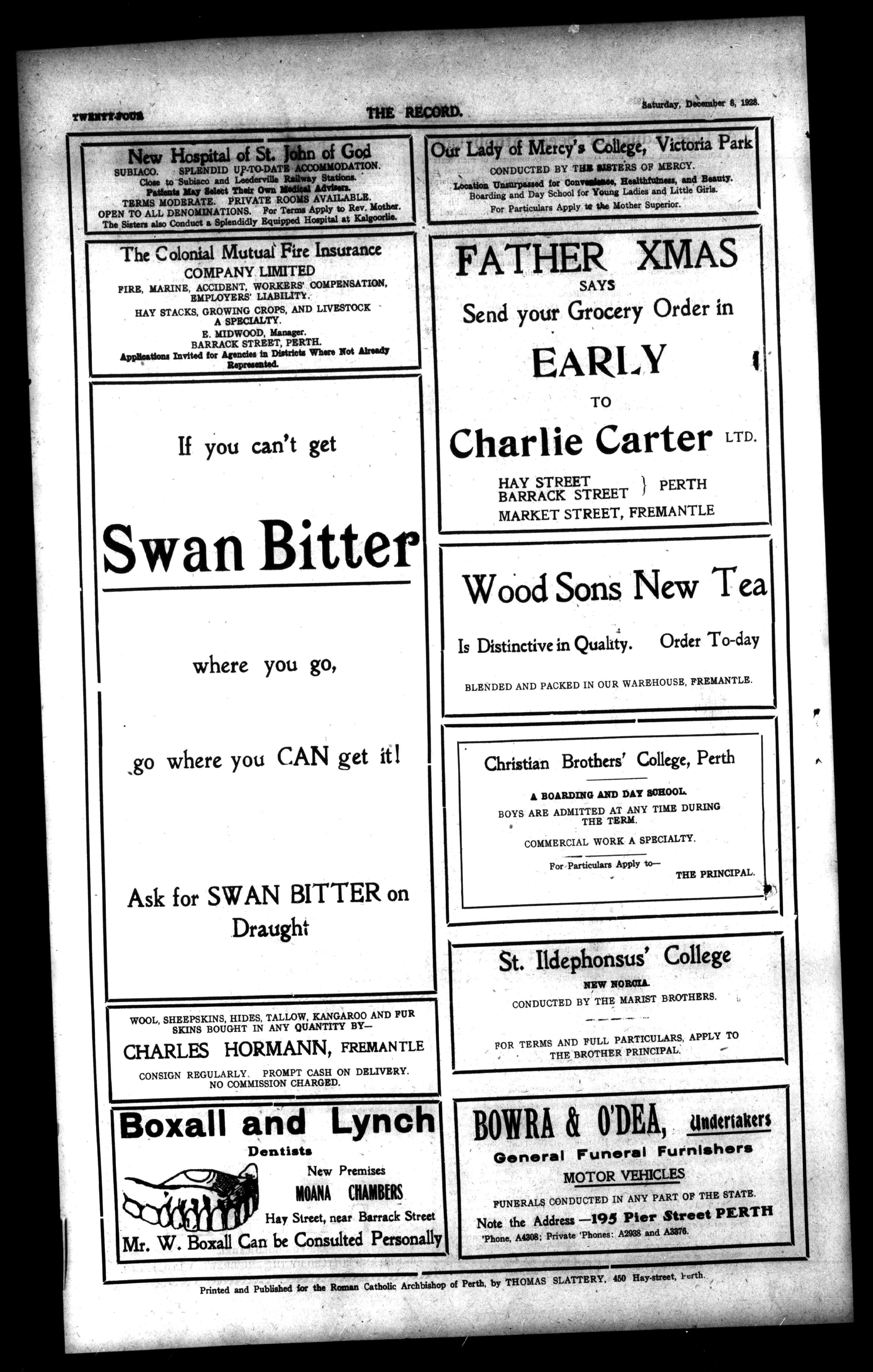 ArthurE.Davies&Co. MUM.FURNISHIRS. FIUMATITLEANDCLANIMONT. I 11111MPONIIII HIBERNIANSOCIETY TheOnlyCatholicBenefitSocietyintheState JOINNOW PullparticularsastoBranchSecretaries'Addresses,RatesdContribution,etc.,from W.A.BROWN,DistrictSscretirfandOrganiser, HibernianHall,Murray-streetPerth.