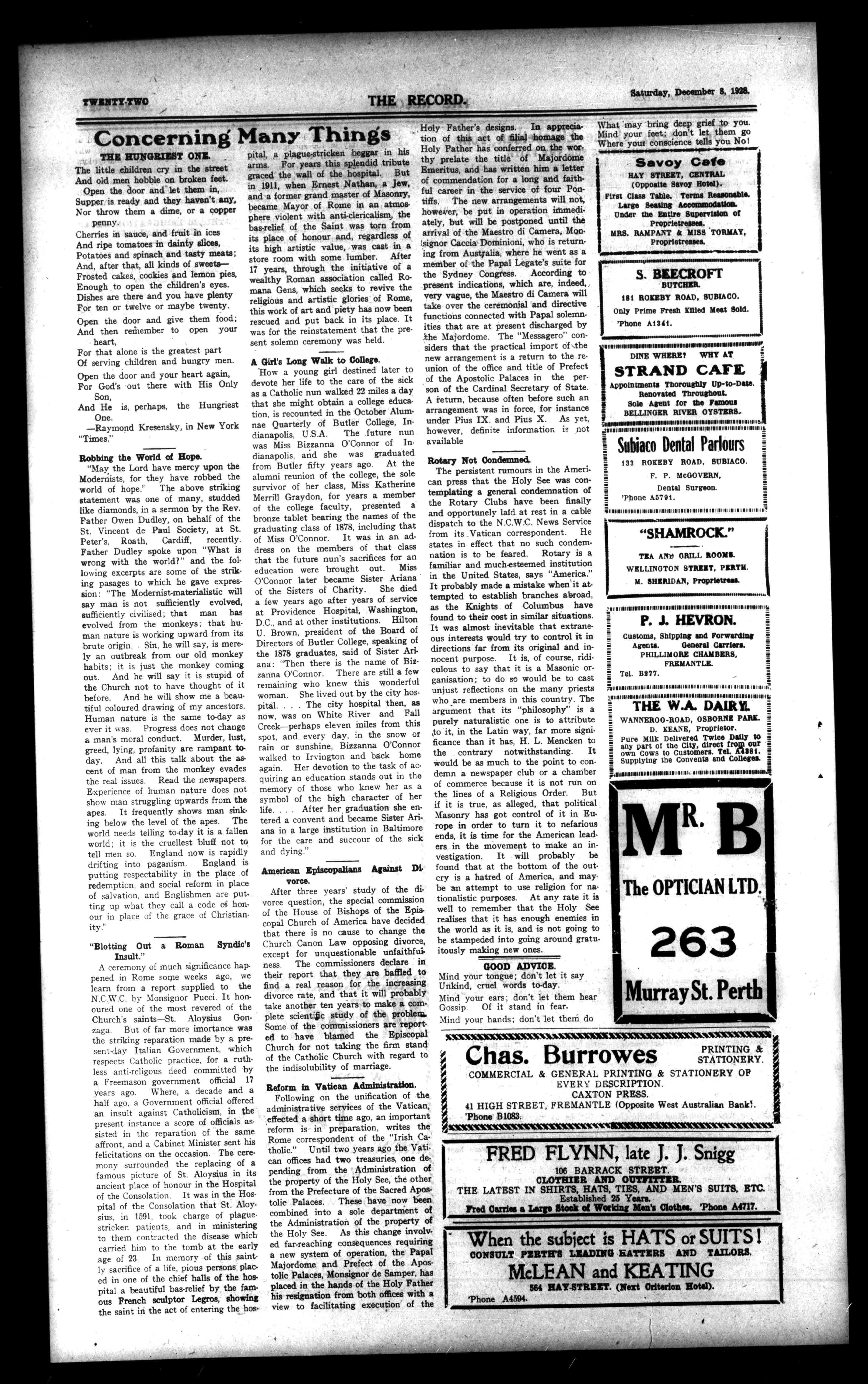 Hellion'sBakeryI MACHINEBREADFACTORY, NORTHFREMANTLE.. BreadDeliveredtoAllPartsor I FremantleandDistricts. i MaltorBrownBreadaswains.: ShippingSupplied.Tel.BM.i 41.4111.1411111111111811111111M11.11111111111111111/111111111111114111111111111111. %%1%%%%% Mt.LawleyHairdressingWentrebled.OM Saloon UnderthePersonalj,REEG Supervisionof SpecialRoomforLoam 0WALCOTTSTRUT. BOBBINGANDSKINGLINGITIMITALTY. xsvcwoohwocsoaaimwoxxa;wcwmcszw6N \ N%% % "% z 6' e. MILLARS' TimberandTradingCompanyLimited HEADOFFICE: SAINTGEORGE'SHOUSE,ST.GEORGE'STERRACE,PERTH. P.O.BOX92. PerthTelephones:Yards,A1705;Office,A4141,A4142,A414.3,A4144,A4145. Telegrams:"MillersTimber." BranchYardsatAllLargeTowns. PriceListsonApplication. SoleAgentsfor:MalthoidandB.&P.Paints,etc.,etc.,andDetroitWhite LeadWorks,Rogers'Paints,Varnishes,andEnamels,Briggs&Rowland's. N \.1 % N lIZOC3I3Z4NNEZtesessaas.16.16:6WIWI=19 McFadyen&Coy. (LATEOFMURRAY-STREET). nowoppositeG.P.O.13firstfloor PADBURYB'OILD1314111. ?howMIL TAILORS I %%%%,%, ,,,, as%311006.101101.N.X.N.%N. %%111 NANNN.\\N / FootComfortGuaranteed BOOTSAND'SHOESINHALFSIZES IFNECESSARYWEMAKETOORDER. GEORGENELSON z I Ni.N.N.% 1 %N. S. 1% 10.41111.111111.1 11111111.1' HAY-STREET,PERTH.