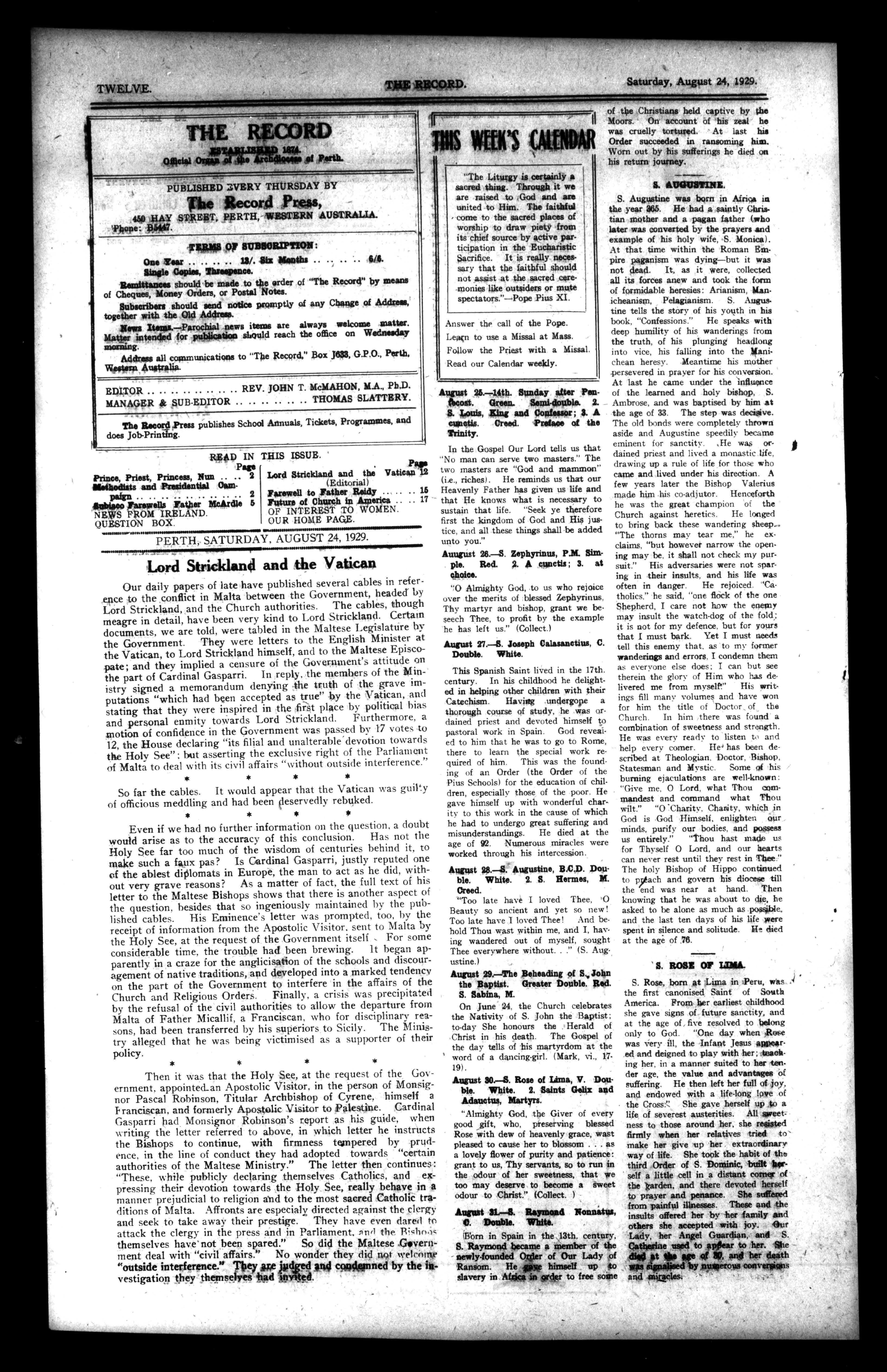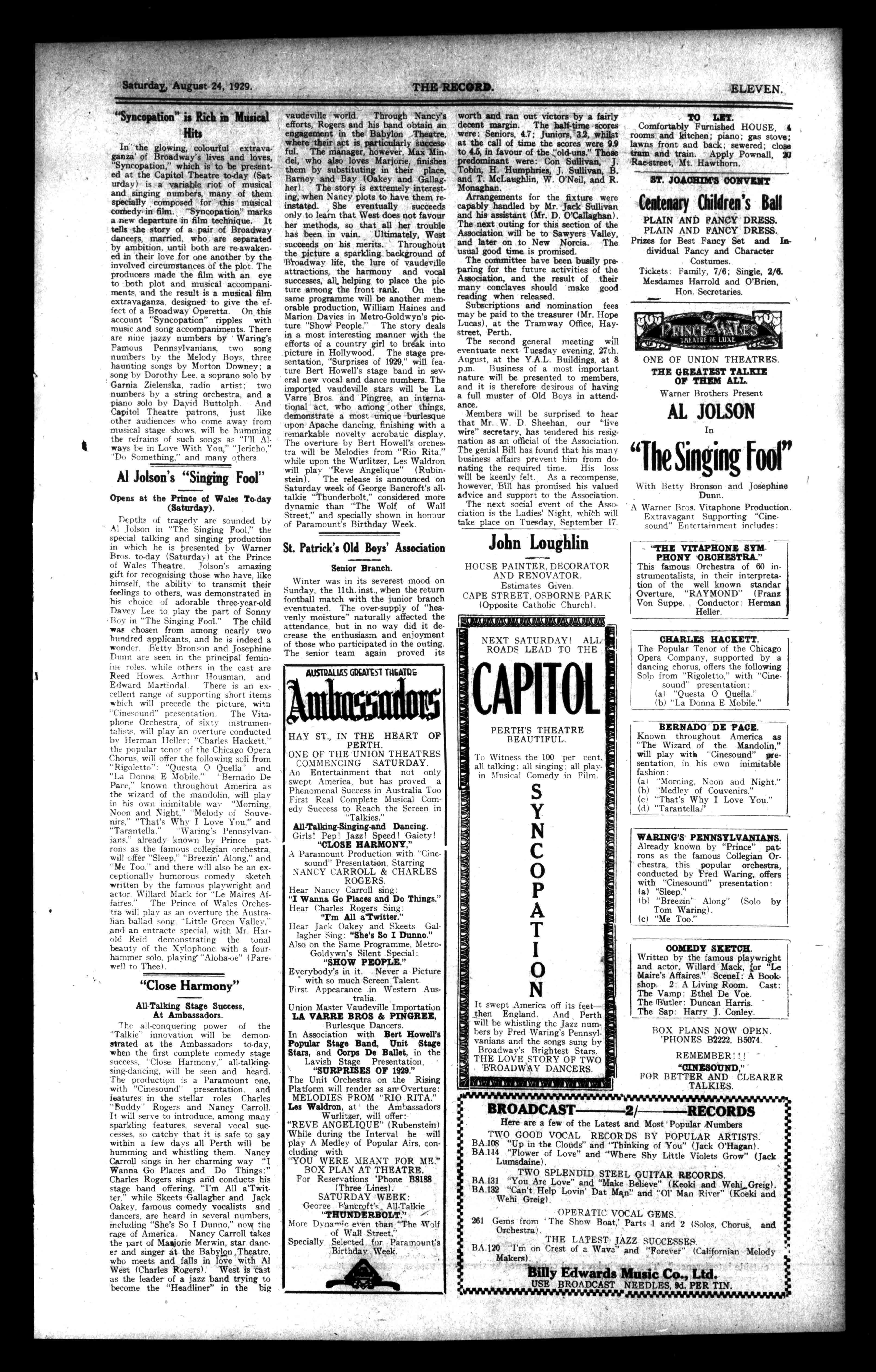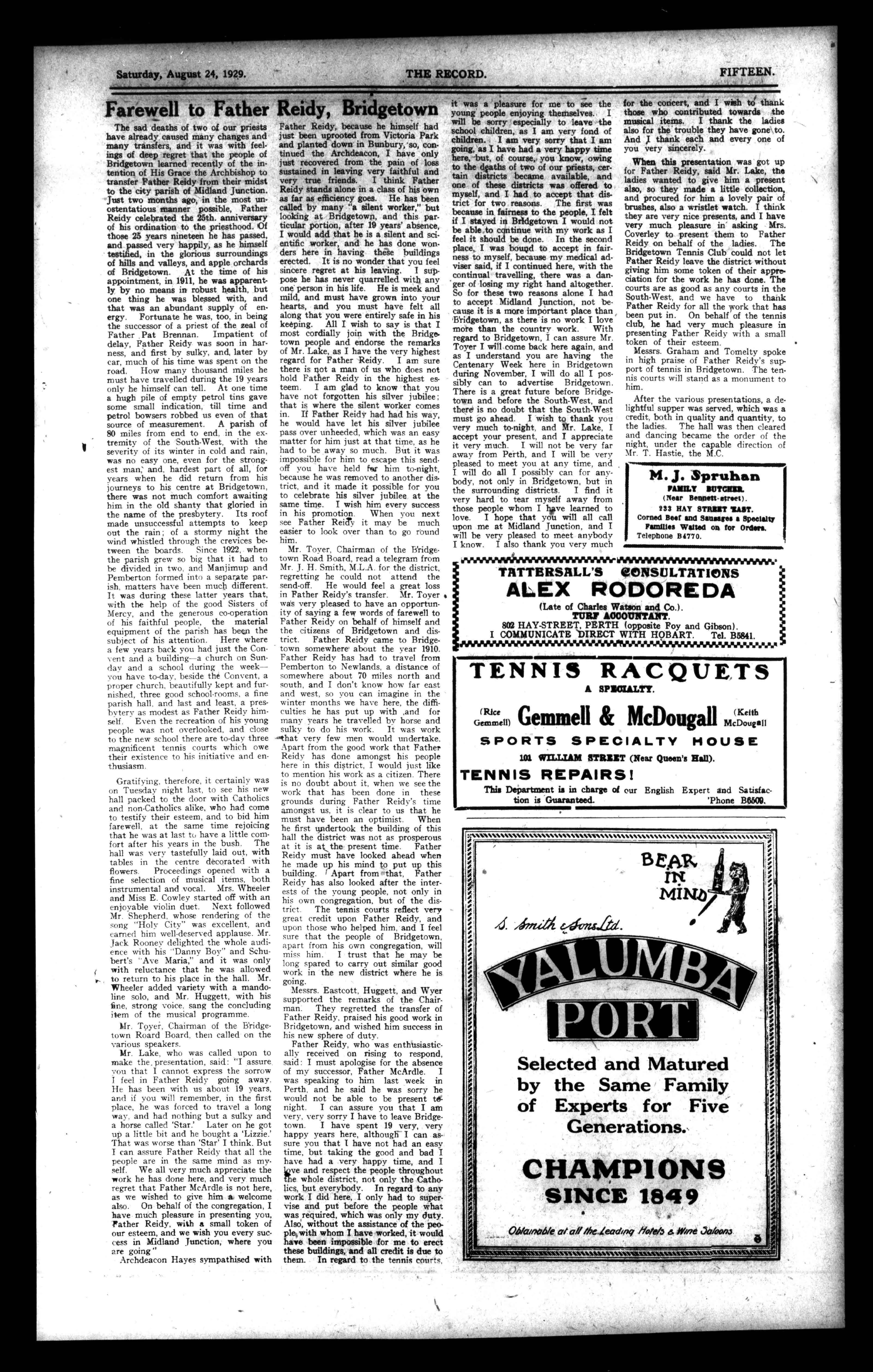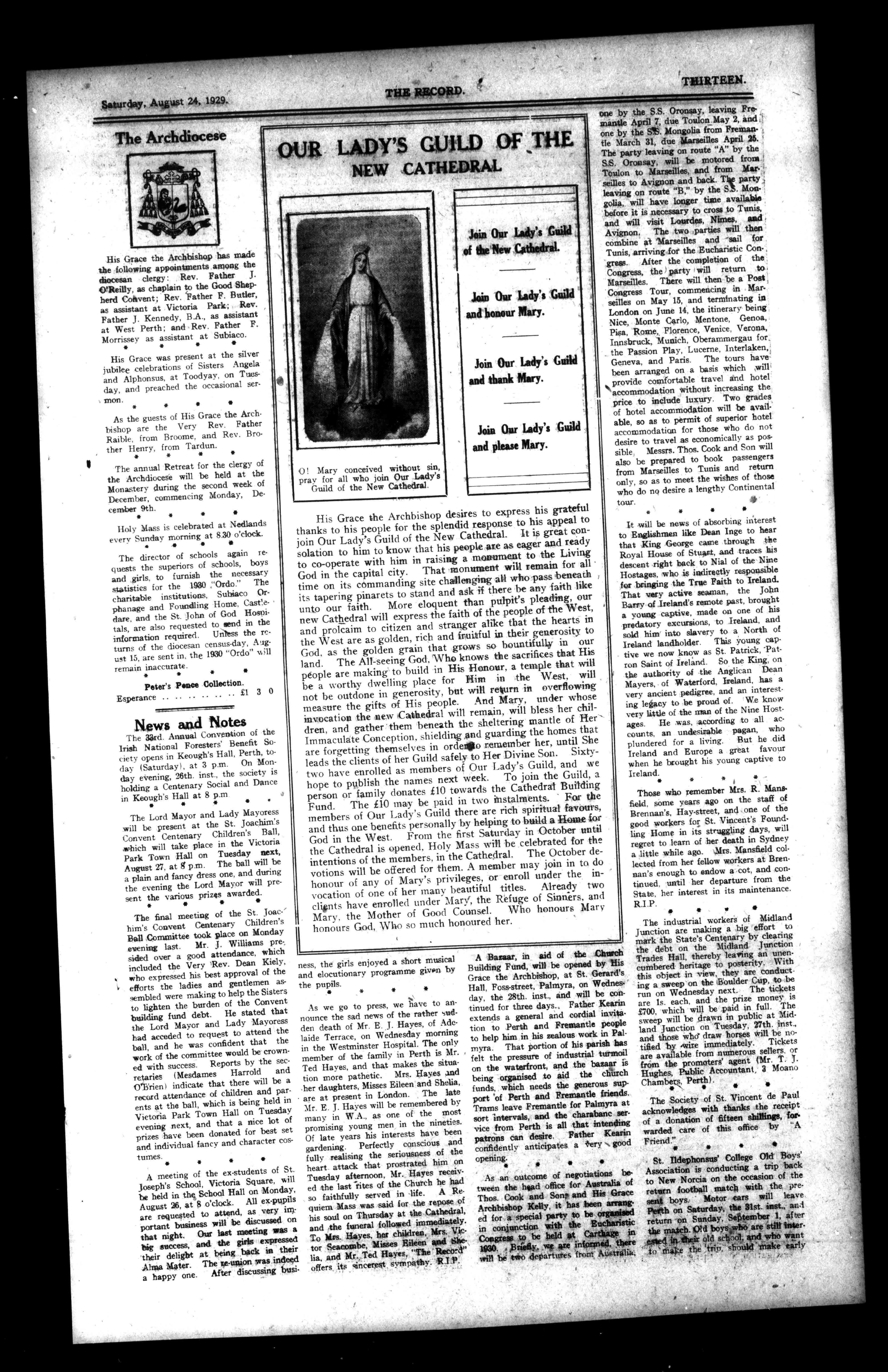 U. JI 40r//1 BrennansforService OP ON MO Mff lee 11111111.111111111111111111111110.. Pe.Woo MUMMIININ e1 1 PUBLISHEDWEEKLY. AbDREIMi:BOXJ633,G.P.O. 'PHONEAb447. ACATHOLICWEEKLYCIRCULATINGTHROUGHOUTTHESTATEOFWESTERNAUSTRALIA. PRICETHREEPENCE. RegisteredattheG.P.O.,Perth,forTransmissionbyPostasaNewspaper. ESTABLISHED1874. nesemmenammone No.2,584 _INN.If.1.11111.11111,11111111.01IIH.HHHH 1.111. PERTH,SATURDAY,AUGUST24,1929 NainNele weanOnnNIMMIMenemmm. nelenleanIONSPININNIONNen nHN1.MININNUMMINeemMeneeneenMental N1 MMNININNINIININMINNIMNIMILM NNMInMinnMINIMS BellavistaHeights CANNINGBRIDGEDISTRICT. WHEREYOUWILLLOVETOLIVE! NOMINALDEPOSIT. ONEPOUNDPERMONTH. FIVEYEARS'TERMSFREEOFINTEREST. FreeInsuranCe-forDurationofContract. LandandMines,W.A.'Limited '1)11,11es:F5169;B5160. 75BARRACKSTREET,PERTH. THE"NOINTEREST"REALESTATESALESMEN. YOURSILKS AREBESTPROCUREDAT COURT'S ONEQUALITY-THEHIGHEST!ONEPRICE-THELOWEST! CONVENTS,COLLEGES,INSTITUTIONSANDSCHOOLSSPECI ALLYCATEREDFOR. THEYAREINBARRACKSTREET YELLOW CABS (W.A.)LIMITED B8111 FENLINES) (EightOneDoubleOne) PACKARD De-Luxe PrivateHire SERVICE B4125(2lines) WEDDINGS OUR SPECIALTY IFYOUWANTTHEBEST,WEHAVEIT. NI Vol. NOW! WinterSeason's Clearance AT FOY&GIBSON'S OurWinterFairhasproved,aswas planned,anoverwhelmingsuccess andincleaningupstocksafterfive weeksofphenomenalsellingaccumulationsofhighlydesirablemerchandisehascometolight.InaccordancewiththepolicyofcleaningoutexistingStockstomakeroom fornewgoods. Now---WinterSeason's Clearance WhenthebalanceofFashions andFabricswillbesubmitted atsuchStartlingPriceConcessionsaswilleffectaspeedy Clearance. Foy&GibsonPty.Ltd. UniversalProviders,HayStreet,Perth NANNINIMMNIIIIntNOMINNUMIll I-42===linifiniiiiimmumiiiiimmiummuummuummumumiumiummilmiumnumugummim ZoologicalGardens-PopularSundayAfternoons NMI len len