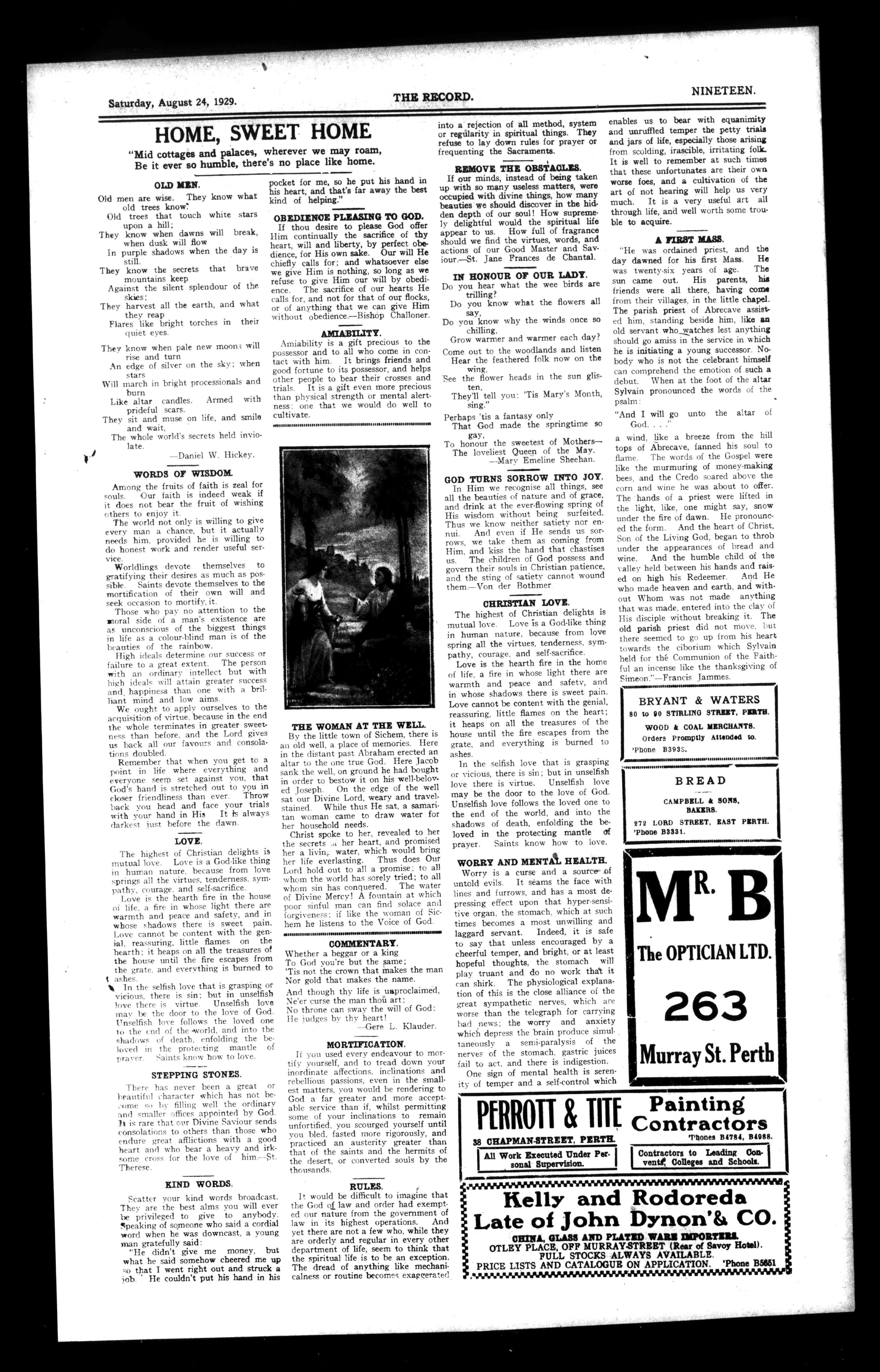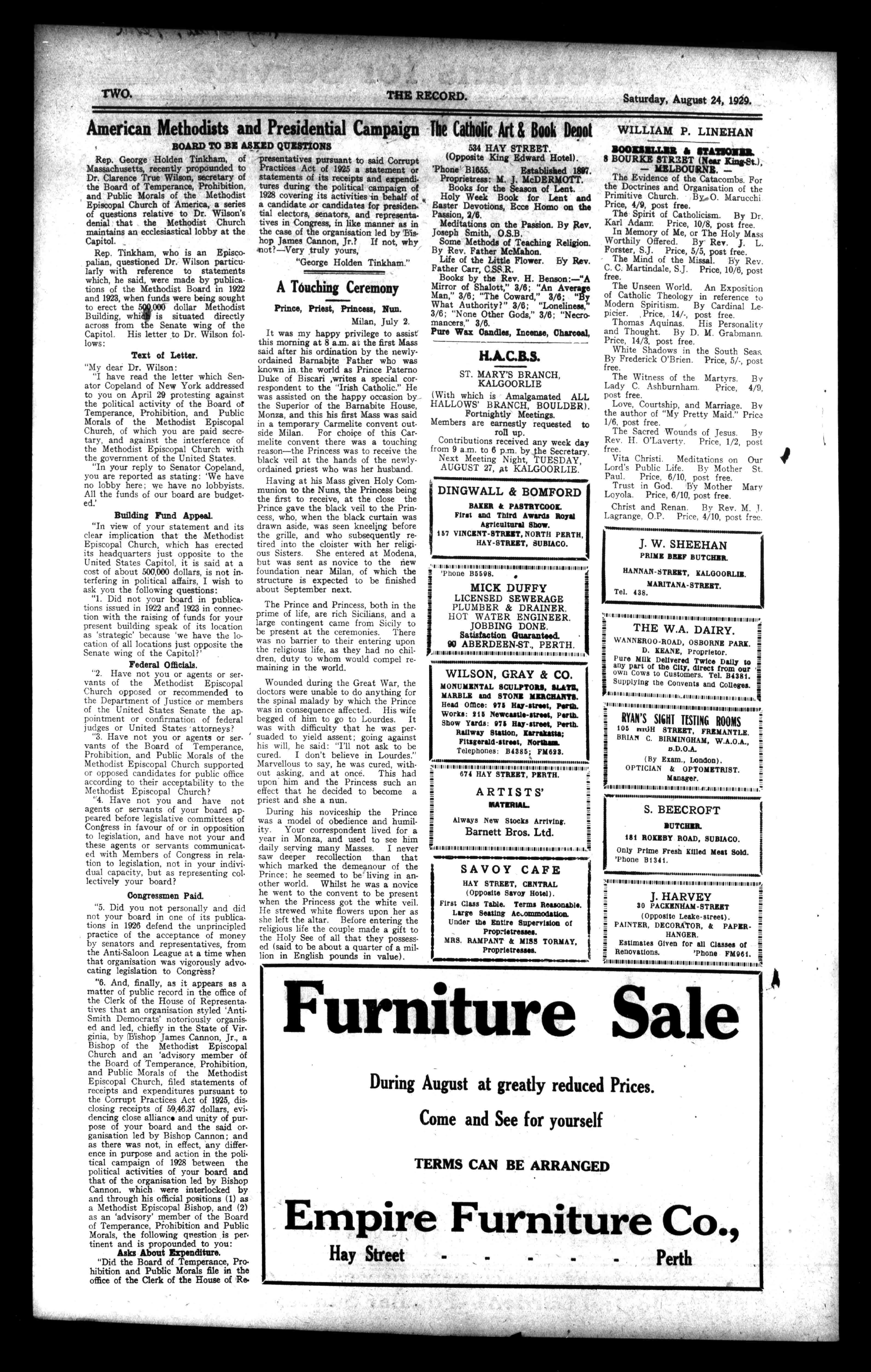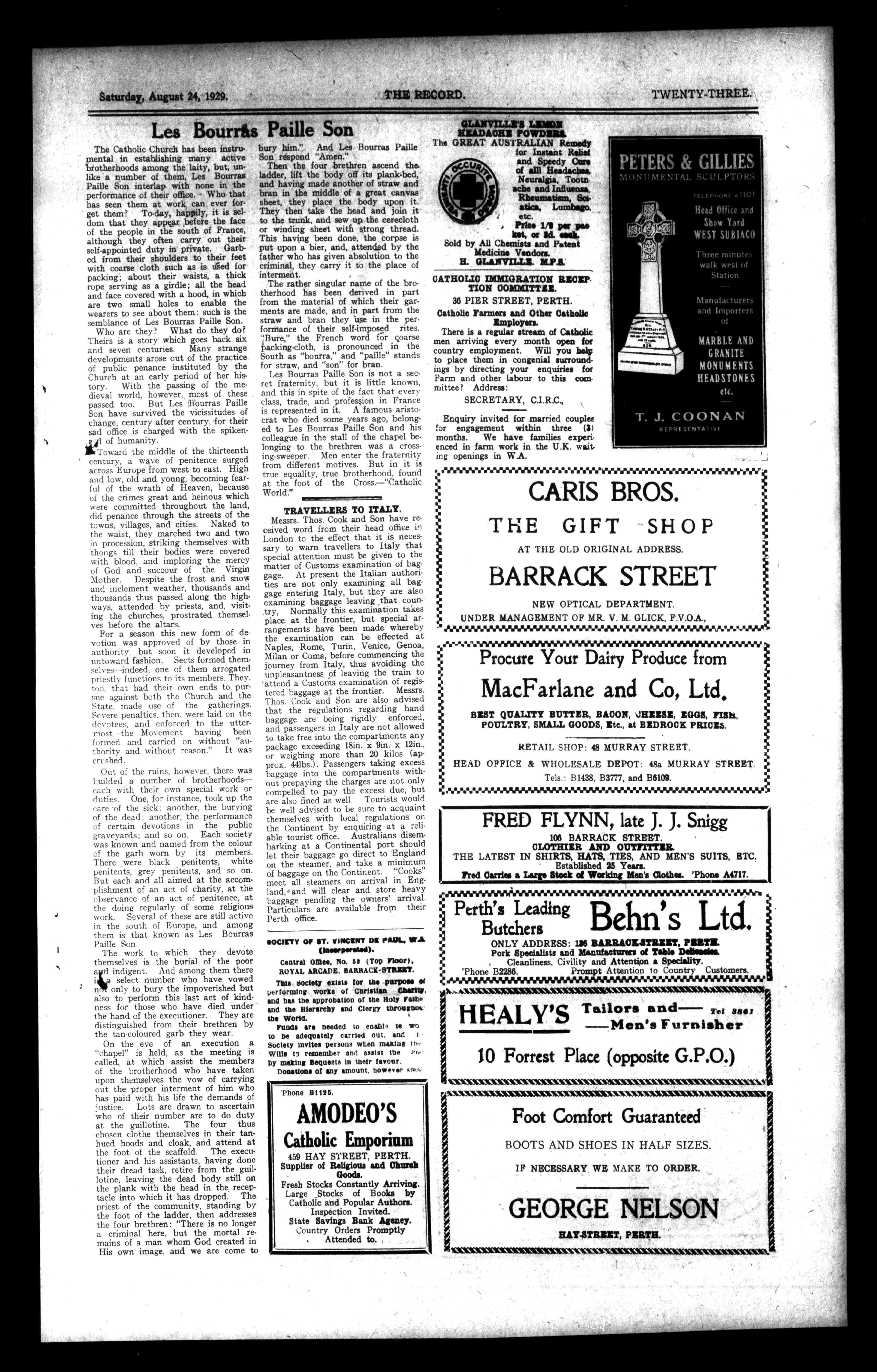 FORANYCATHOLICARTICLE GOTO THECATHOLICDEPOT Pellegrini&Co. -4111-543CEORCEST 370QUEENST244sLABETHST SYDNEY:BRISBANE-MELBOURNE 1111.11111.111111111111901111.11111111111HOWIWOHOUI.1111411kkIEstablished1894. 'Mae54165. 5 MARKDUNN (LateAl,?.) LICENSEDPLUMBERI ;.=6- 334WELLINGTONSTREET. ;:usulusmovsususuinenstionsumlininsosactononehohmulnif .11110....=1/1.1101IMI.I.III. HOLDWAY&CO. LICENSEDSEWBRAUSPLUMBERS (CertItleatad). GASFITTERSkSHEETMETAL WORKERS. ATrialSolleltei. 40-44PIERST.,PERTH.Tel.B4896. McLean&Keating PERTH'SLEADING TailorsandHatters Established32Years. 564HayStreet NextCriterionHotel. 'PhoneB4594. PERTH. MVSYCYZIZESZIata,V001006,1063006.113676 cfadyen&Coy. (LATEOPMURRAYSTRUT nowoppositeG.P.O.13Upstairs PADBURYBUILDINGS. 'PhoneB2282. TAILORS viciamacxxxvocitwoomoorcvarvorvremweimewoncimecicaml HIBERNIANSOCIETY TheOnlyCatholicBenefitSocietyintheState JOINNOW PullparticularsastoBranchSecretaries'Addresses,RatesofContribution,etc.,from W.A.BROWN,DistrictSecretaryandOrganiser, HibernianHall,Murray-street,Perth.