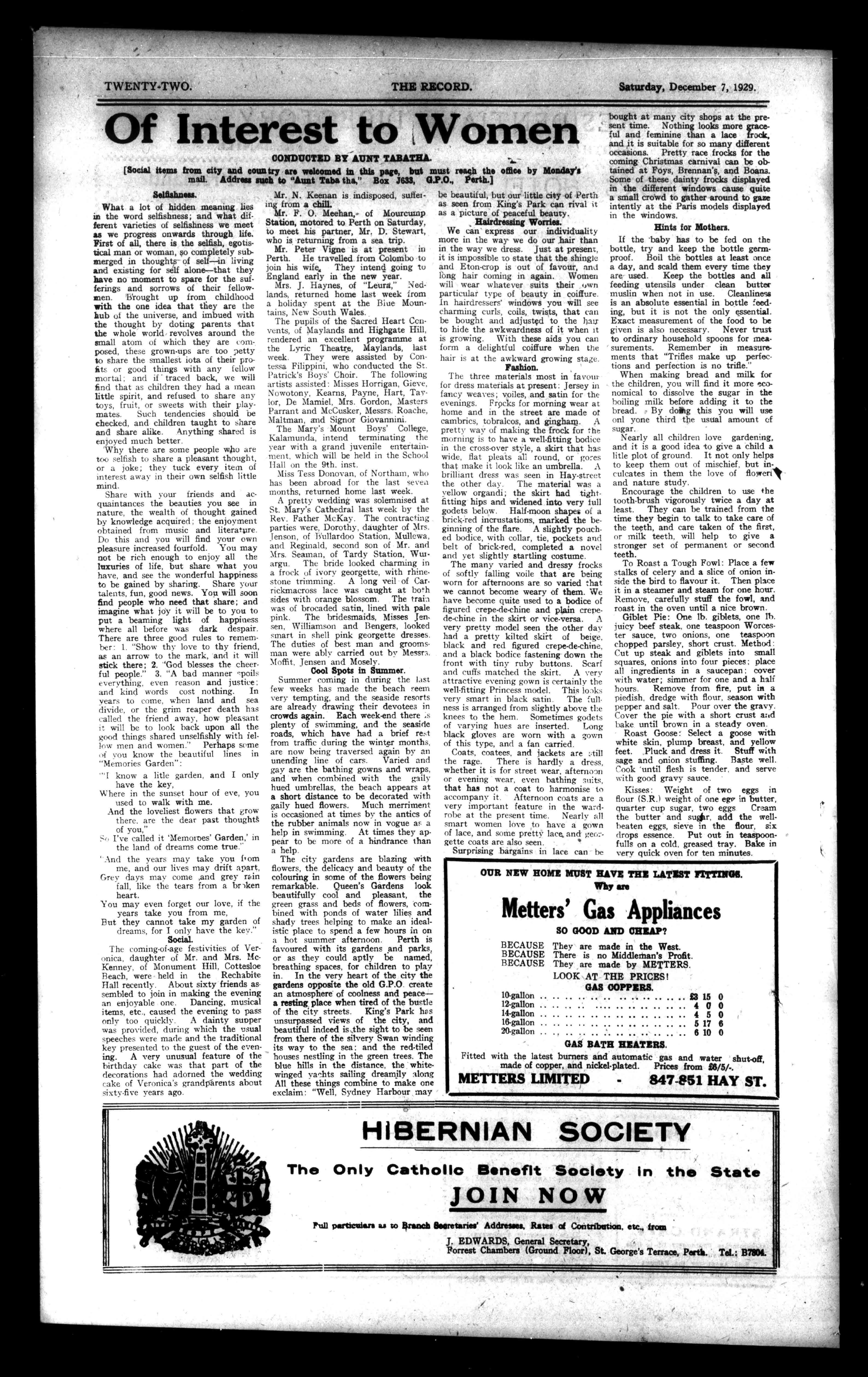 Theannualconcertbythepupilsof St.Joseph'sConvent,VictoriaSquare,washeldattheTownHall,Perth,on Tuesdayevening,December2,inthe presenceofHisGraceArchbishopClune,whowasaccompaniedbyMonsignorVerling,Rev.FathersPrendiville,McMahon,Donoghue,J.Moloney, andNeville.AmongstotherspresentwereMesdamesO'Dea,Outridge,Guilfoyle,W.Guilfoyle,MissK.O'Dea,and Mr.J.Durack.Anenthusiasticaudiencegreetedthevariousitemswith well-deservedapplause,andContessa Filippiniistobecongratulatedonthe successfuleffortsofthechildreninthe operaandotheritemsstagedunder herdirectionandconductedpersonally. Itshowstowhatdegreeofperfection childrencanbetrainedwhenhandled properly.Creditisalsoduetothegood SistersfortheircarefUltraining.The partofCountArnheimwastakenby Mr.J.Sullivanatafewhoursnotice, owingtothesuddenillnessofMiss MaryClohessy,andverywellindeed didhetakethepart.