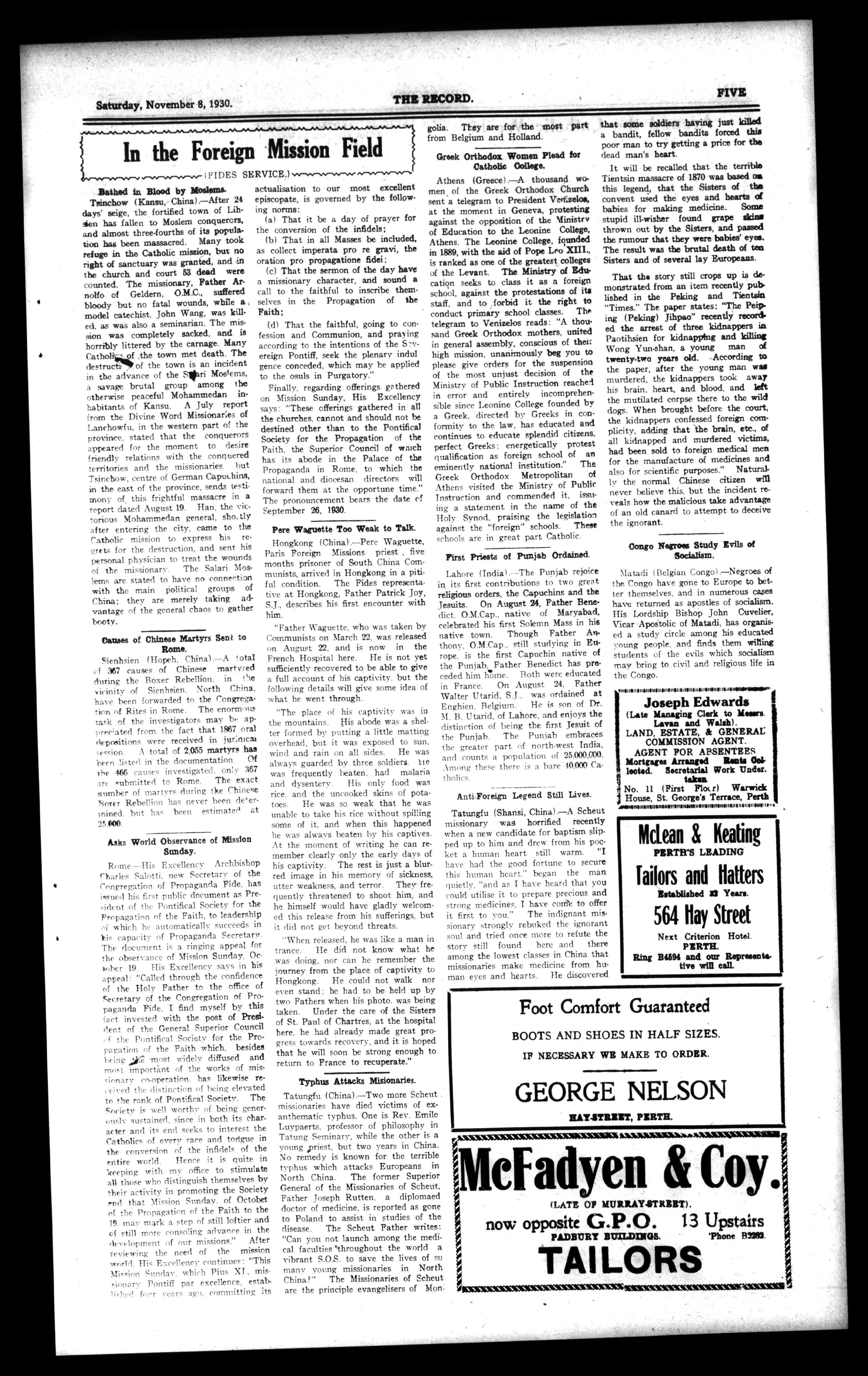 COLONIALMUTUALFIREINSURANCE COMPANYLIMITED. FIRE,MARINE,ACCIDENT,WORKERS'COMPENSATION, EMPLOYERS'LIABILITY. HAYSTACKS,GROWINGCROPS,ANDLIVESTOCK ASPECIALTY. W.L.CARTER,Manager. BARRACKSTREET,PERTH. ApplleatieasInvitedforAgenciesinDietetetaWhereNotAirstoe, Eippramatid. IFYOUCAN'TGET SwanBitter Whereyougo GowhereyouCANgetit! AskforSWANBITTER onDraught KellyandRodoreda LateofJohnDynon'&CO. CHINA,GLASSANDPLATEDWASSDOOM= OTLEYPLACE,OFFMURRAYETREET(RearofSavoyHolell. Convents,Colleges,Institutions,andSchoolsSpeciallyCateredfor. PRICELISTSANDCATALOGUEONAPPLICATION.'PhoneB5661 J.HealyTailorand-'Phone:83861. -Men'sFurnisher 32PIERSTREET - - PERTH (TwoDoorsFromHay-street). PrintedandPublishedfortheRomanCatholicArchbishopofPerth.byTHOMASSLATTERY,460Hay-street,kertb
