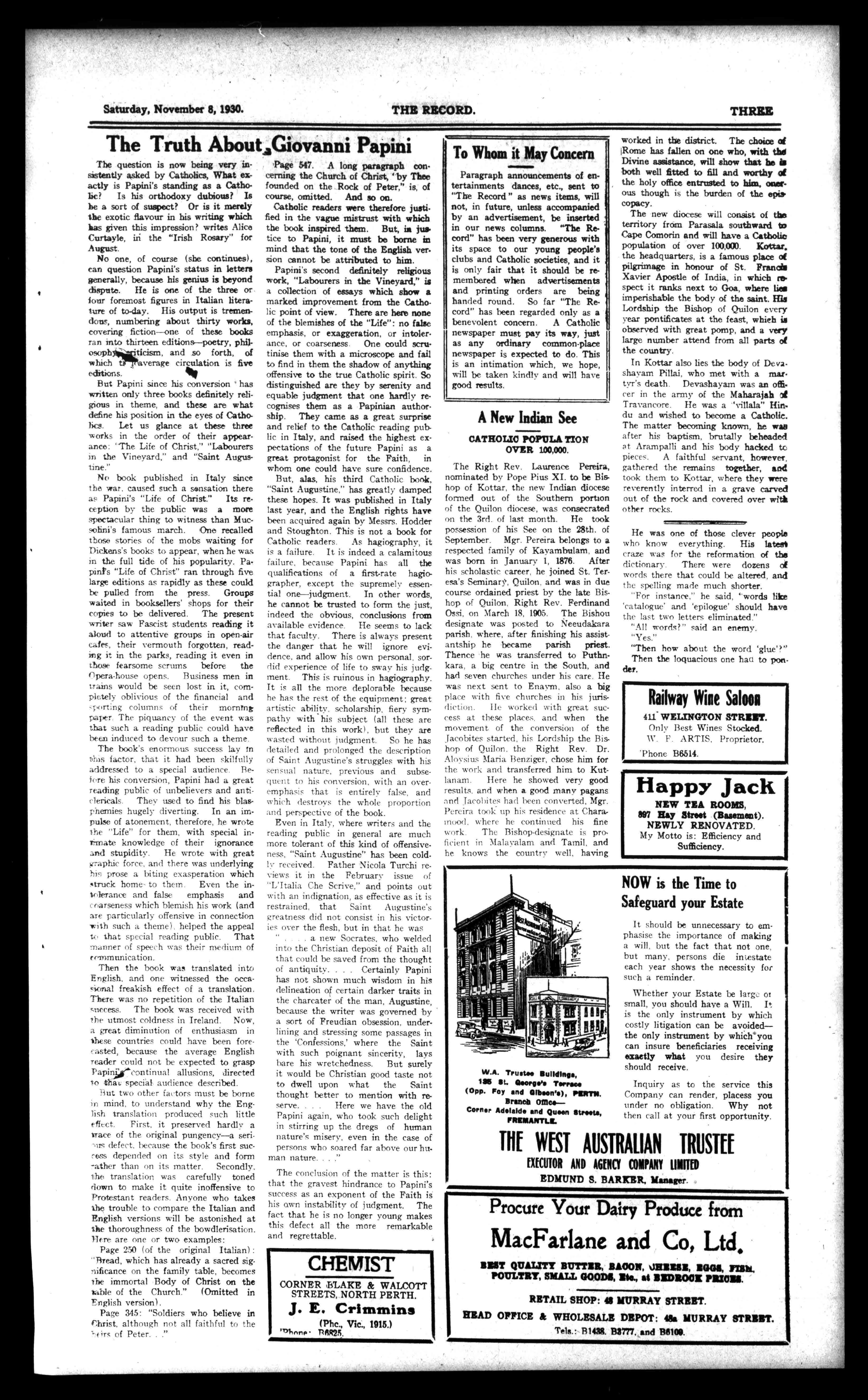 ThequestionisnowbeingveryinsistentlyaskedbyCatholics,WhatexactlyisPapini'sstandingasaCathobc?Ishisorthodoxydubious?Is beasortofsuspect?Orisitmerely theexoticflavourinhiswritingwhich hasgiventhisimpression?writesAlice Curtayle,iiithe"IrishRosary"for August.