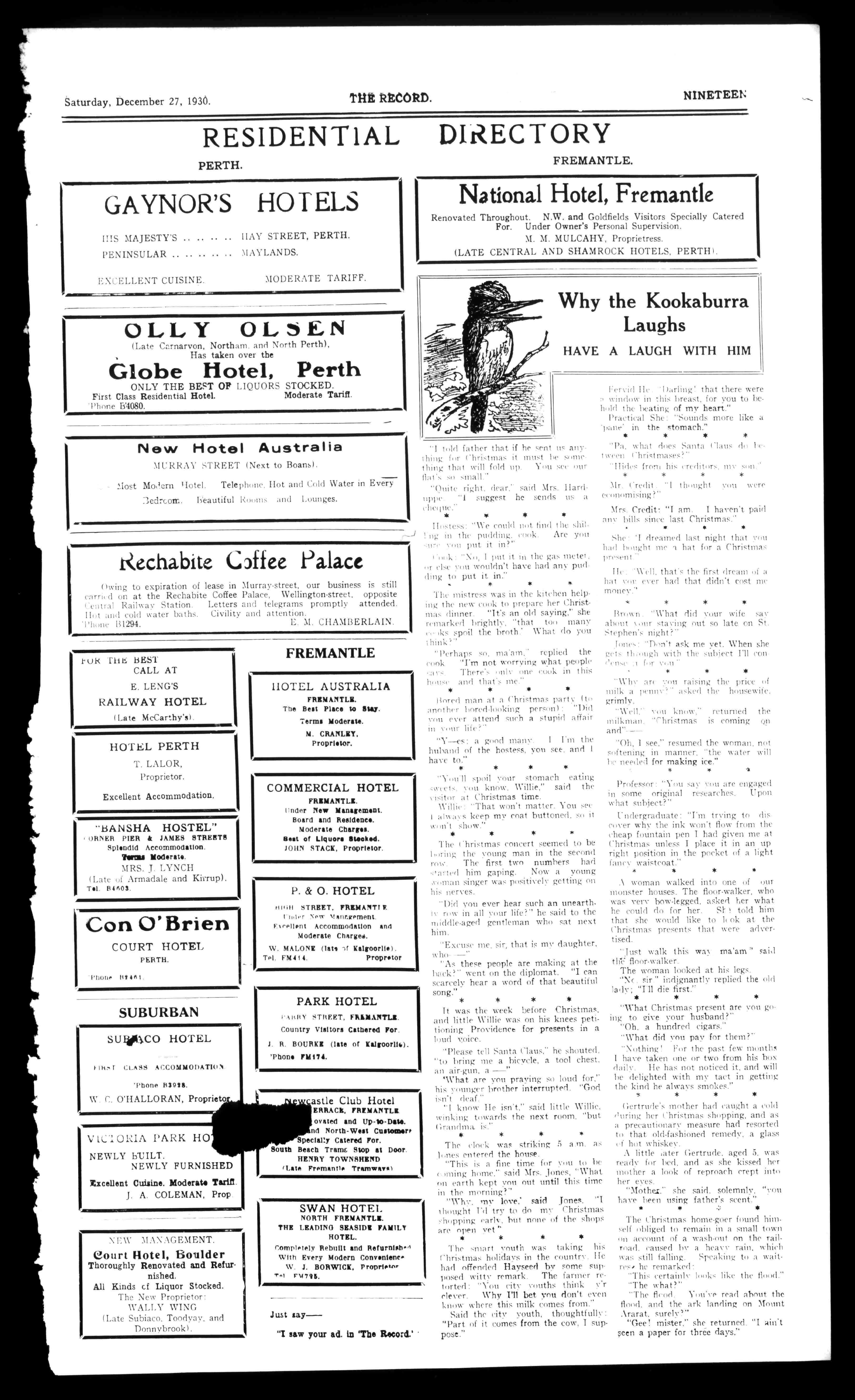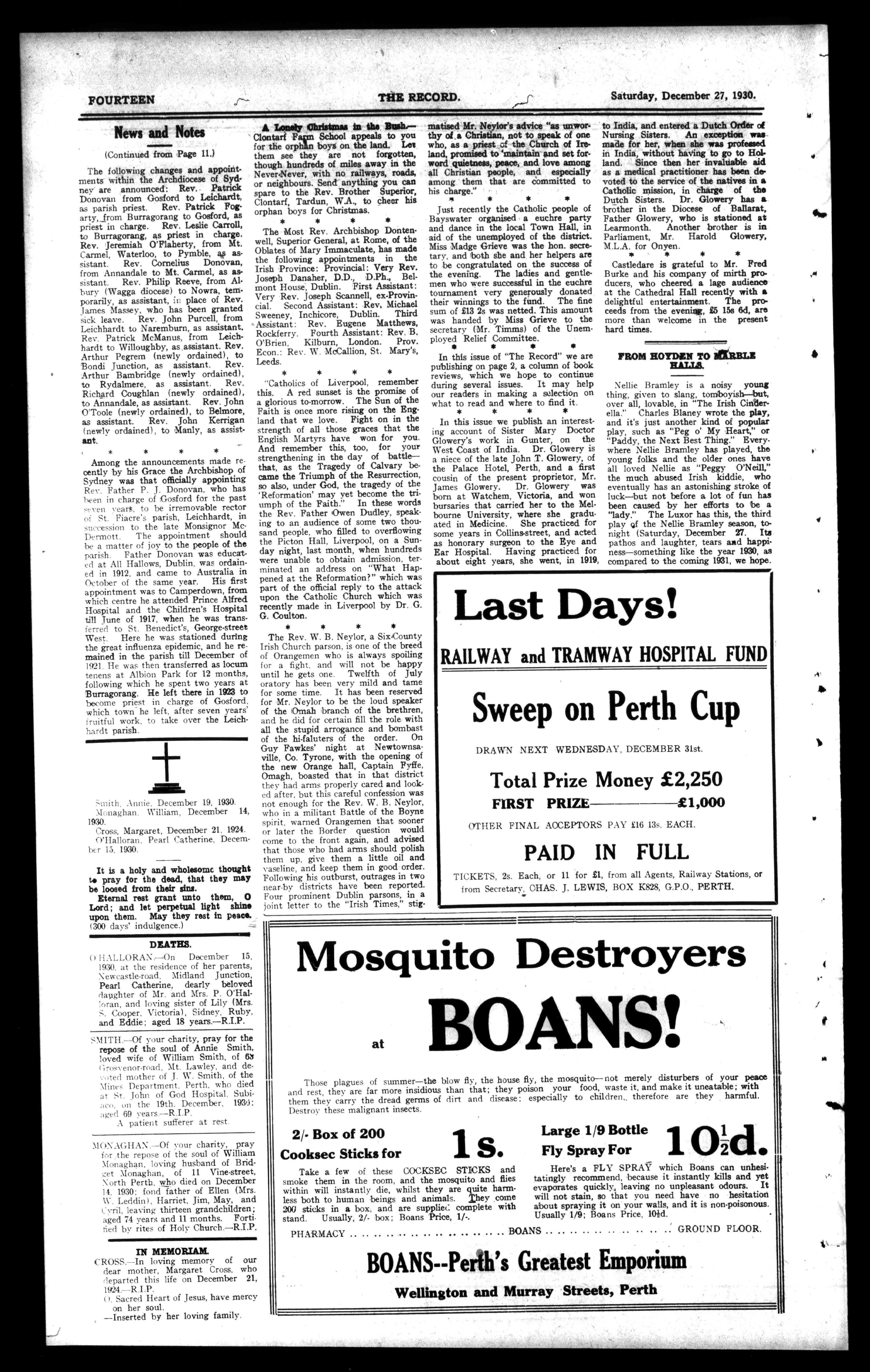 BREWEDUNDERSPECIALCONDITIONS. EBPALE A14E ASKFORGOLDLABEL. BREWEDANDBAT.,' JBREWERYLTD.,PERTH BOVIRA&01) Undertakers GENERALFUNERALFURNISHERS. MOTORVEHICLES. FUNERALSCONDUCTEDINANYPARTOFTHESTATE. NotetheAddress:195PIERSTREET,PERTH. 'Phone,B4308:Private'Phones:B2938andB3376. PrintedandPublishedfortheRomanCatholicArchbishopofPerth,byTHOMASSLATTERY,450Hay-street,l-erth.