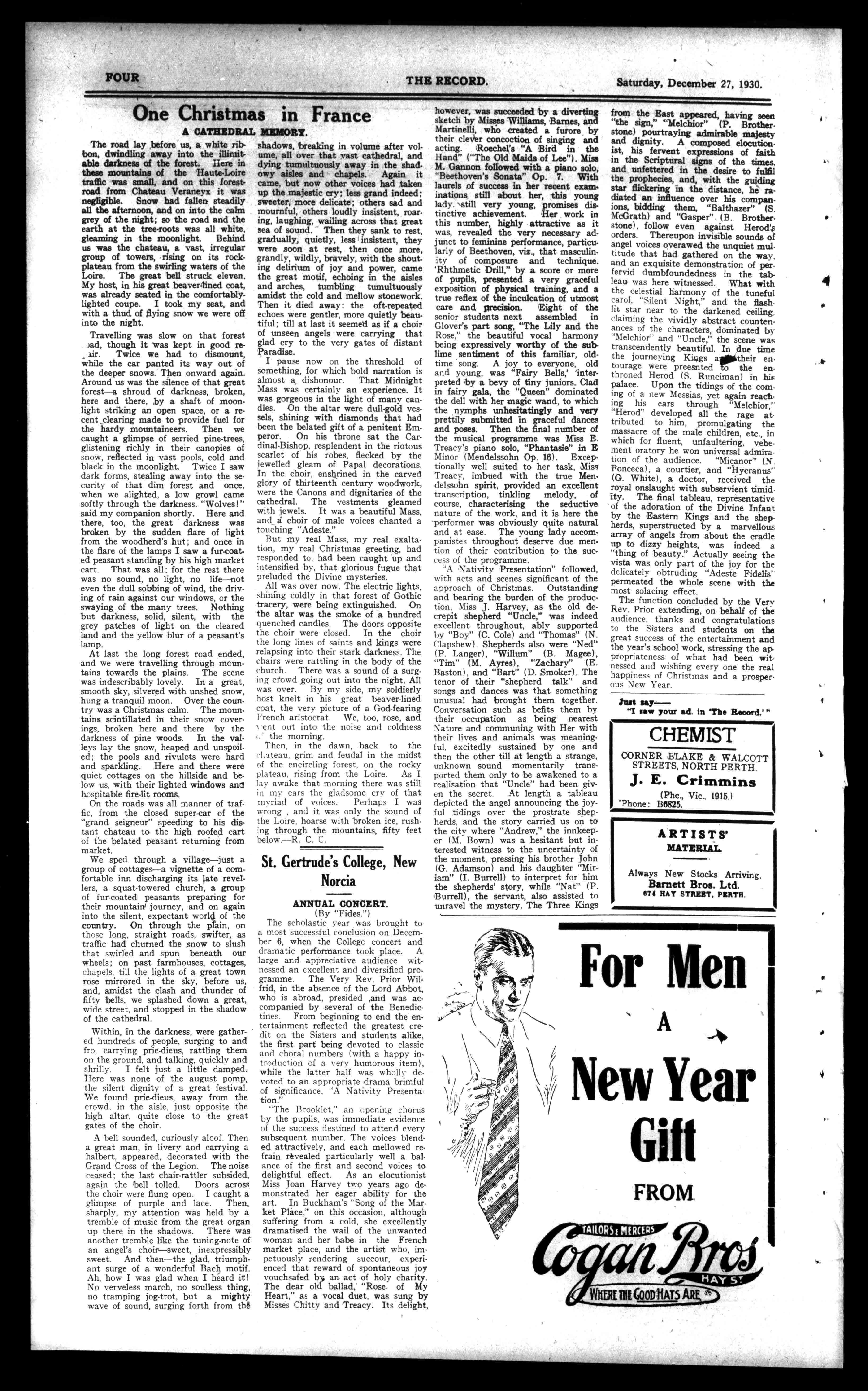 ThefunctionconcludedbytheVery Rev.Priorextending,onbehalfofthe audience,thanksandcongratulations totheSistersandstudentsonthe greatsuccessoftheentertainmentand theyear'sschoolwork,stressingtheap- propriatenessofwhathadbeenwitnessedandwishingeveryonethereal happinessofChristmasandaprosperousNewYear.