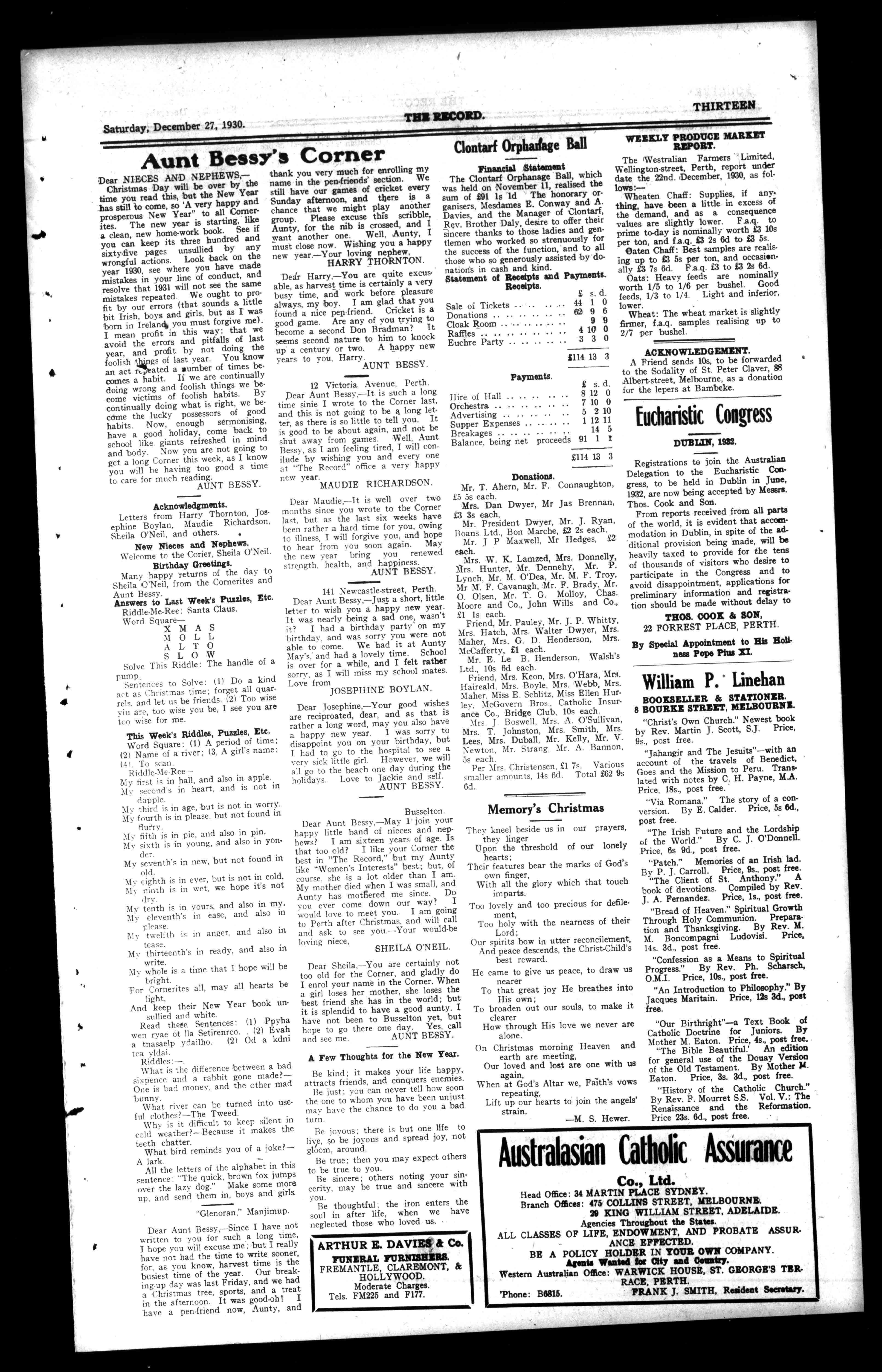 LastSaturdayafternoon,December 20th.,themembersofSt.FrancisNee. dleworkGuild,ablyassistedbytwo S.V.P.S.Brothers,entertainedalarge partyofchildrenbelongingtofamilies indistressedcircumstances.Thechildren,afterhavingbeenwellamused andfedandgiventoysbytheever jovialFatherChristmas,werepresentedwithparcelsofclothingprepared bymembersoftheGuild.Thisneedleworkguildhasbeeninauguratedto meetthehardtimesandassistthe S.V.P.S.tocopewiththemanysad casestheycomeincontactwith.Catholicwomenareearnestlybeggedto co-operate.Therulesaresimple,and theresultsmdstsatisfactory;butso fartheworkersarefew.Please,dear