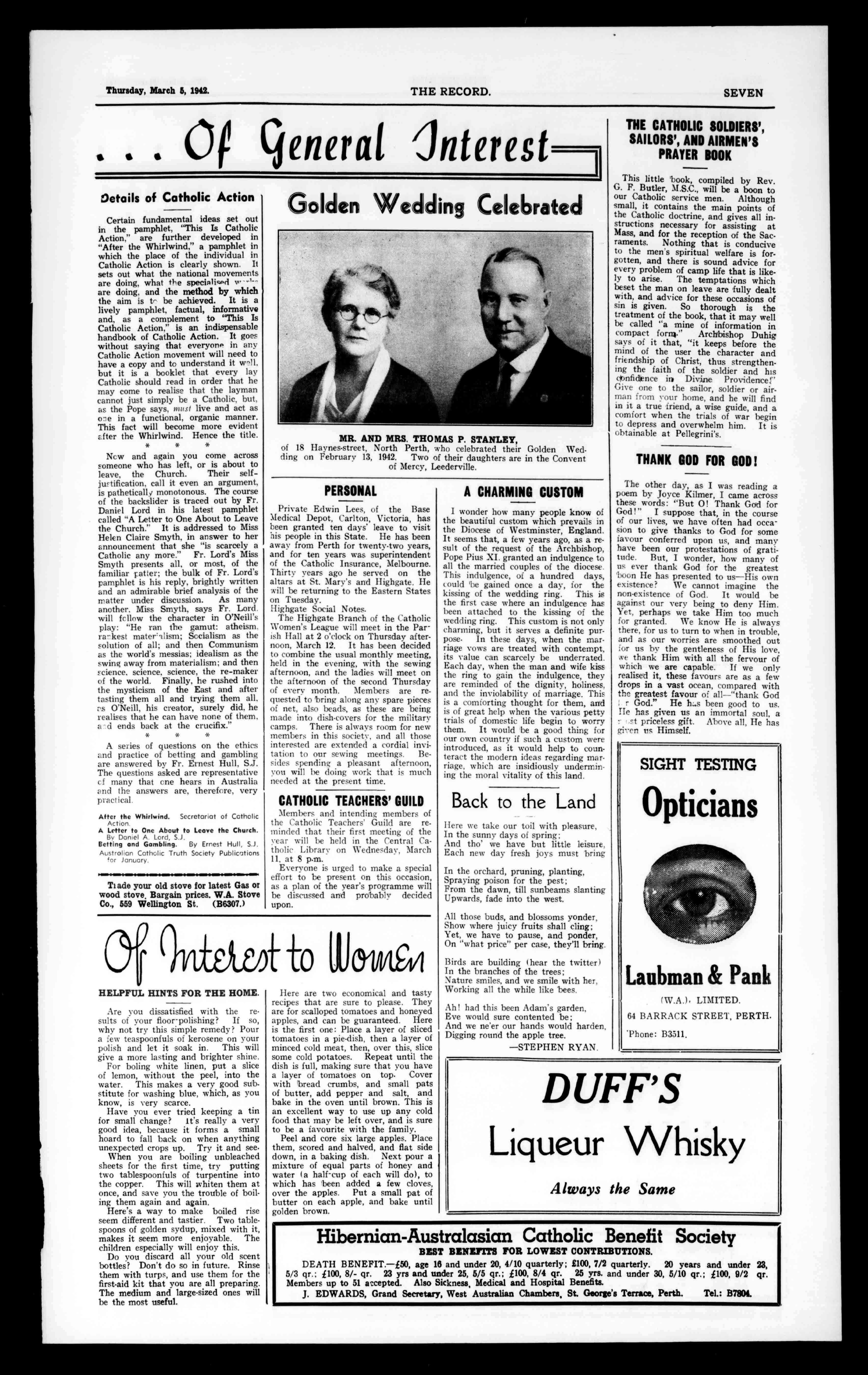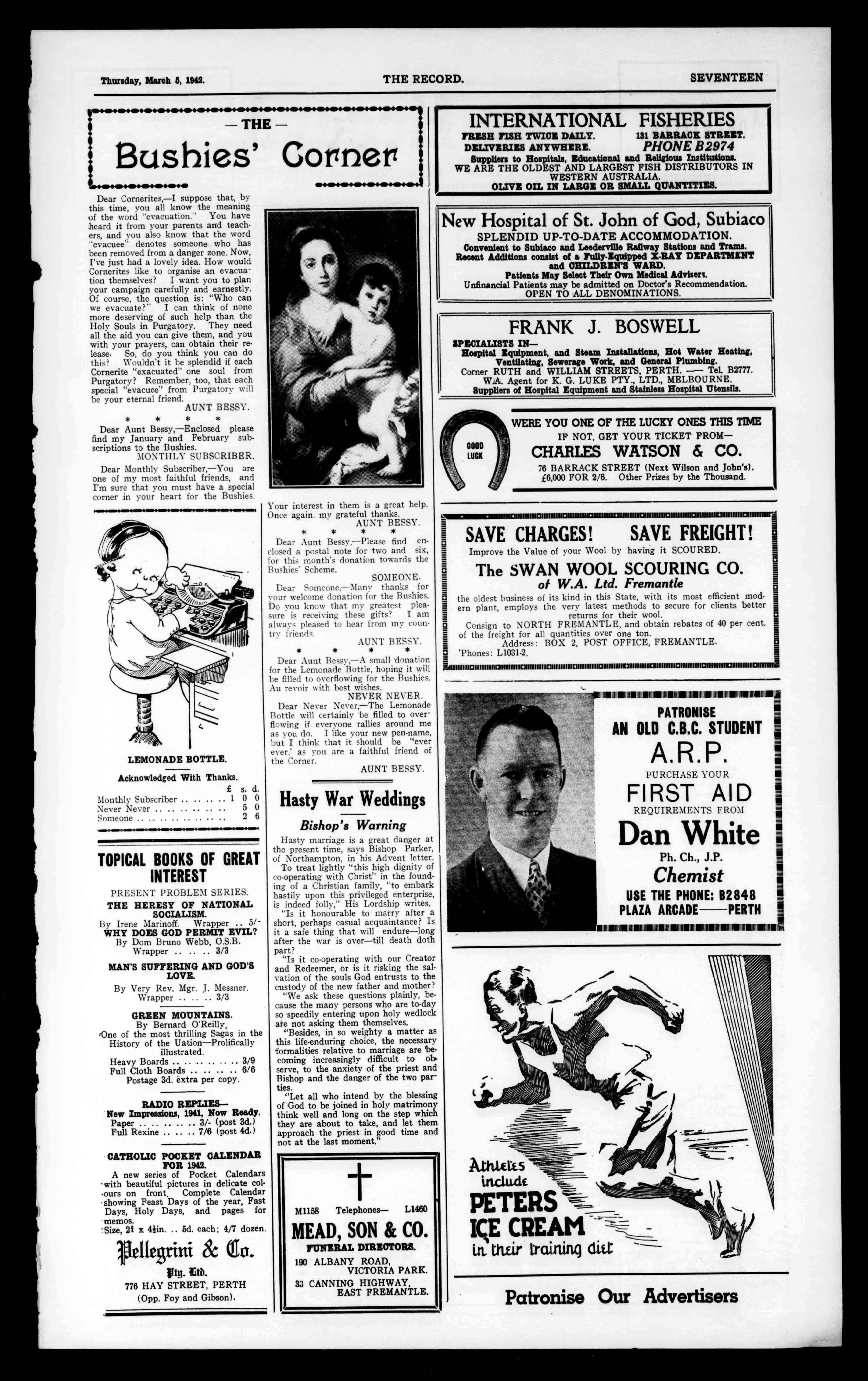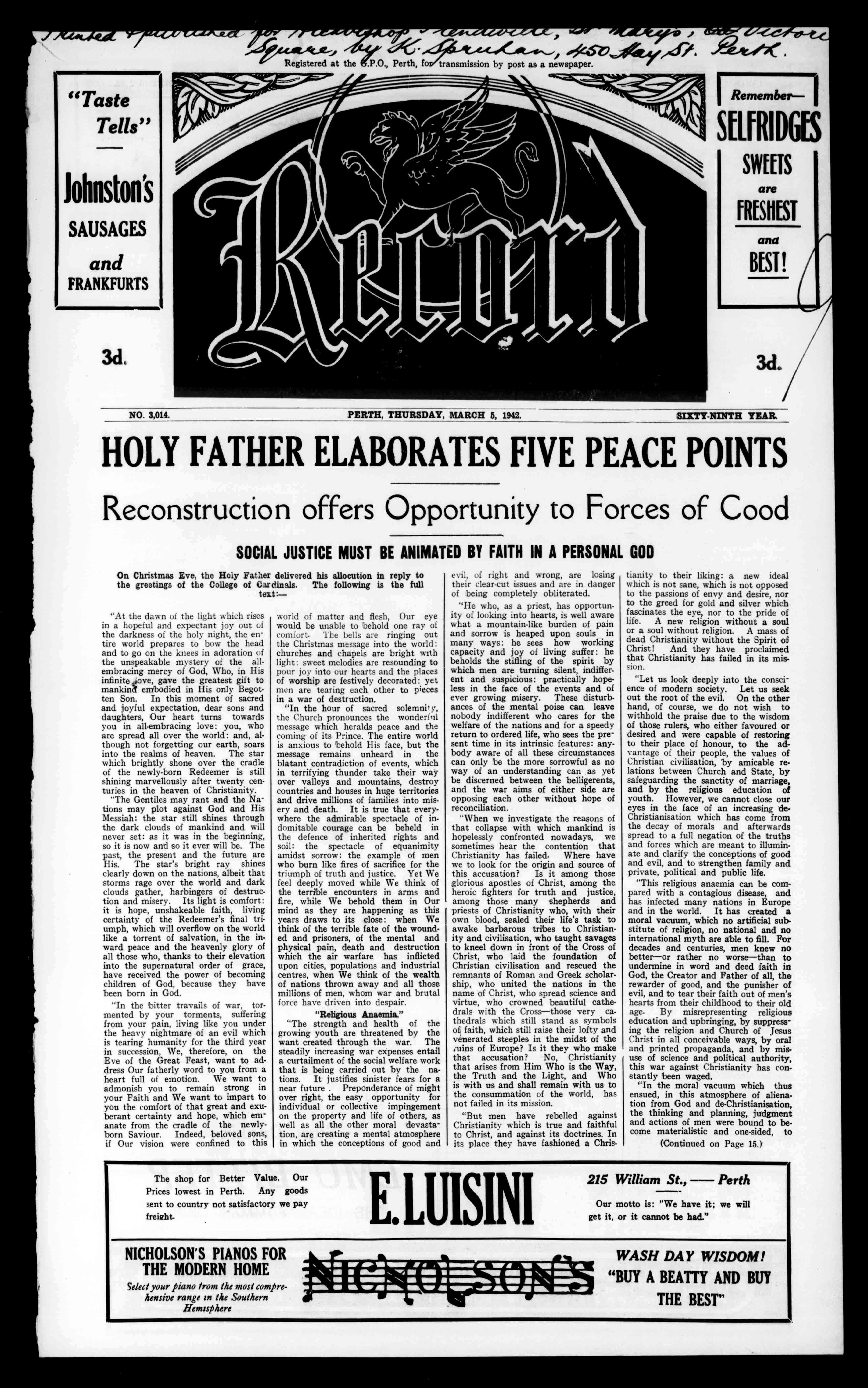 °Pr W '.-a'- Jr, 17RMSP157,/, *%CC"ayetSWP RegisteredattheG.P.O.,Perth,fortransmissionbypostasanewspaper. "Taste Tells" Johnston's SAUSAGES and FRANKFURTS 3d. NO.3,016. Saint Charles' THESUPERIORSANDSTUDENTS Seminary...OpenedbyHisGracetheArchbishop PERTH,THURSDAY,MARCH12,1942. SIXTY-NINTHTIER Innis _a.f.sairms...a...aa.,AtoAIMAAO410.1.71.Ai 86il,..4...18 NAJNONNAUil, 4/60,,,L.at- Amu...dAmios":atrilit-Isterwous.sei .,4 talltall, 4,644A...AiMI.111P11..431... At Jaw' 1. CA..W 40,...411..S1 IIIIIOA ....401AtittlLiAlia.AAA.WAIL,410i....M.WS,1111A411:, .1A AIAat,4164,.1111111.1tAlaiisit,111.IN -ANY.100-ilARALAAICAJAL.Otti A-4;:.MAIM .' AMIOMM`1.1,11/GPM.=4LWOW64: /NNW, a ..a.0,,ar Ar al;1111,1111 klAt Atri,MirA0,44111011111011lallatt114.':tt'...IS-.1,11..7.,In1.14,A:5It ,./ At ai.......om...J..:alINIa0MVONV. liNrr...no.4,....2..if.ainriumjill4...ar,At.r..fag..r....al .-1%,,, ,a, .......,maw. IfIlf 2.01,111,.4.1 II 4 ...4.-leyIMAMasaos.wiArs, 1...311IMOMillii1111.1116,VIPiAxt 41, N. -gr311(JrAtArt.,AJkatEli/...:.4.AiitIt to,":StAN.lilaJIIIAIANAIAA MUM!AMII...Allit....AUS 1/.4,1441-.0.. ir Await'iio'NJJ.1100,...INIPINNINN RINNSIONINICU..a...41.1ititlt I....1.lAtWsilas:111101111,.11116iii I-'sari4,as- N.NNWINIININ .IIIVe/ A .I.1 a'NMIINod1 M..1, 2111 'II"a1ias711,. 4...4a"'1""Luiles.j.gA:.'4.11,'"1"..4%, LiJ.4 1L'.., fI.faiWar 4, 'gm ,....... .,..suL.31...%!" ,11".;It-liar 1, WM/ re.tANLAINII .,MI,I..nom. .'t 11101, 4111MIL11111MI