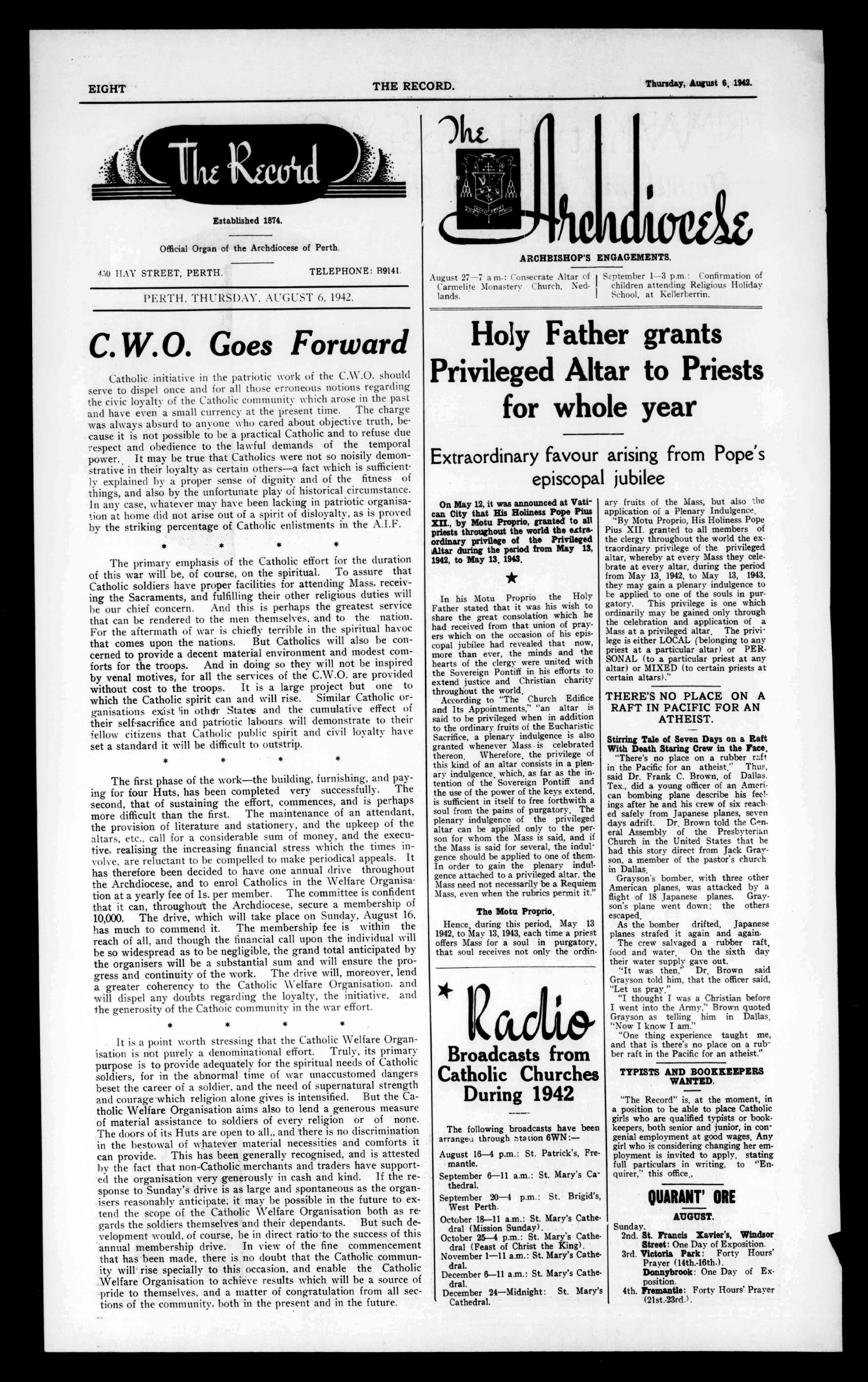Q.AfewweeksagoprominentCa. tholicpriestswarnedthepublicnot tobelieverumoursthattheChurch hadenteredinto with theFascistGovernmentofJapan fortheexchangeofdiplomaticrepresentatives.