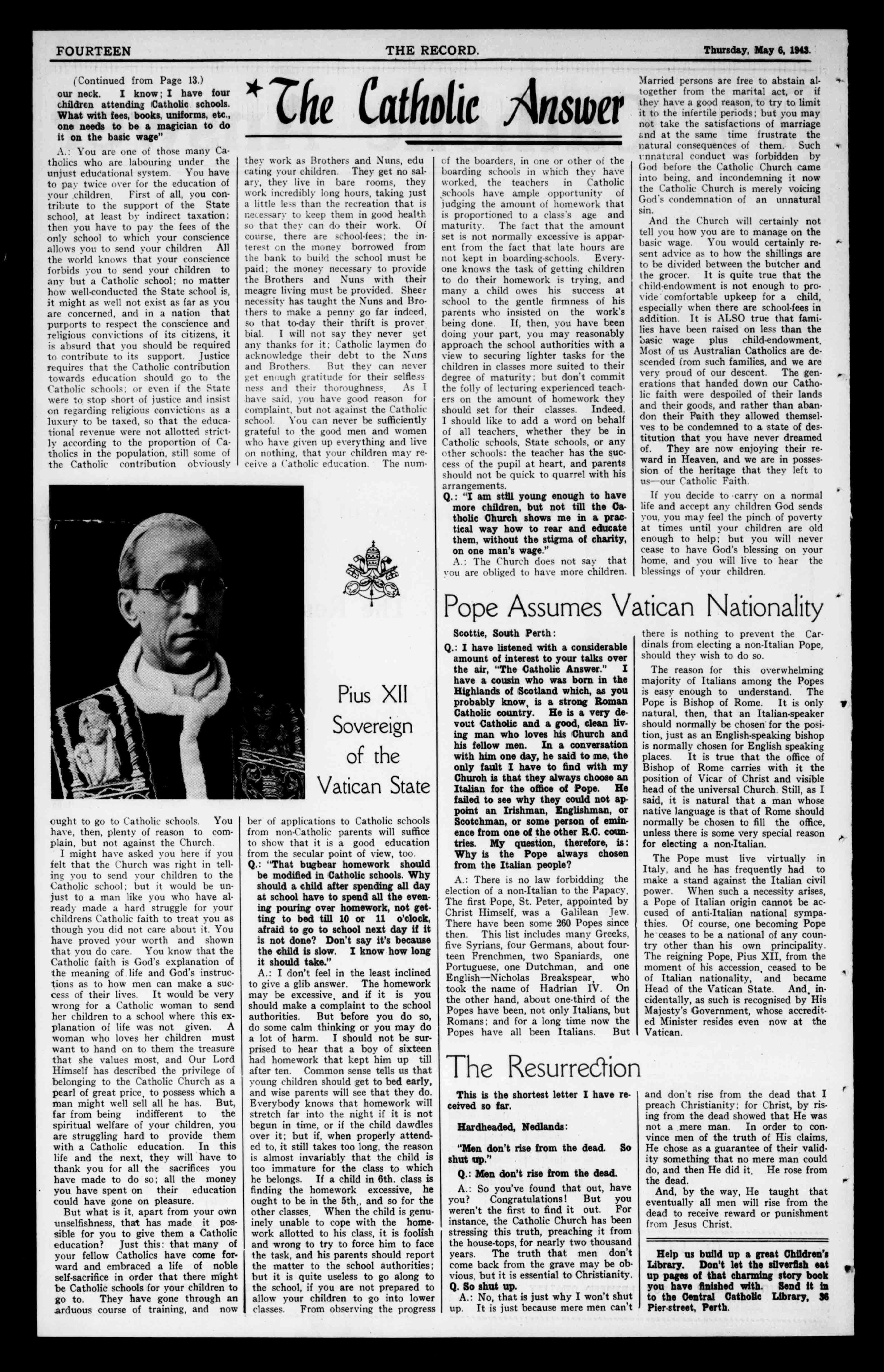 R.:Icanmerelysaythattotalk likethatistotalkarrantnonsense. Asamatteroffact,ProfessorAndersonshowsthathedoesnotunderstand eitherthereligionortheeducation whichheprofessestodeal.Lateron, hegivesamostinadequatedescription ofeducation,andacompletedistortion ofthenatureofreligion.Andaman withaninadequateknowledgeofthe onetopic,andanerroneousconceptof theother,isnotfittedtodealwith eitherofthem, Educationisnotjustlearningthings thatmayormaynotbeusefulinthis worldonly.Itisfittingpeopletofulfilthecompletepurposeofhumanexistence.Anditmustbeinaccordance withman'struenatureanddestiny:A manmustgetaliving,hemustlivein harmonywithhisfellowmen,andhe mustliveforGod.Andiftheschools aretogivetrueeducation,theymust provideforallthreeaspectsoflifeby teachingnaturalscience,byproviding charactertraining,andbyinculcating religion.Religionisessentialtoa soundeducation.