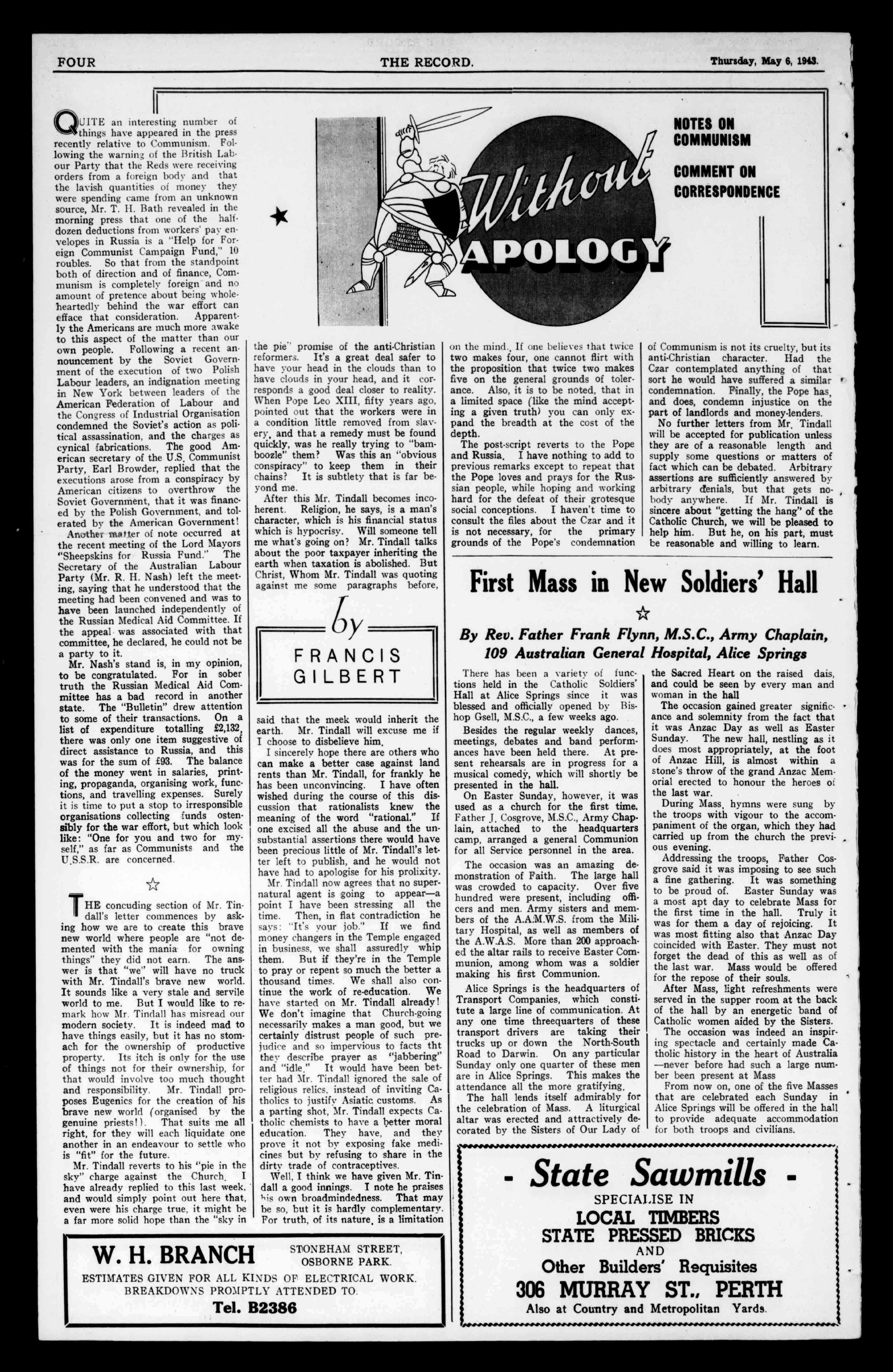 R..Iwillgladlydoso.ButI wouldlikefirsttoremarkthattheaddresswasdeliveredonApril1.That factmayleadsomepeopletoimagine thatProfessorAndersonthought"April Fools'Day"anoccasionwhichwarrantedanindulgenceinunmitigated folly.Yetsuchisnotthecase.He reallywastryingtogiveexpressionto hisconsideredopinionsonthesubject ofreligionandeducation.Hewasnot joking.Hewasdeeplyinearnest.He isaferventevangelistwithafaithin unbeliefeverybitasreligiousasthat ofthosewhomheattacks,andheis outtosavewretchedhumanbeings fromthetyranny(asheregardsit)of GodandChristianmorality,lifting themtotheloftyheightsofundiluted materialism.Howastonishinglysilly washisreportedsermoninthecause ofirreligionwillbecomeclearaswe proceed.