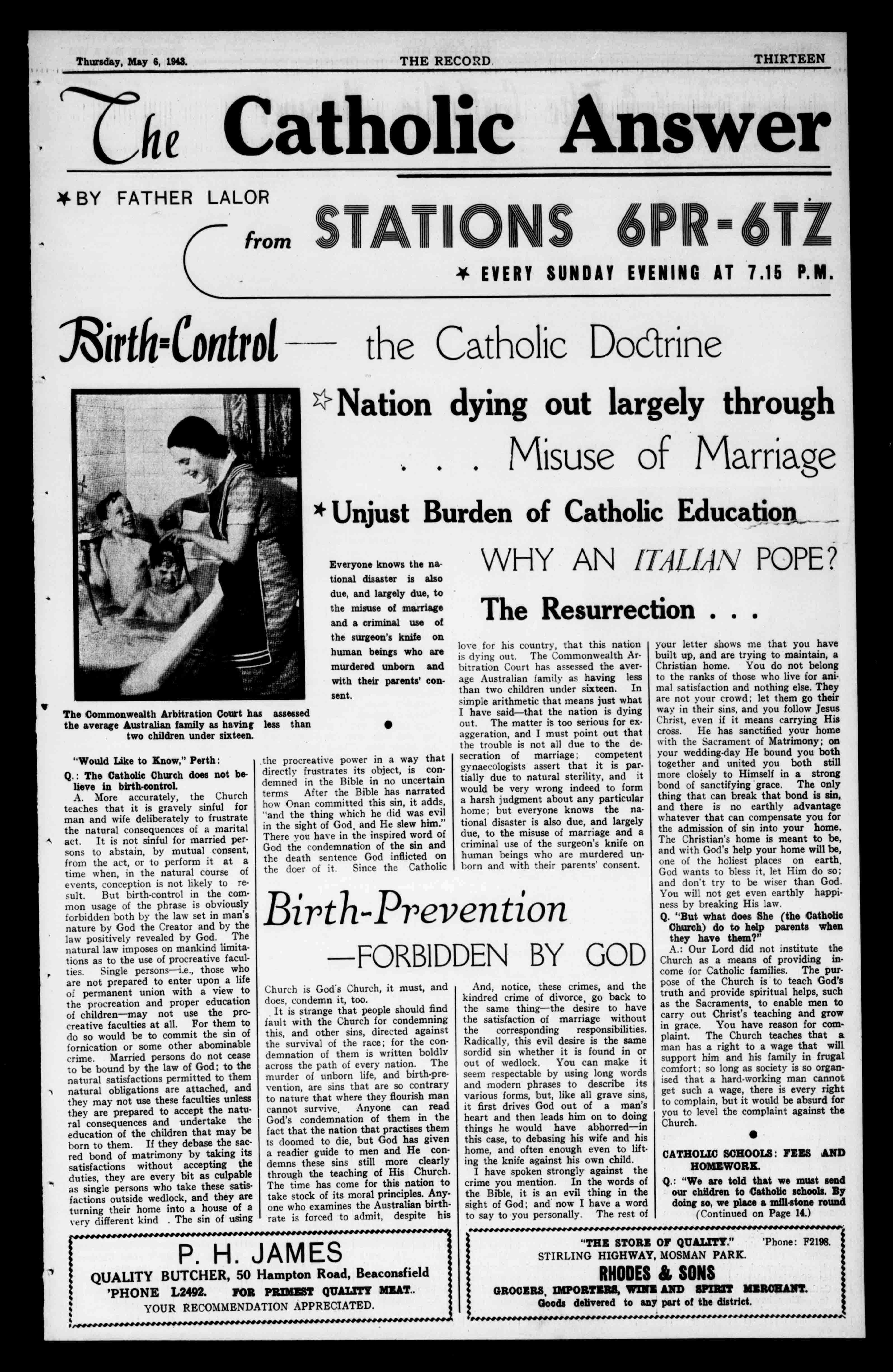 "TheFederationNationaleCatholique,throughitsofficialorgan,"La FranceCatholique,'hasemphasised thatoneoftheessentialcausesofour disastershasbeentheattack,during thepast150years,onthedignity,stabilityandfecundityofourhomes.The vigorouscampaignsintroducedtocombatthisimmorallawofdivorce,notablybyChurchauthoritiesandmilitantCatholics,eventhoughtheyhave notyetattainedtheresultstobeexpected,have,nonetheless,notbeensermonspreachedabsolutelyinthedesert."