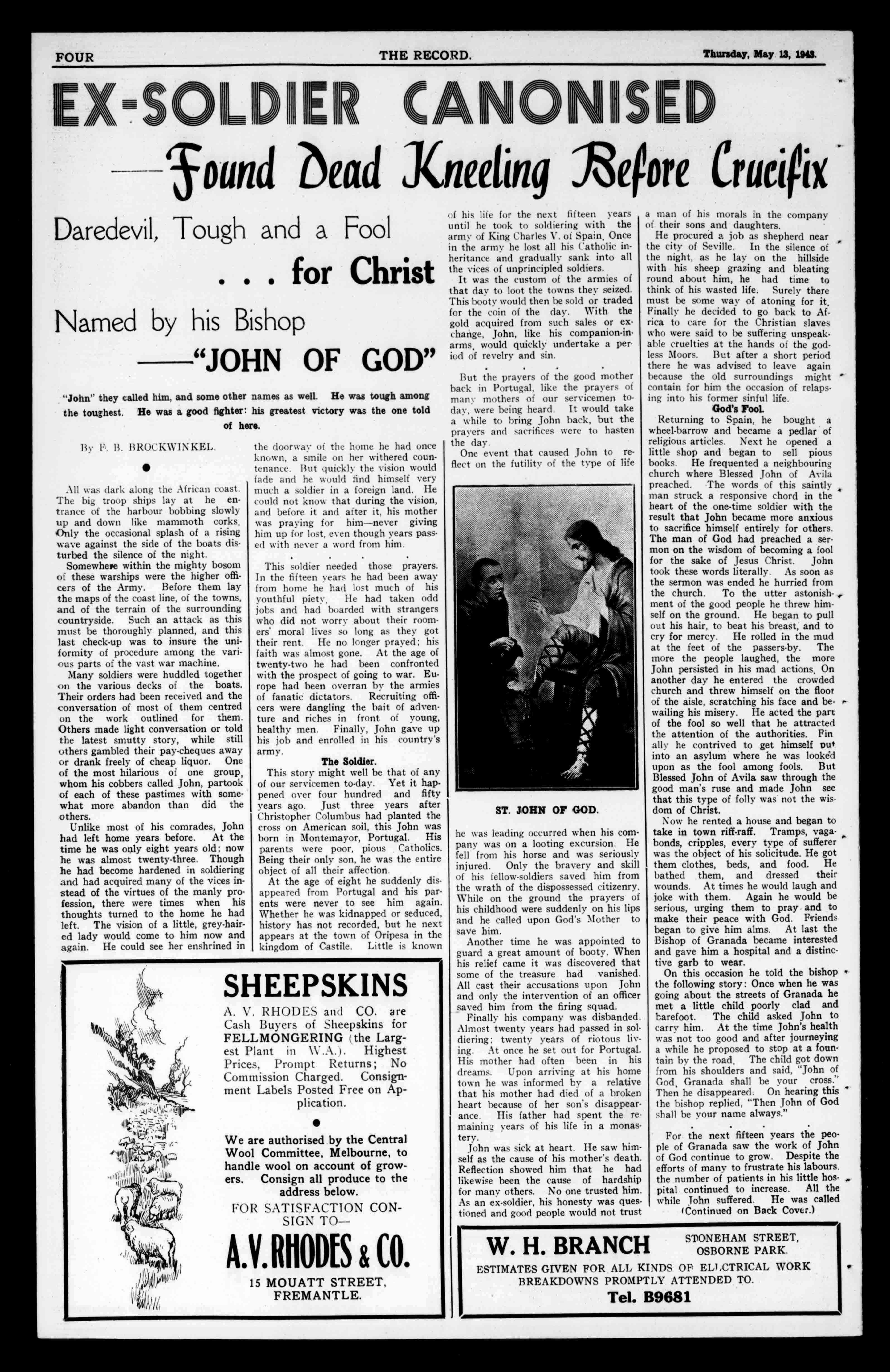 Thelifeofthissoldiersaintshould beaconsolationtothemotherswhose sonsarefightinginAfrica,NewGuinea, oronanybattlefield.Itmusthave beentheprayersofhisgoodmother whichtransformedhimfromasinner toasaint.ThelearnedAlbanButlerhassaidthattherearemoresoldiershonouredbytheChurchas Saintsthanfromanyotherstate,condition,orwalkoflife.Surelythis shouldbeaninspirationforthesoldier'sbaby-dayplaymatetobecome hisarmy-daypraymate,andperhaps themotherofasoldier-saint,