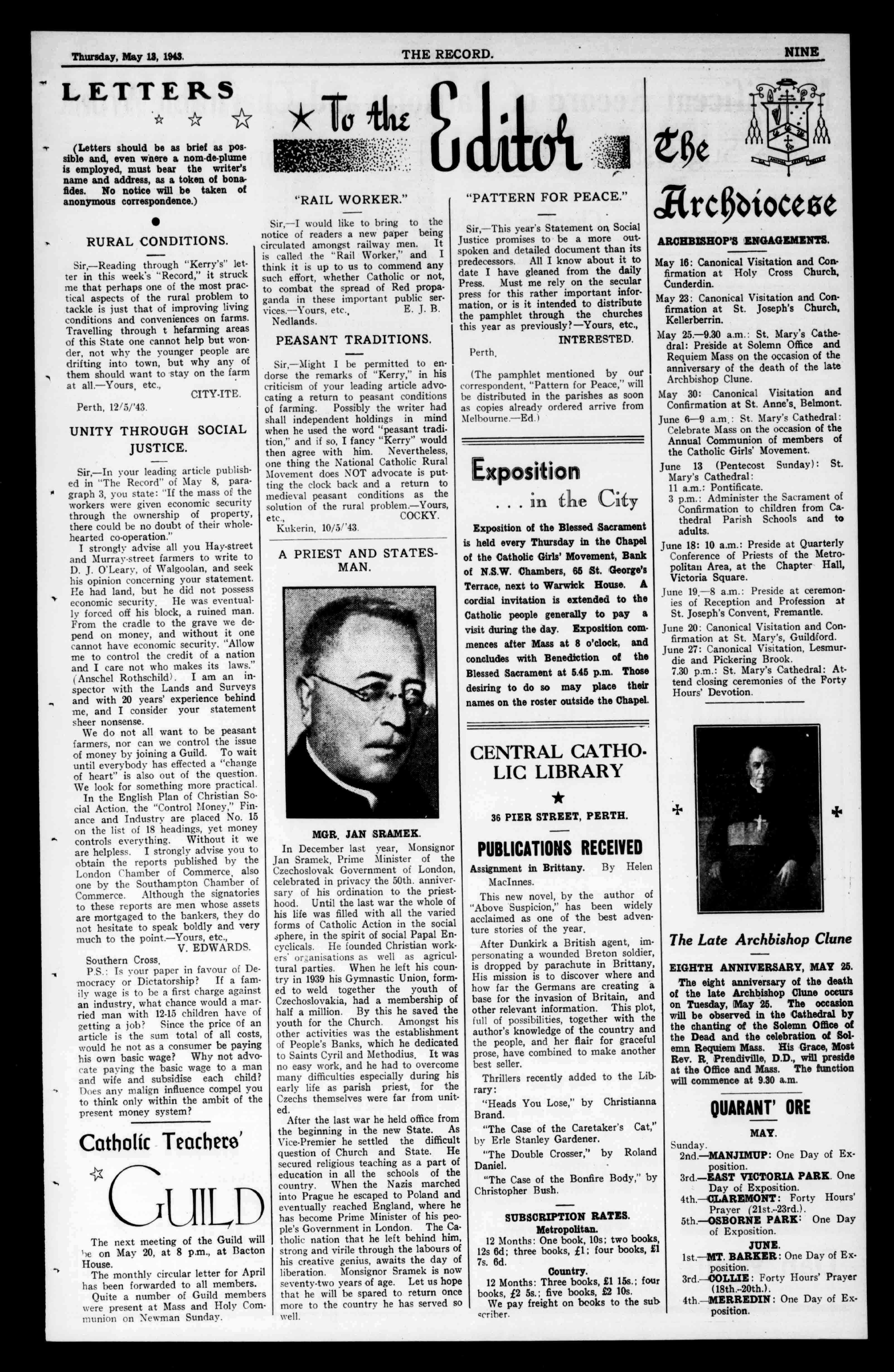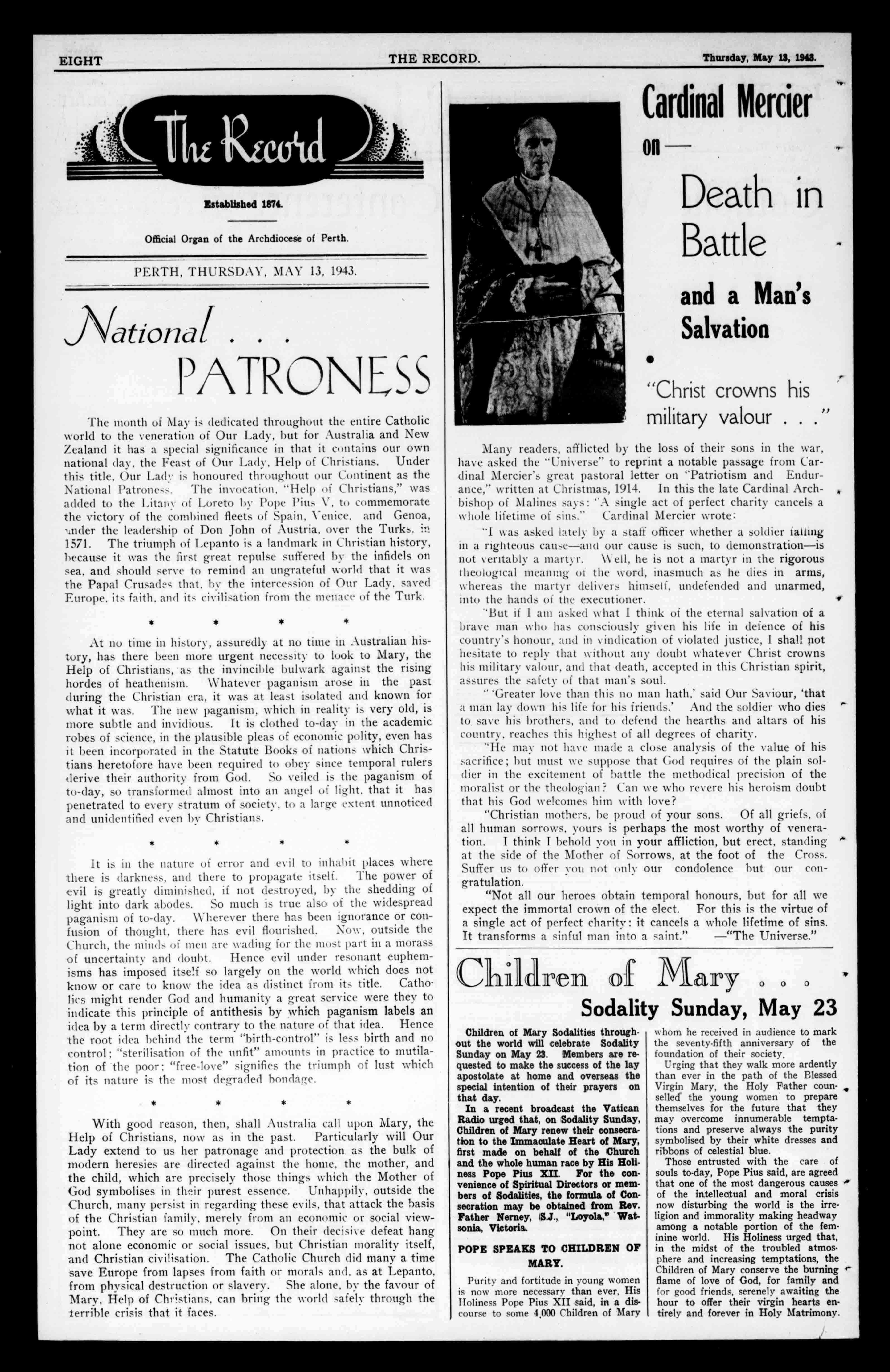 TWO THERECORD Thursday,May13,1643. *TheCatholicAnswer EVERYSUNDAYEVENINGAT7.15P.M. HEAVEN *ByFatherLalor STATIONS 6PR-6TZ HISTORY -TOPICALQUESTIONS - PHILOSOPHY-SOCIALJUSTICE APOLOGETICS-THECHURCHINTHEMODERNWORLD THEOLOGY