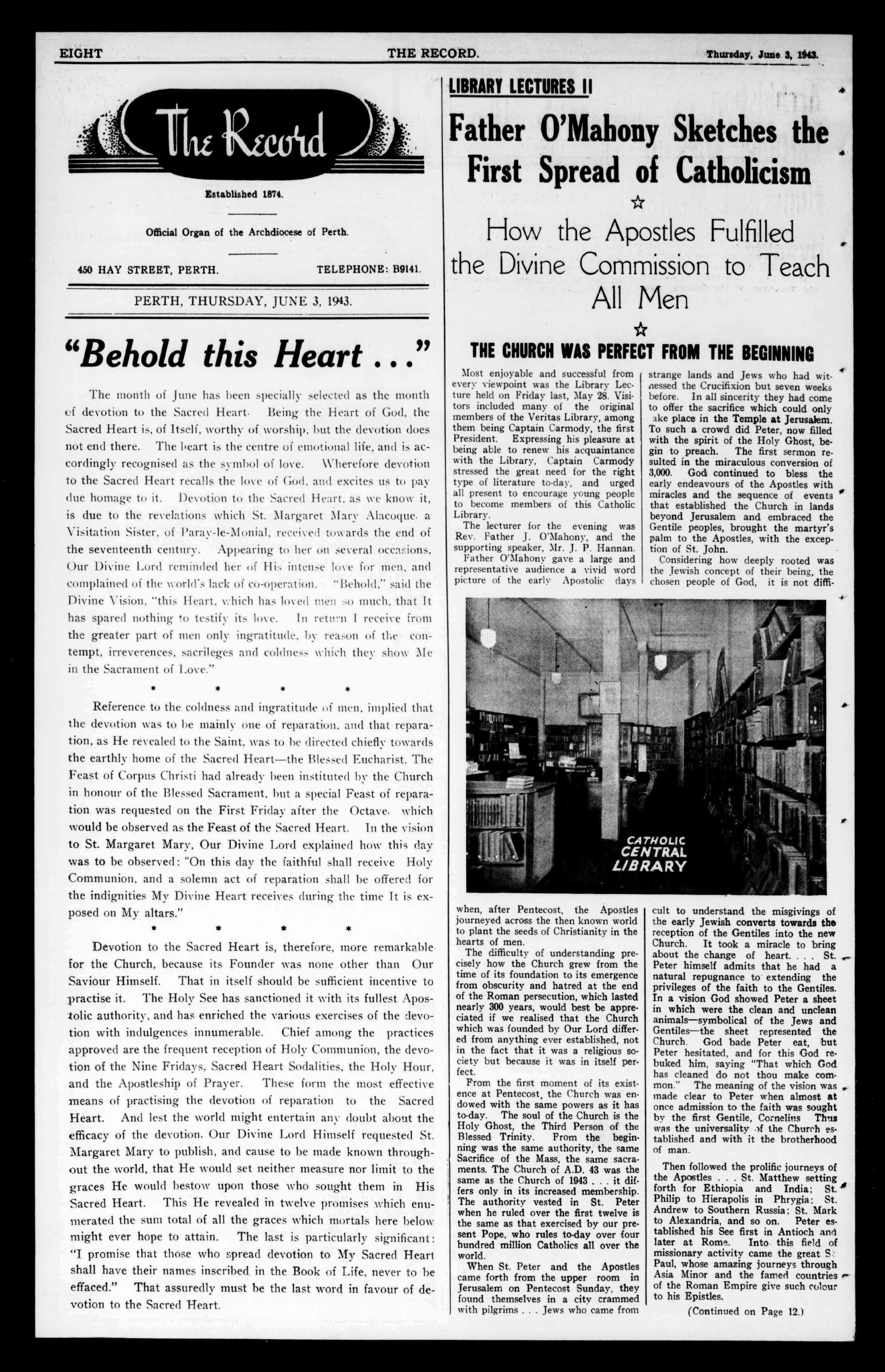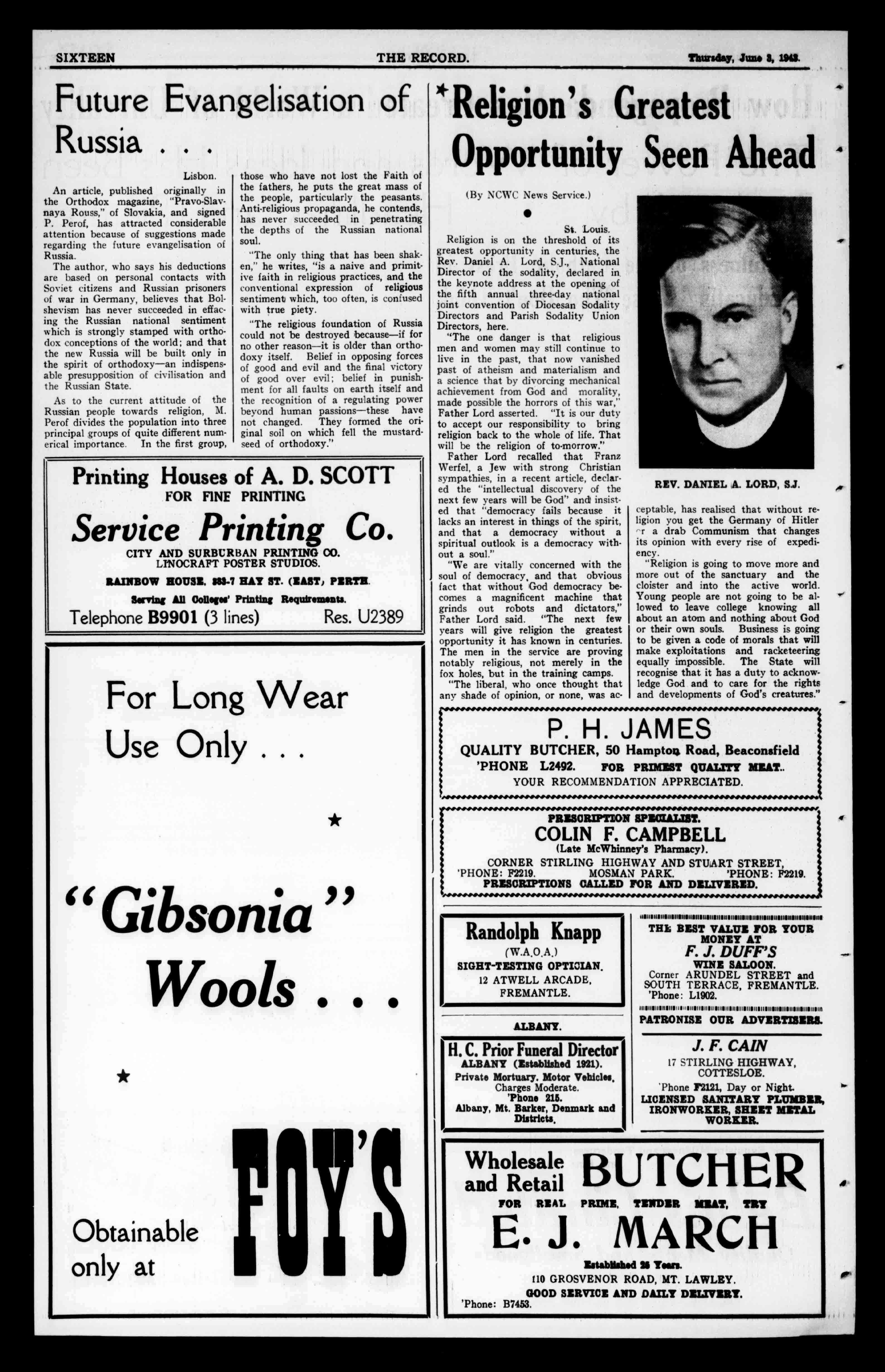 TWO THERECORD. Thursday,June3,1943. CEVERYSUNDAYEVENINGAT7.15P.M.