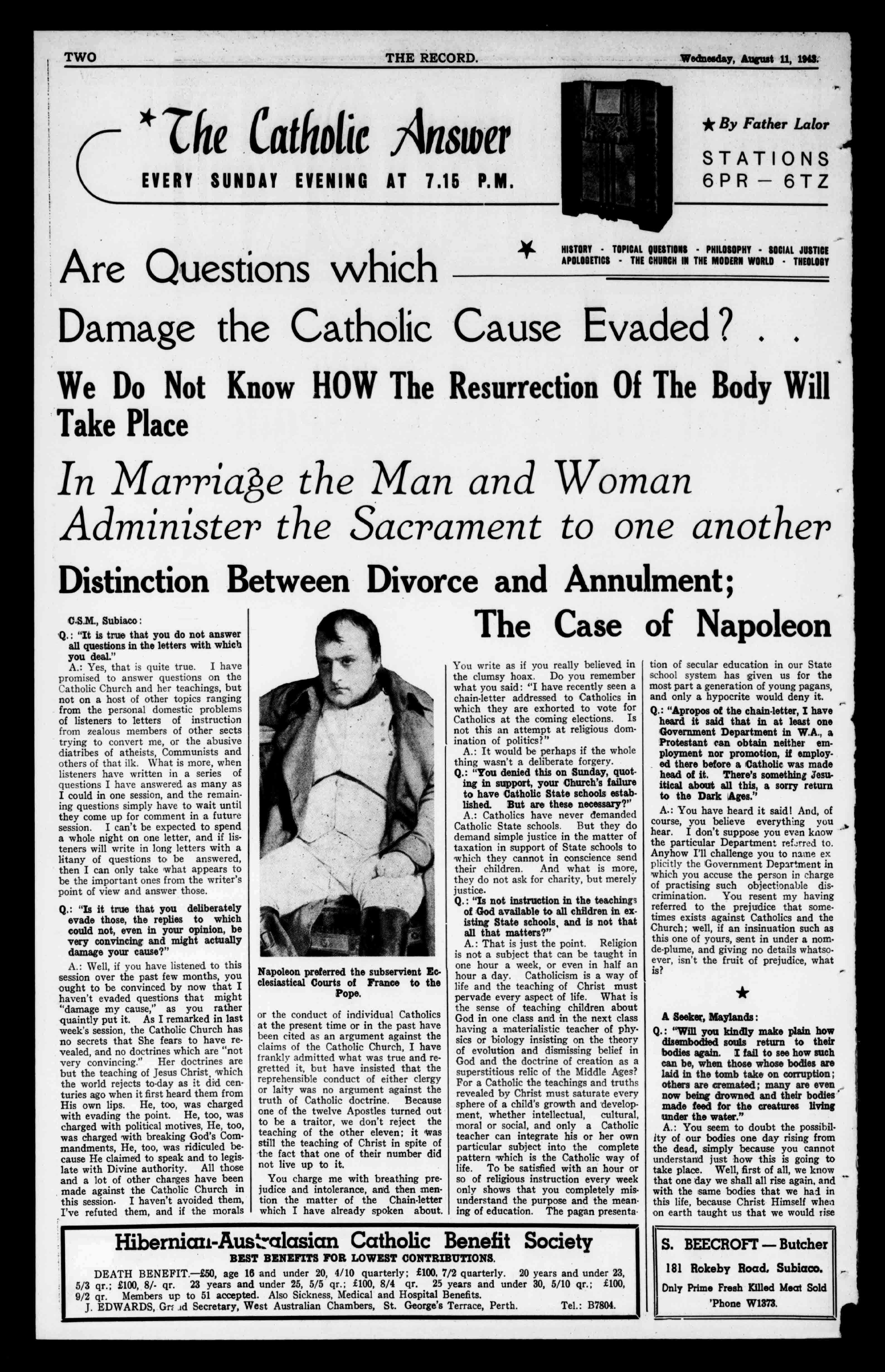 Q.:"YoudeniedthisonSunday,quotquestionsIhaveansweredasmanyas t inginsupport,yourChurch'sfailure Icouldinonesession,andtheremain- tohaveCatholicStateschoolsestabingquestionssimplyhavetowaituntil lished.Butarethesenecessary?" theycomeupforcommentinafutu"e