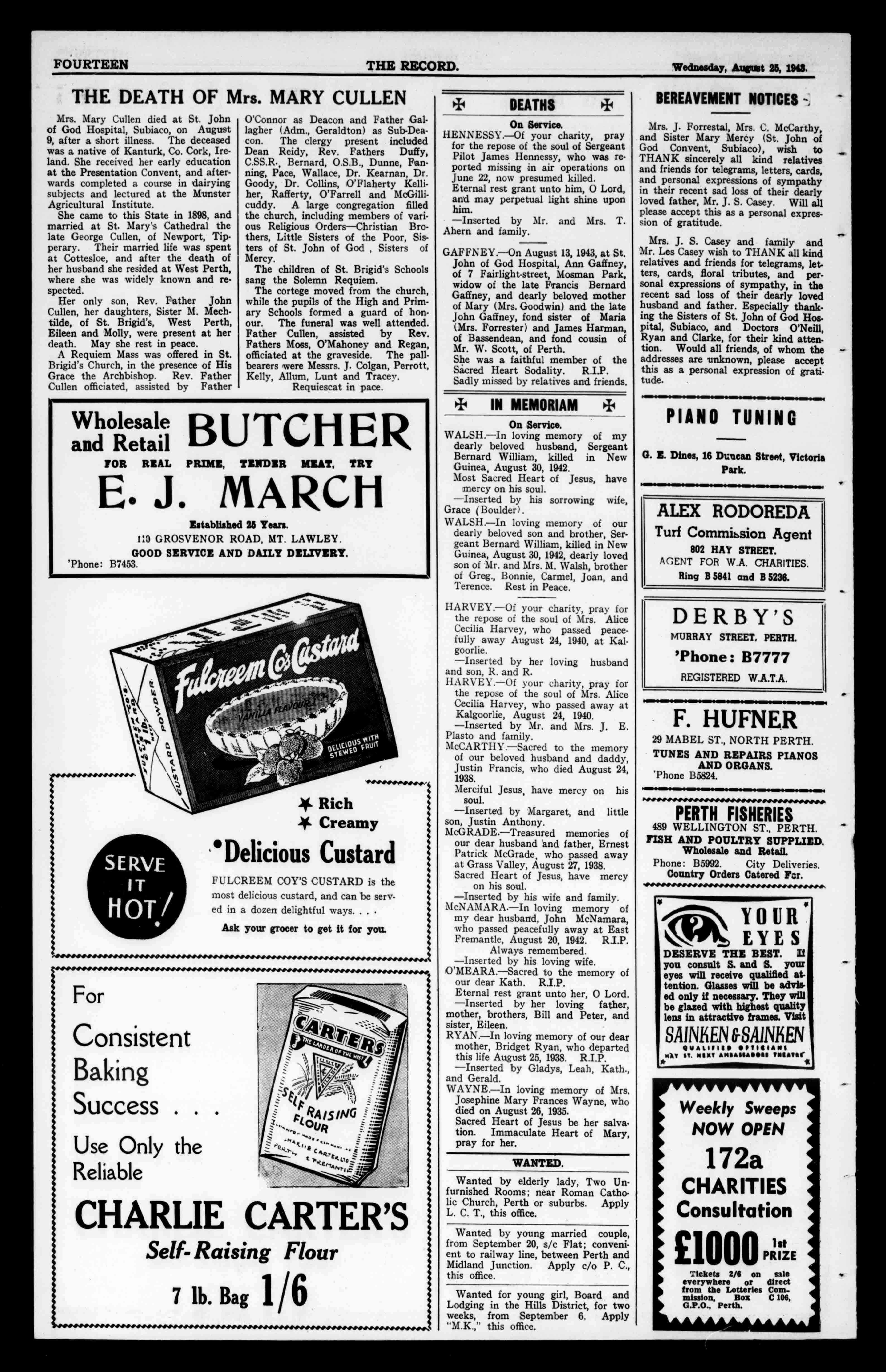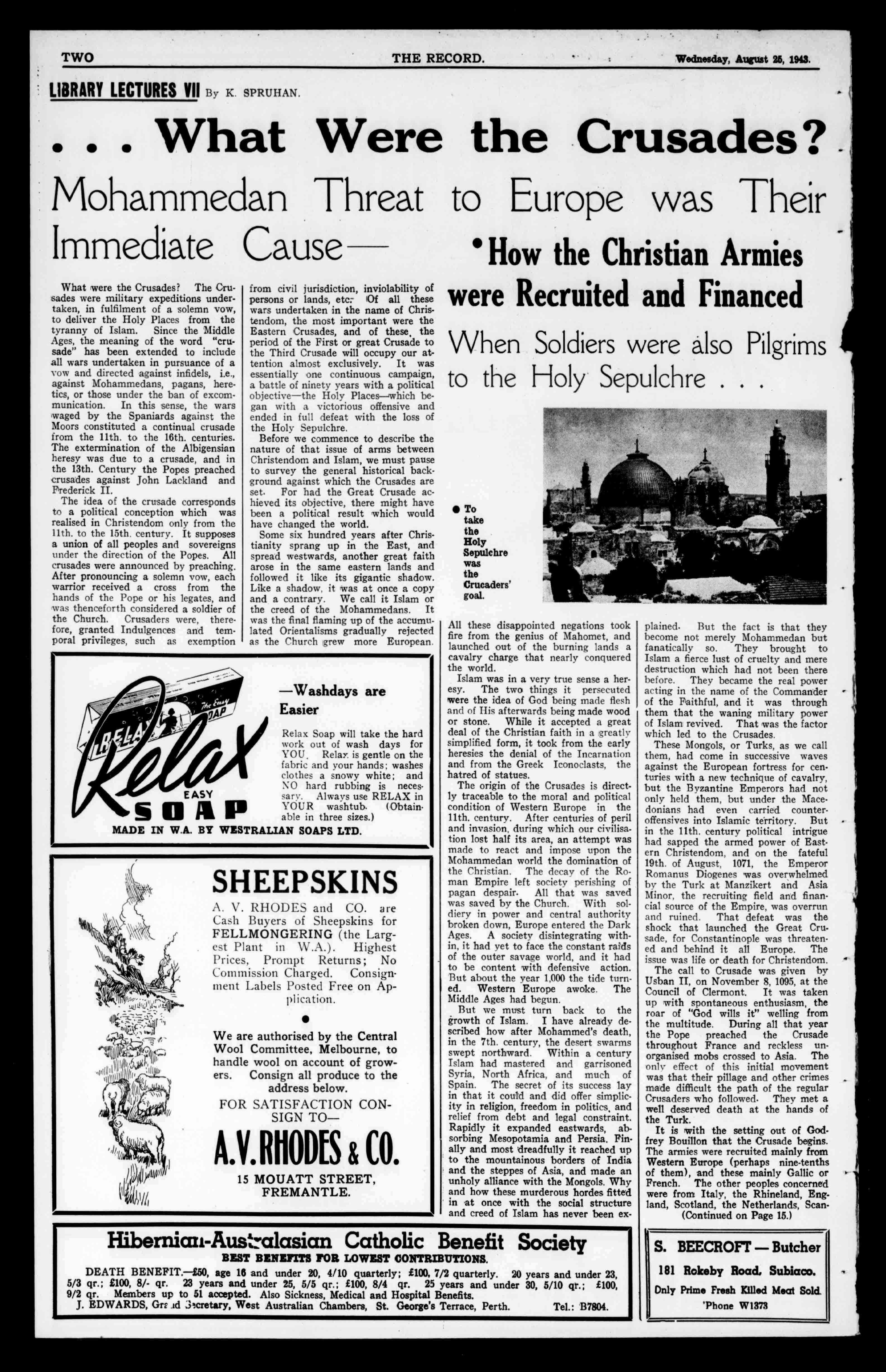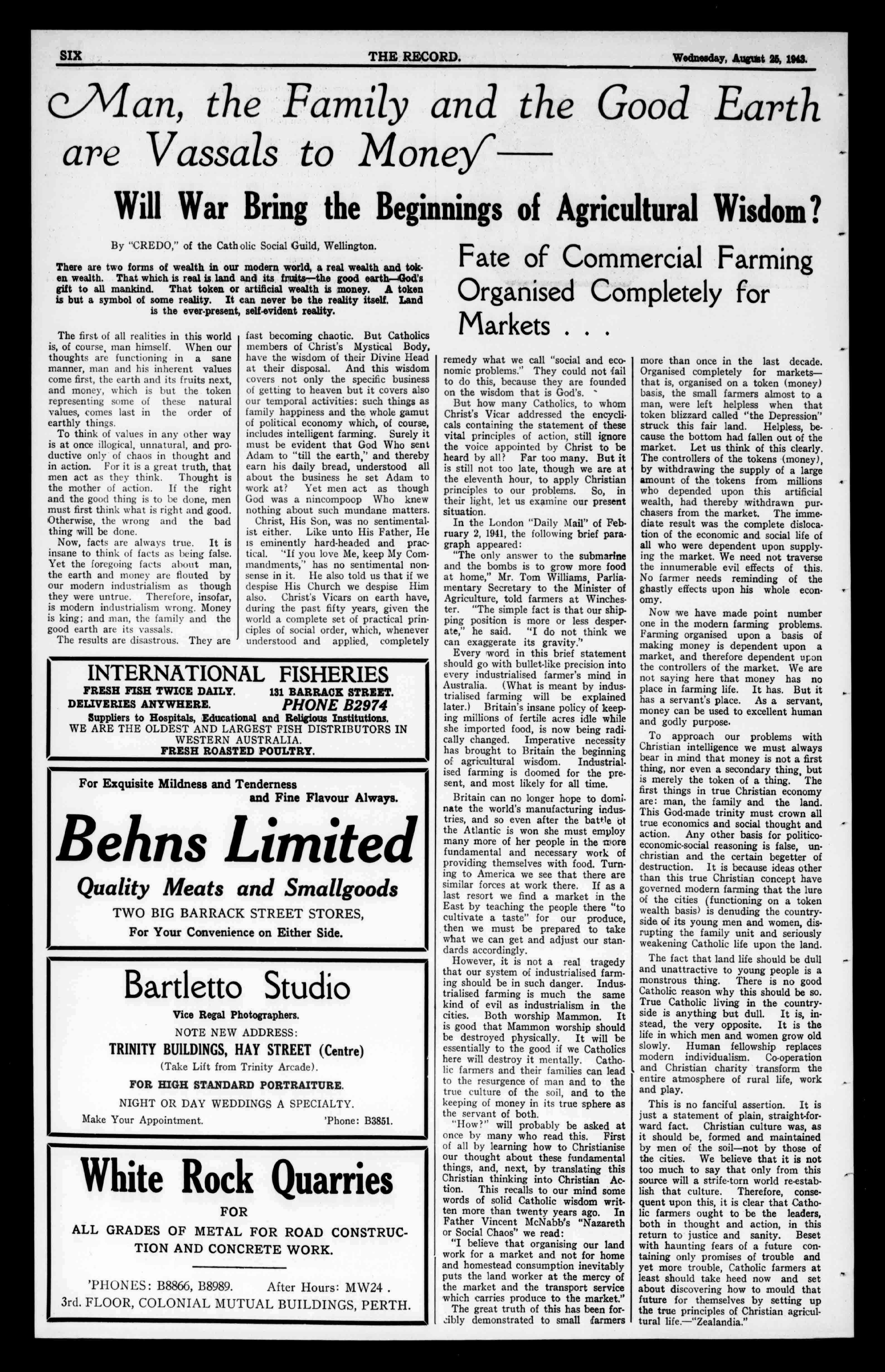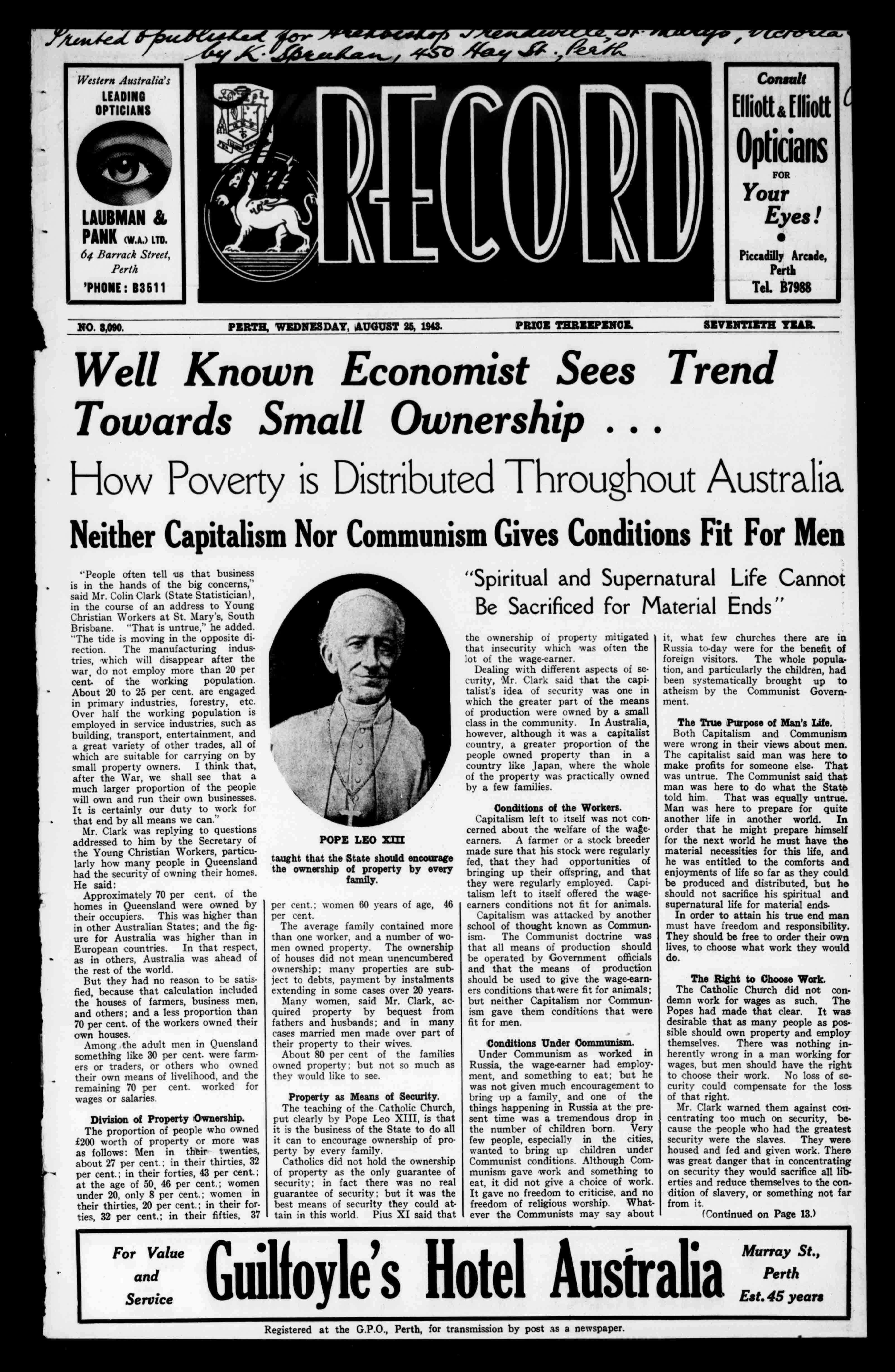 Telephones:B168;1.675. CONSULT withour ADVERTISERS forallyour REQUIREMENTS theRecord OfficialOrganoftheArchdioceseofPerth ESTABLISHED1874 CHMA.GLASSandPLATED WAREIMPORTERS. OTLEYPLACE,OffMURRAY STREET(RocaSavoyHotel) Convents,Colleges,Institutions andSchoolsSpeciallyCateredfor. PriceListsandCatalogueon Application. PhoneB9651. Kelly&Rodoreda LateofJOHNDYNON&CO.
