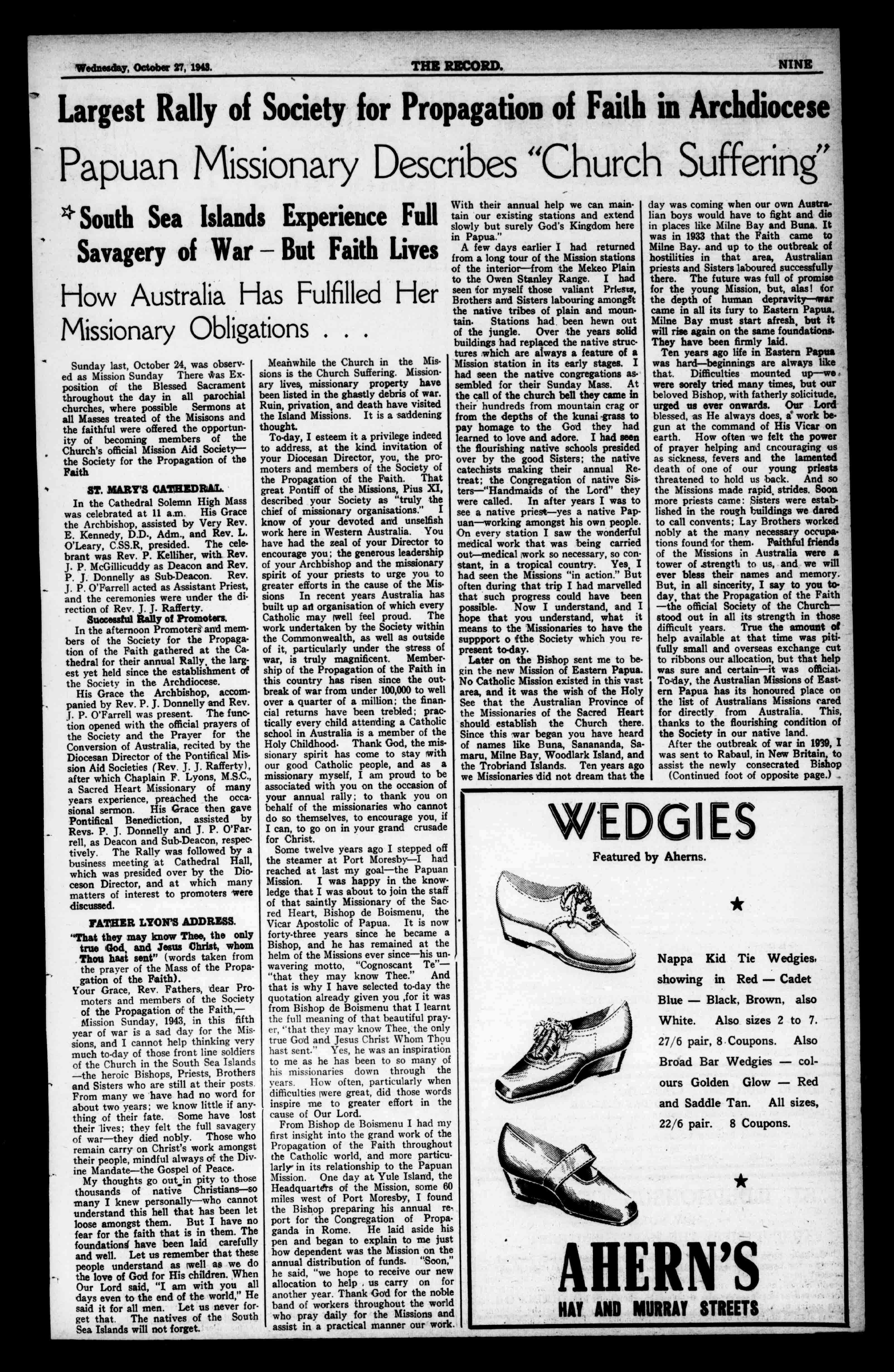 Furtheyhadbeenchallengedto"show theirworks.''Faithwithoutworksis dead;""bytheirworksyoushallknow them."SowasborntheSt.Vincent dePaulSociety. BacktoLyonsin1836,andprofessing CommercialLaw,atthesametime foundingaConferenceoftheSt.VincentdePaulSocietyanddoingallin hispowerfortheSocietyforthePropagationoftheFaith.(HowGodblesses thosewhohelptheForeignMissions! Weseeitoverandoveragaininthe historyofindividualsandnationsand Orders.Missionaryactivityseemsa veryfairindexofthehealthofthe Churchinanyage.Godwillnotbe outdoneingenerosity.Iknowthat weAustralianJesuitsareanxiously awaitingthedaywhen,likethelarger Provinces,weshallhaveourown foreignmission.)
