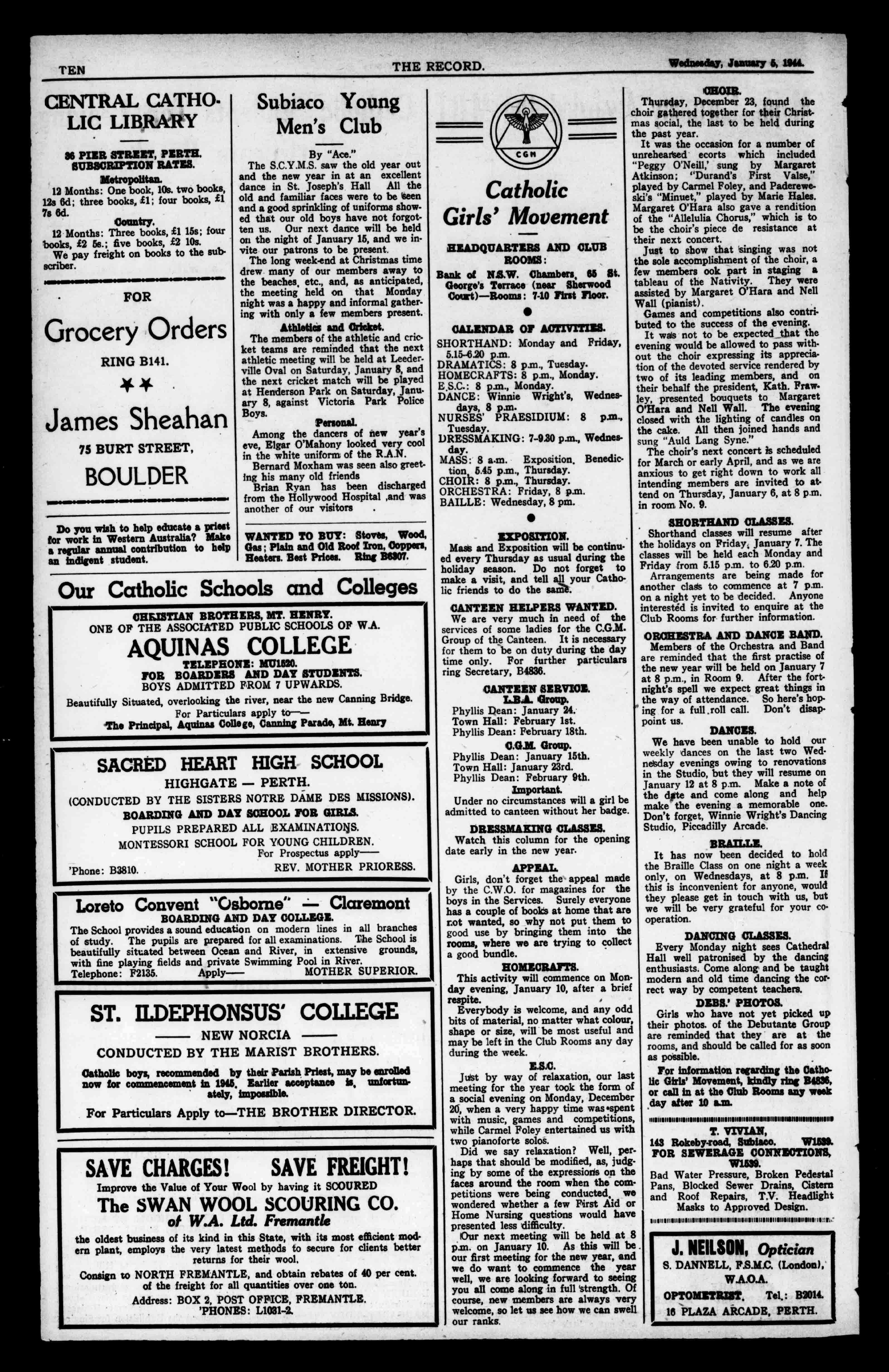 otitAtit./1111=.!r _ Consult Elliott&Elliott Opticians PiccadillyArcade, Perth Td.B7988 JOHNELLIOTT, Manager. (IxIdaristBrothers' Student). Consult ElliottaElliott Opticians Your Eyes! PiccadillyArcade, Perth Tel.B7988 NO.RM. PERTH,WEDNESDAY,JANUARY5,1944. PRICETER1..:PRE011. SEVENTY-FIRSTYEAR.