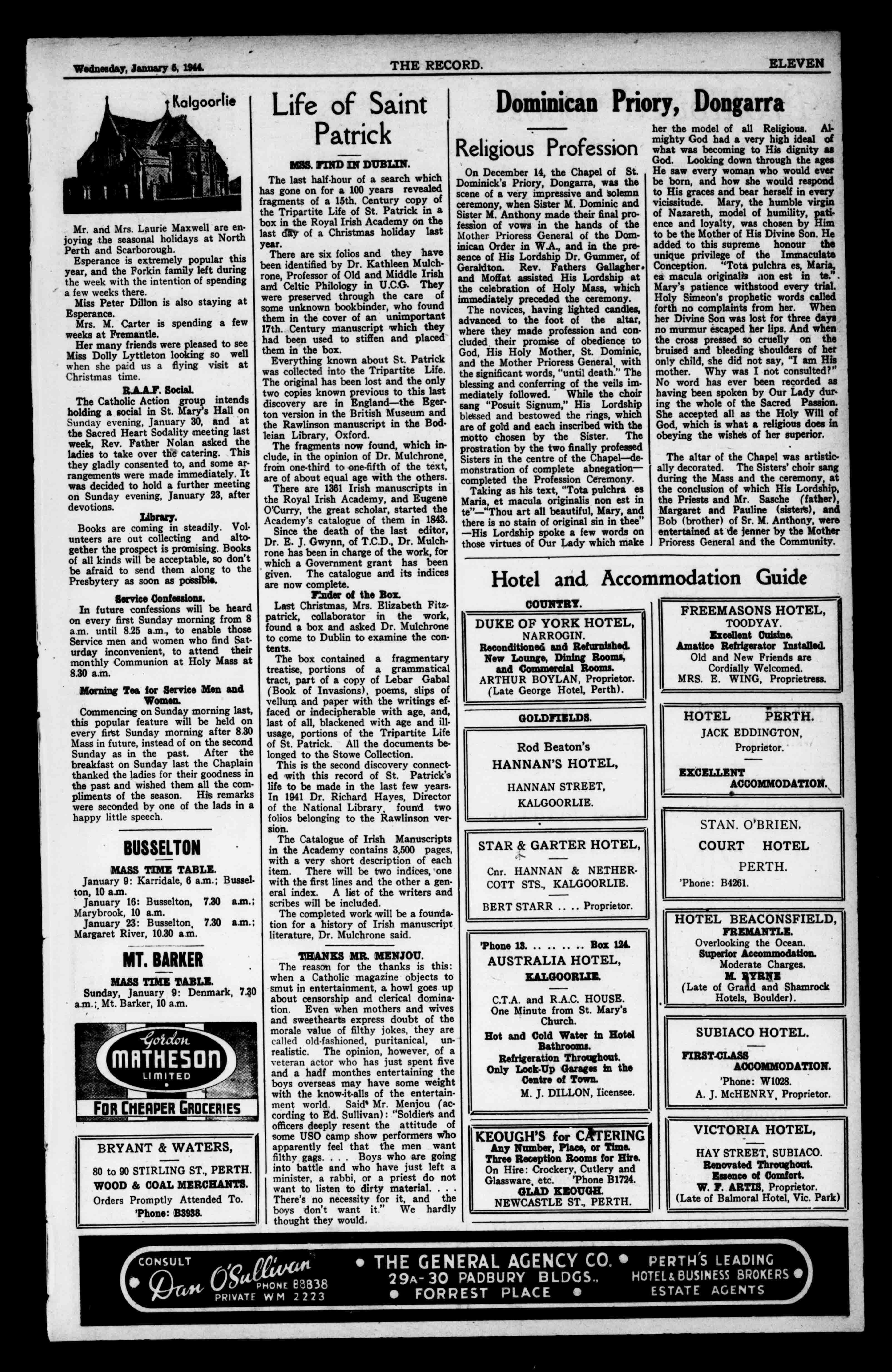 OfficialOrganoftheArchdioceseofPerth ESTABLISHED1874 CHINA,GLASSandPLATED WAREIMPORTERS. OTLEYPLACE,OffMURRAY STREET(RearSavoyHotel) Convents,Colleges,Institutions andSchoolsSpeciallyCateredfor. PriceListsandCatalogueon Application. Phonen8151. Kelly&Rodoreda LateofJOHNDYNON&CO.