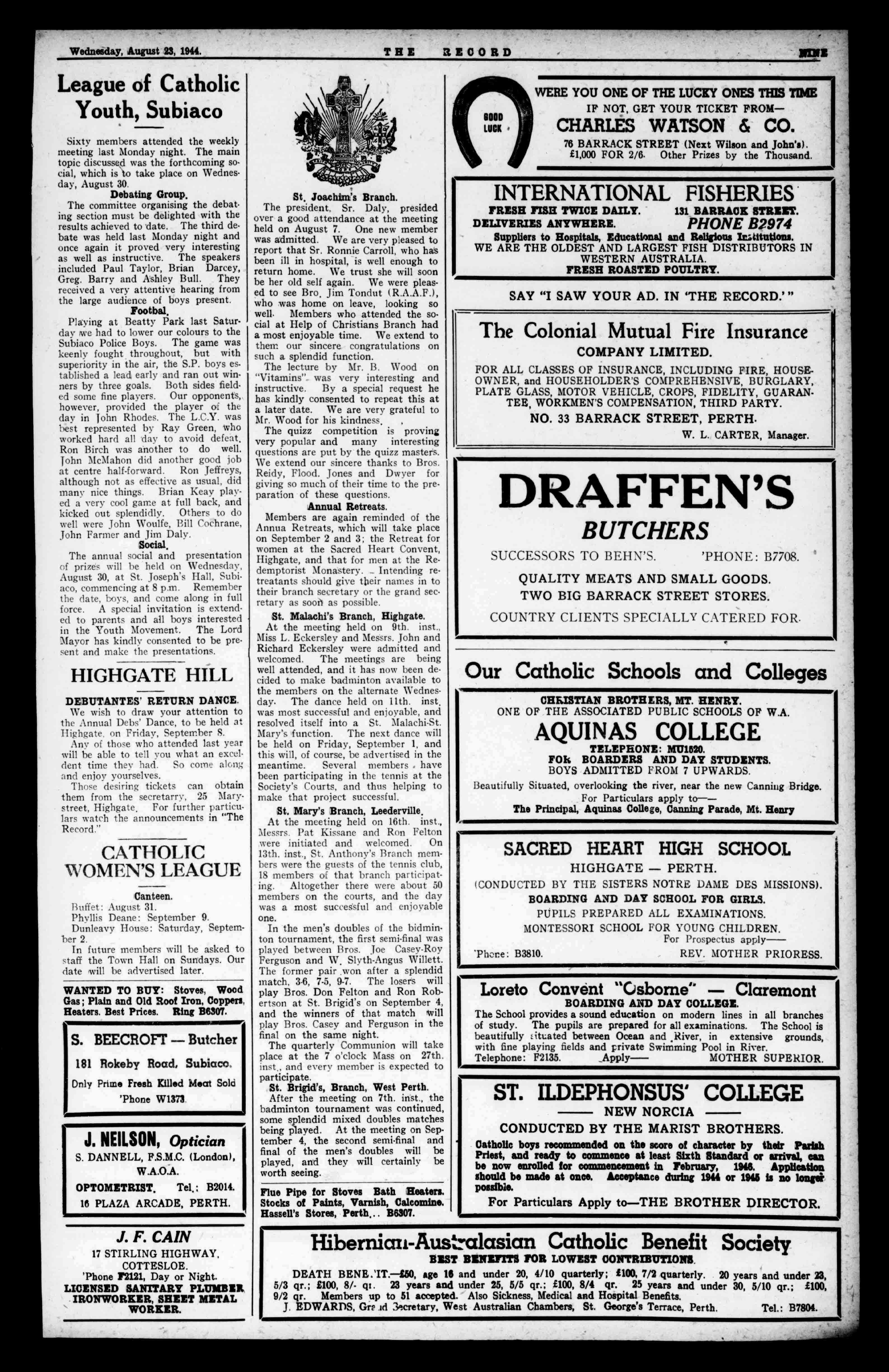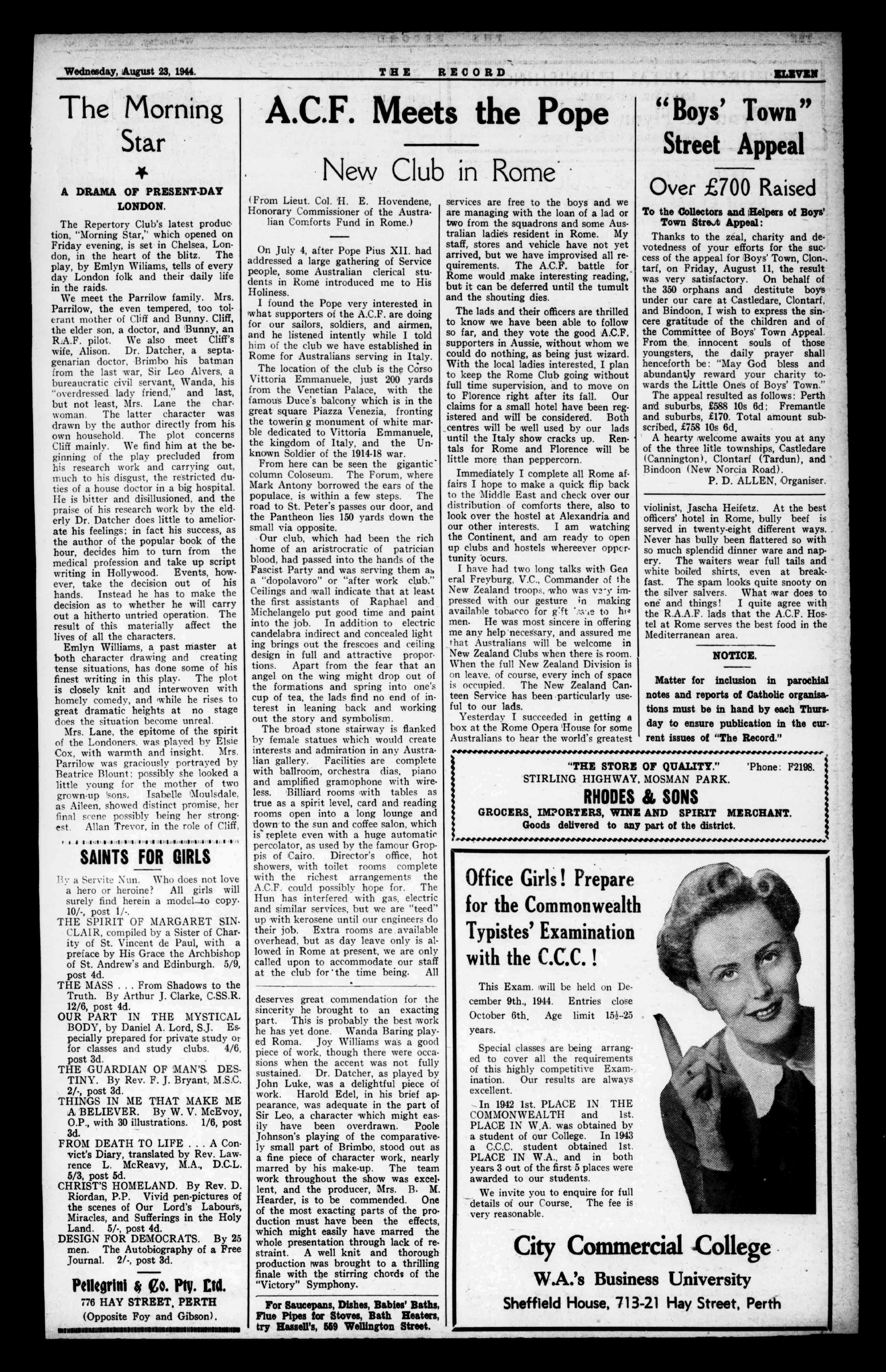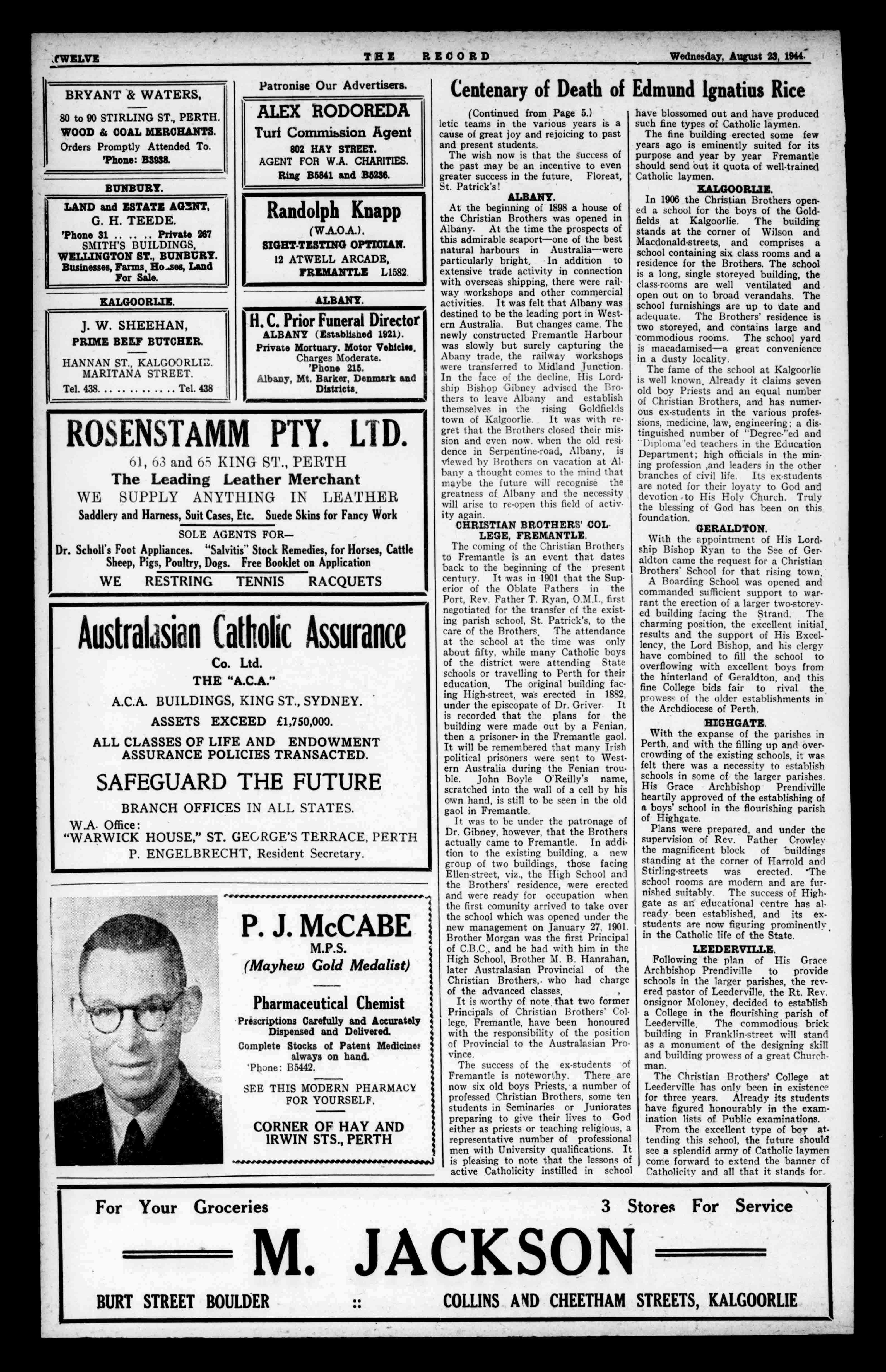 Telephones:B168;E676. CONSULT withour ADVERTISERS forallyour REQUIREMENTS theRecord OfficialOrganoftheArchdioceseofPerth ESTABLISHED1874 CHINA.GLASSandPLATED WAREIMPORTERS. OTLEYPLACE,OffMURRAY STREET(RearSavoyHotel) Convents,Colleges,Institutions andSchoolsSpeciallyCateredfor. PriceListsandCatalogueon Application. PhoneB9651. Kelly&Rodoreda Lot.ofJOHNDYNON6CO.