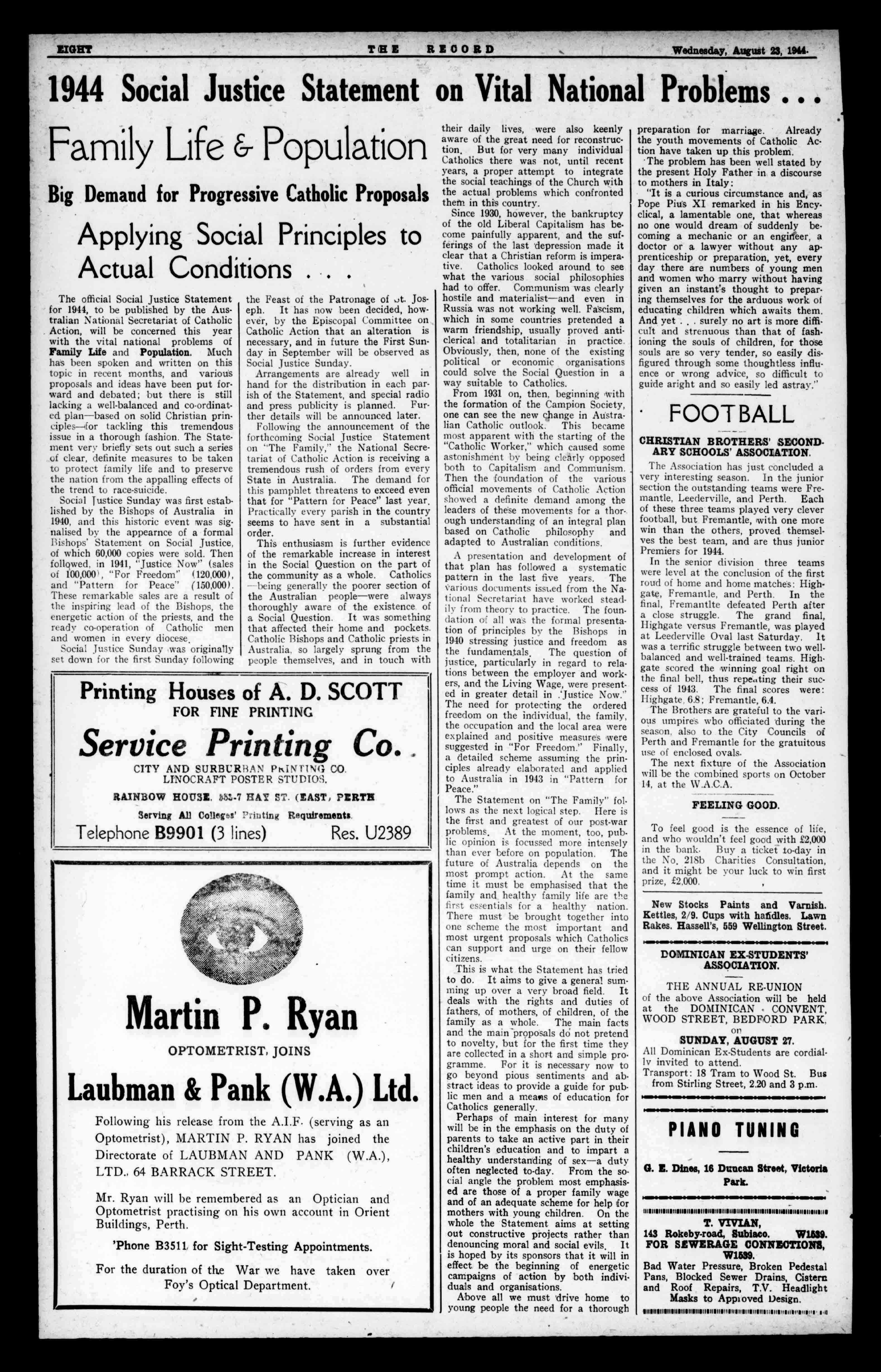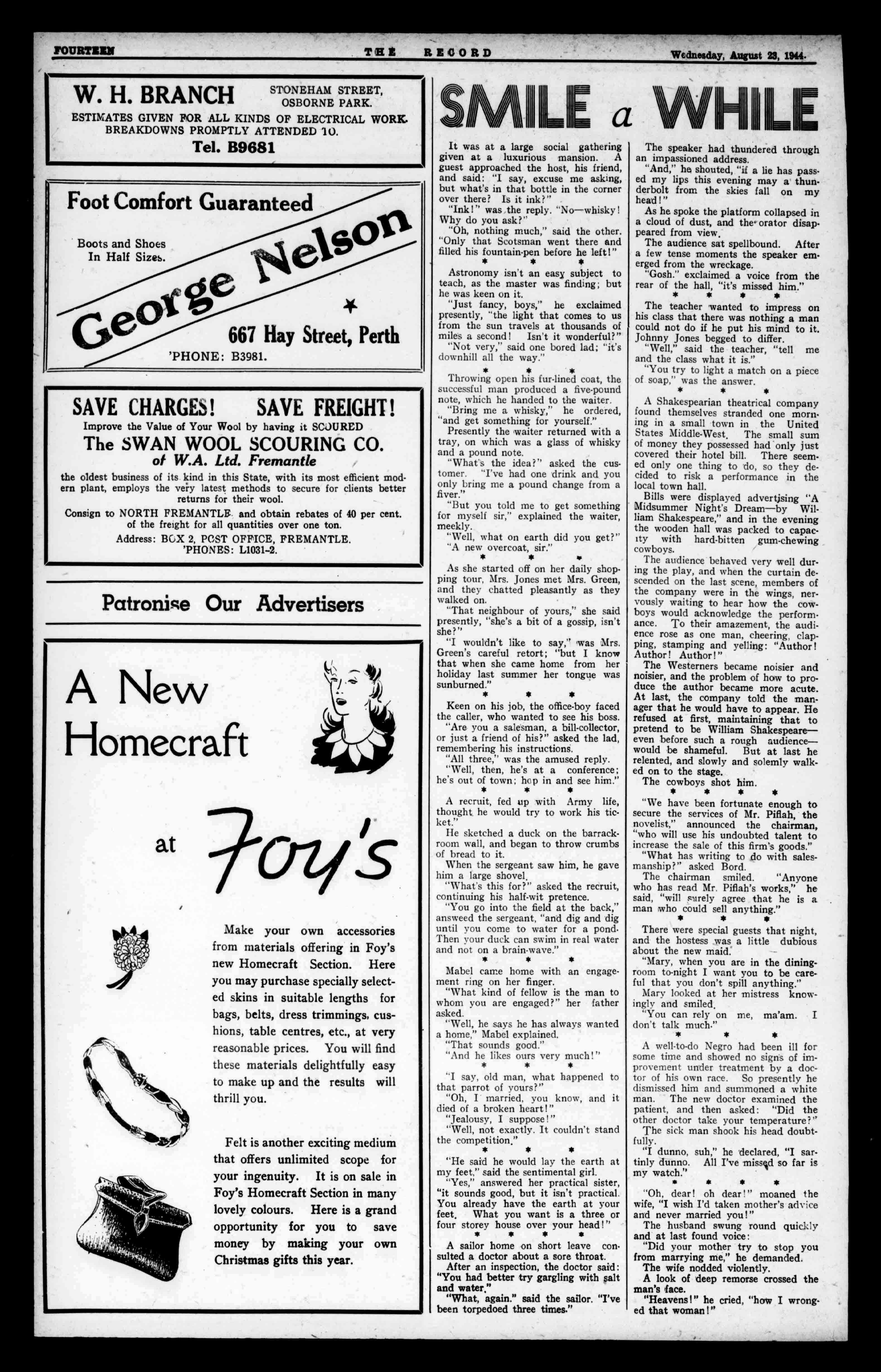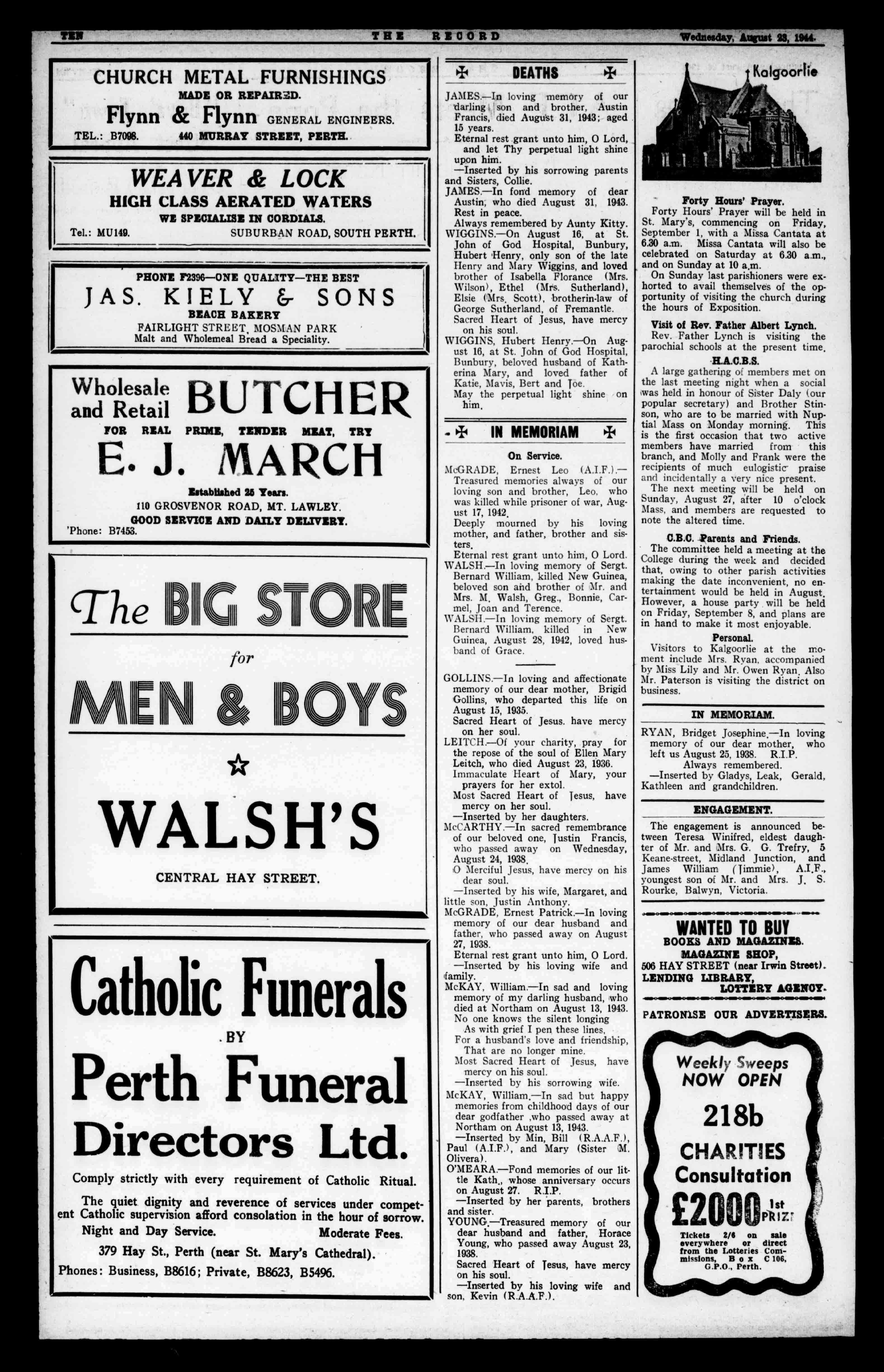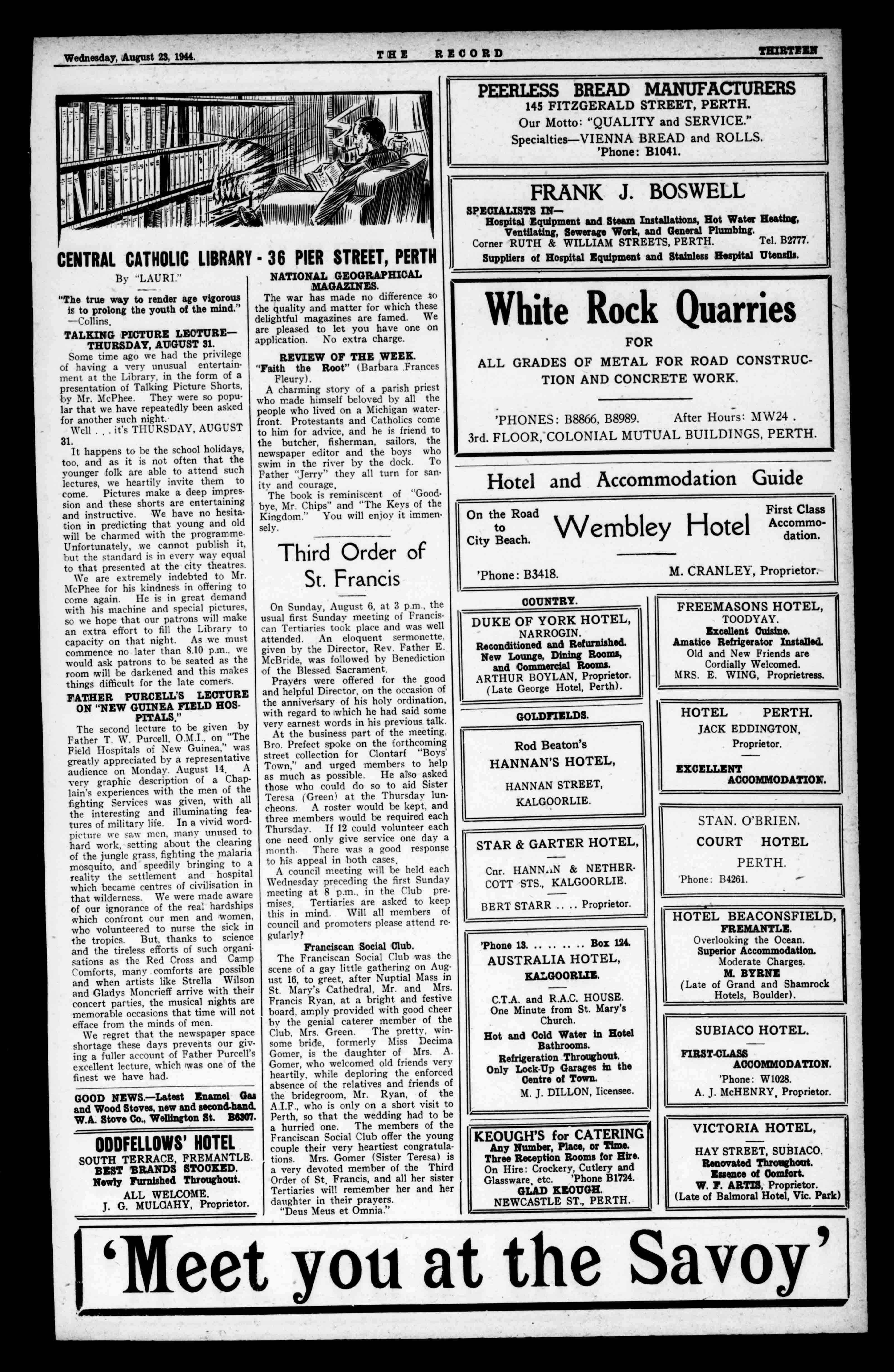 Telephones:B168;E676. CONSULT withour ADVERTISERS forallyour REQUIREMENTS theRecord OfficialOrganoftheArchdioceseofPerth ESTABLISHED1874 CHINA.GLASSandPLATED WAREIMPORTERS. OTLEYPLACE,OffMURRAY STREET(RearSavoyHotel) Convents,Colleges,Institutions andSchoolsSpeciallyCateredfor. PriceListsandCatalogueon Application. PhoneB9651. Kelly&Rodoreda Lot.ofJOHNDYNON6CO.