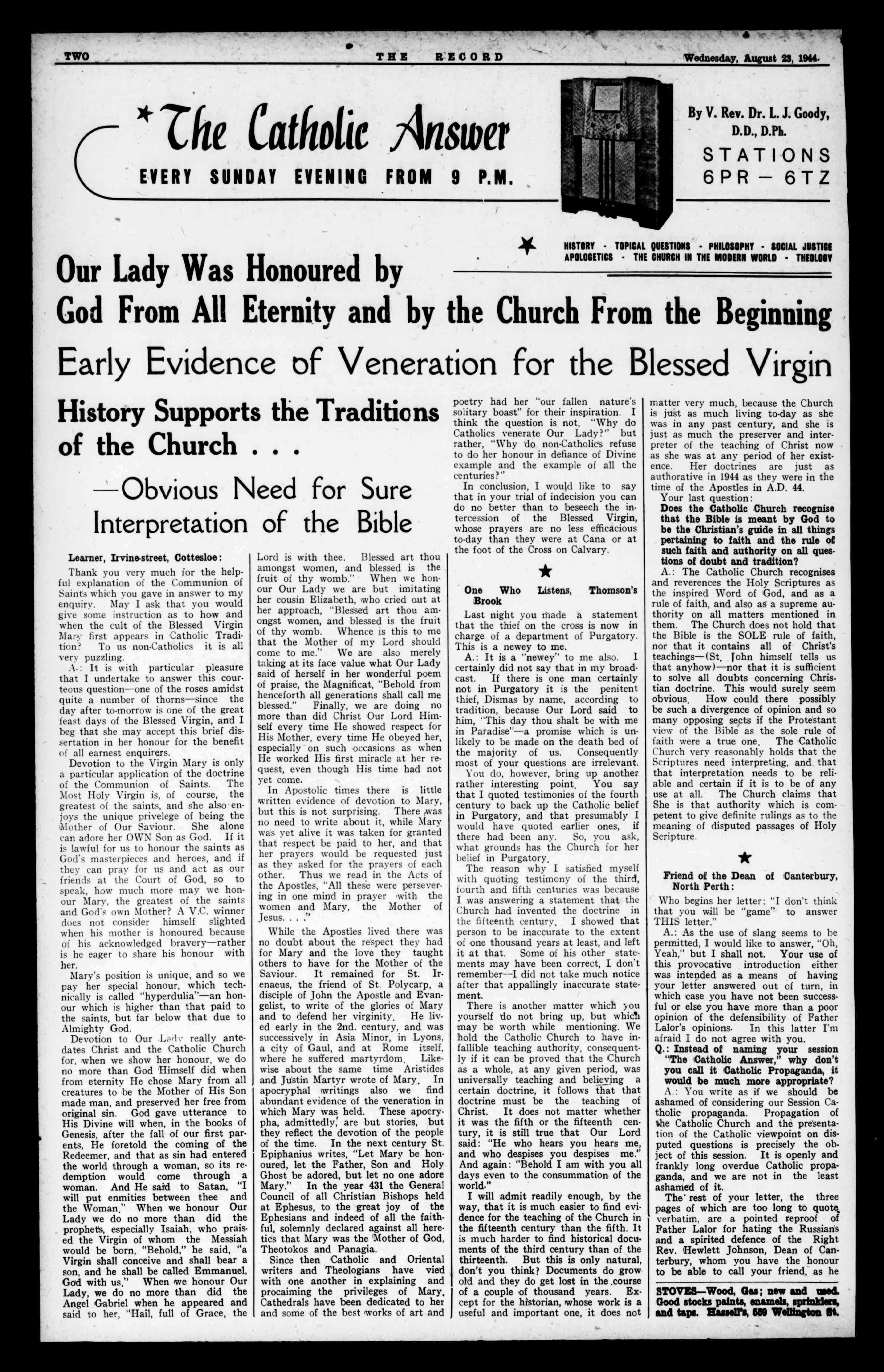 ByV.Rev.Dr.L.J.Goody, D.D.,D.Ph. STATIONS 6PR-6TZ * HISTORY- TOPICALQUESTIONS PHILOSOPHY SOCIALJUSTICE APOLOGETICS THECHURCHINTHEMODERNWORLD-THEOLOIN