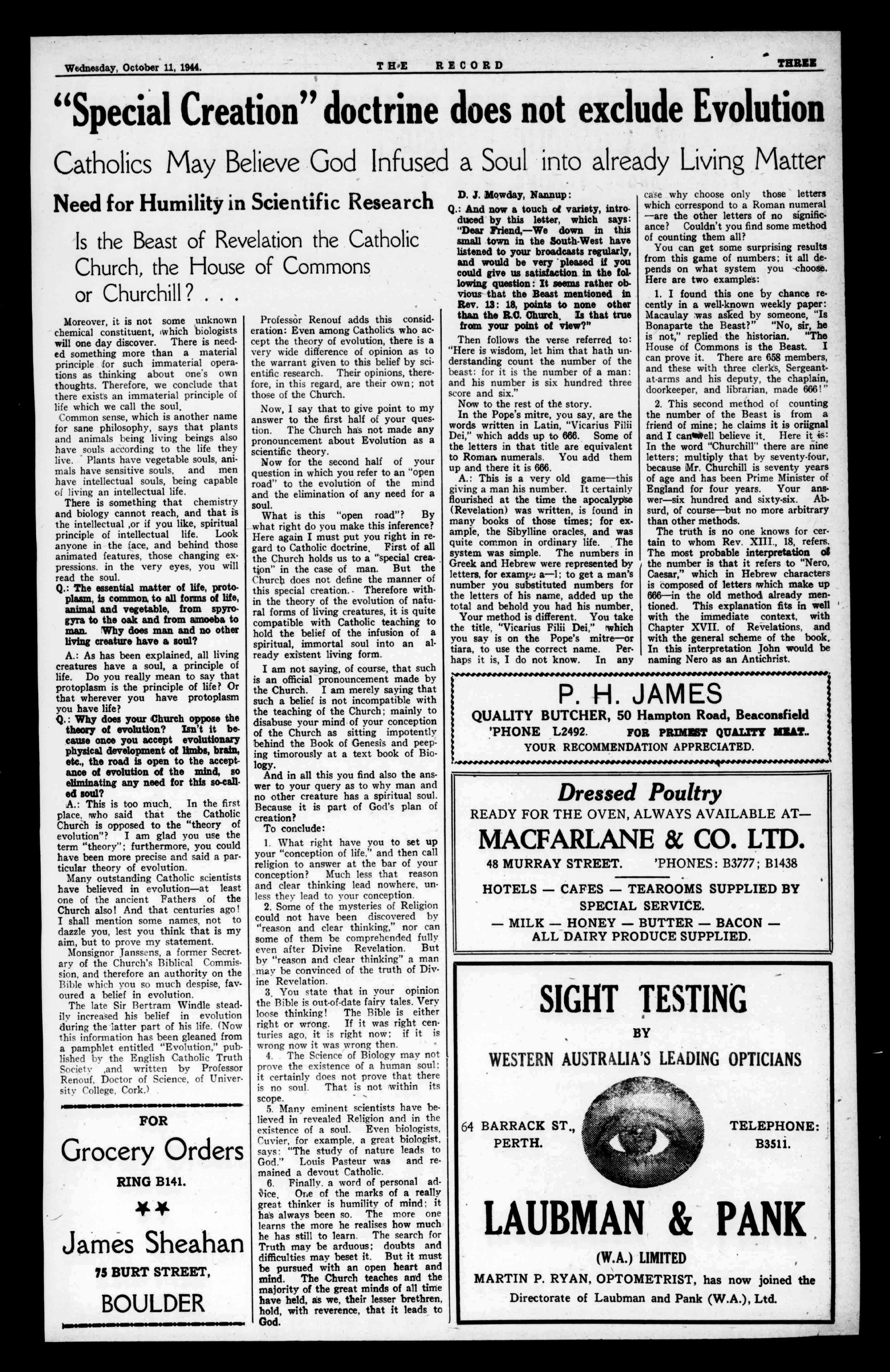 ProlessOrRenoufaddsthisconsideration:EvenamongCatholicswhoacceptthetheoryofevolution,thereisa verywidedifferenceofopinionasto thewarrantgiventothisbeliefbyscientificresearch.Theiropinions,therefore,inthisregard,aretheirown;not thoseoftheChurch.