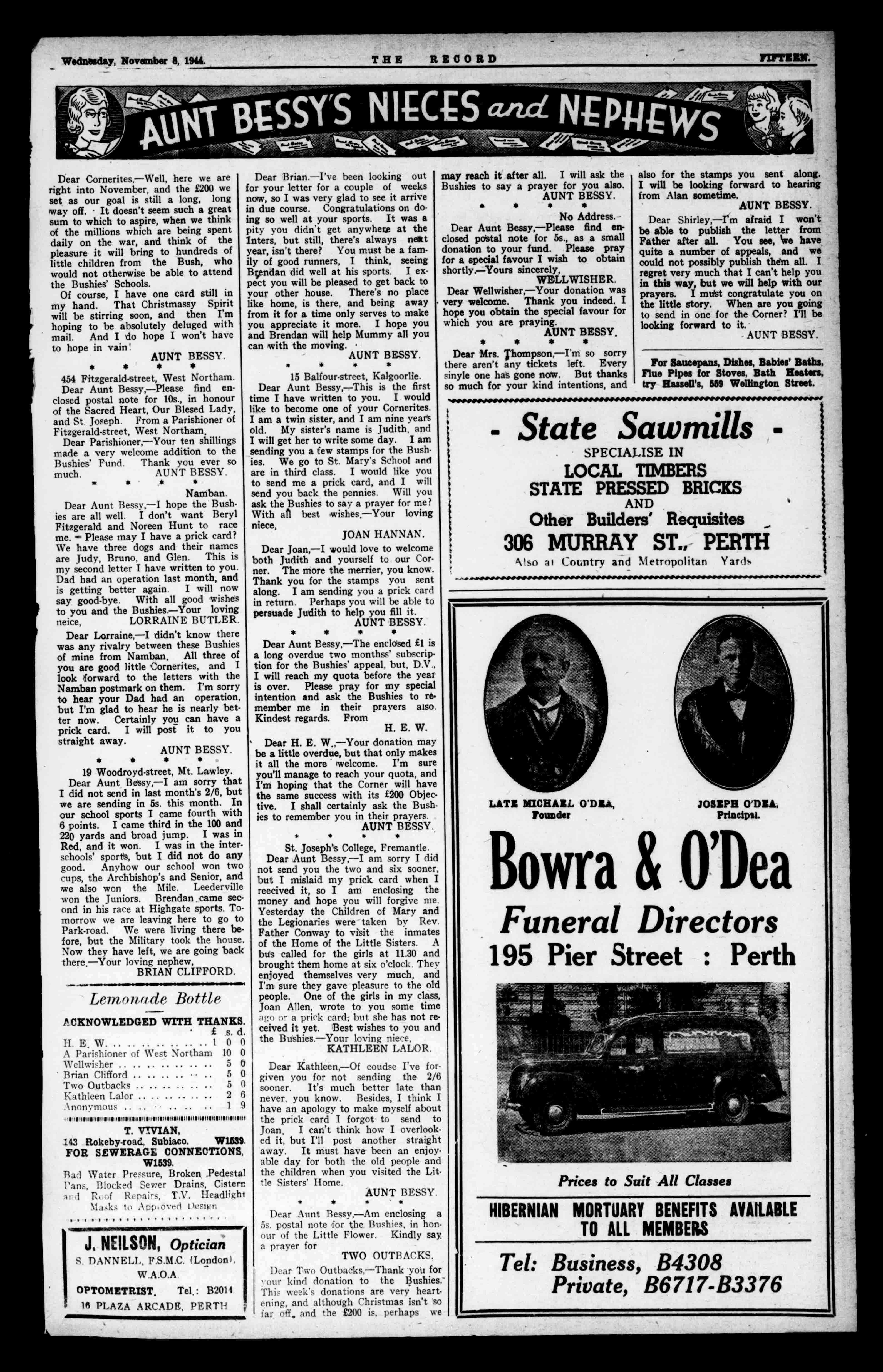 -StateSawmillsSPECIALISEIN LOCALTIMBERS STATEPRESSEDBRICKS AND OtherBuilders'Requisites 306MURRAYST.,PERTH (\1st) 1:cit.intryandMetropolitanYard, LATZMICHAILO'DZA, Founder JOSZPHO'DZA, Principal. Bowra&O'Dea FuneralDirectors 195PierStreet:Perth PricestoSuitAllClasses HIBERNIANMORTUARYBENEFITSAVAILABLE TOALLMEMBERS Tel:Business,B4308 Private,B6717-B3376