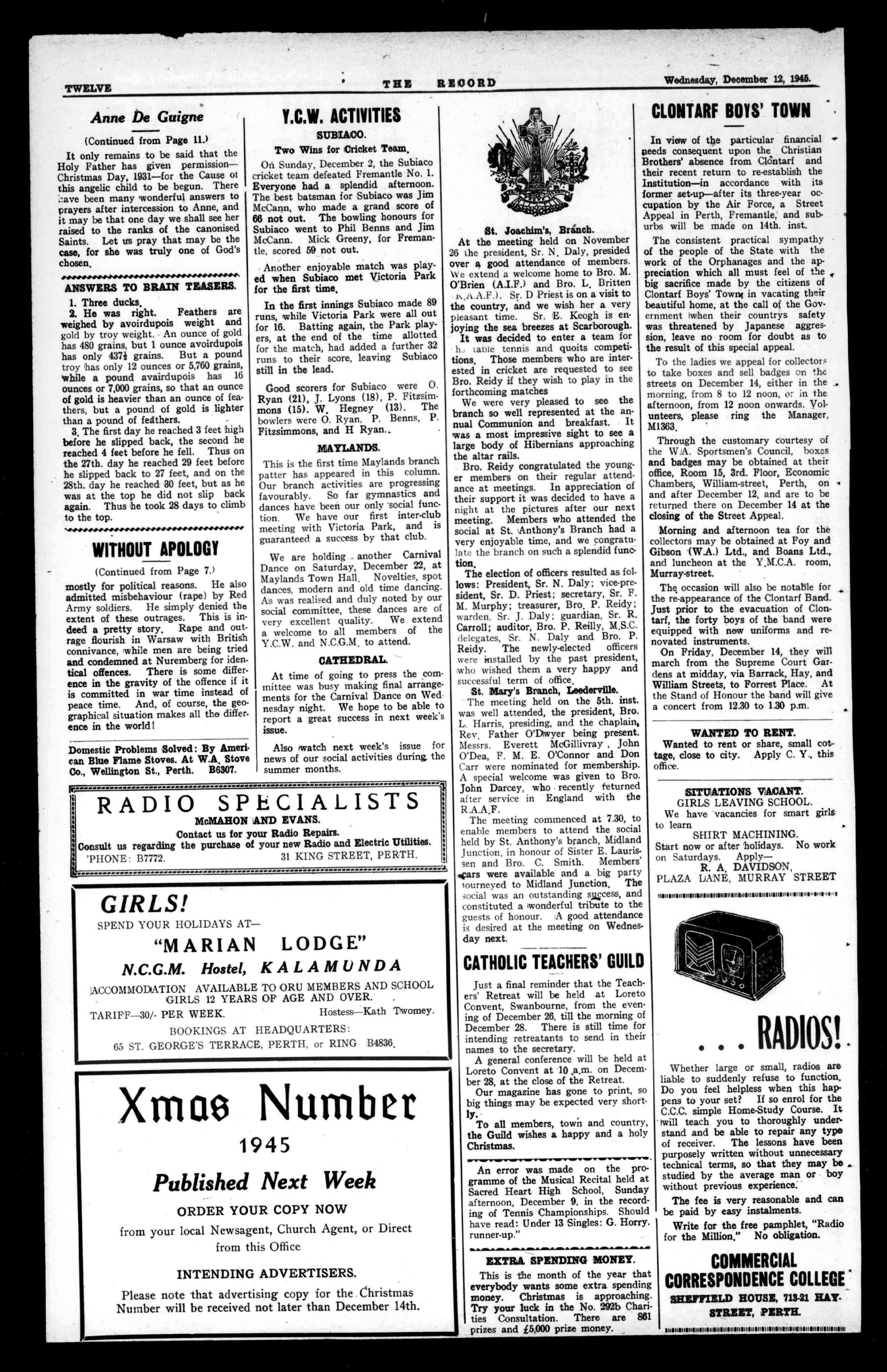 CatholicboysrecommendedonthescoreofcharacterbytheirParish Priest,andreadytocommenceatleastSixthStandardorarrival,can benowenrolledforcommencementinFebruary,1946.Application shouldbemadeatonce.Acceptanceduring1945isnolongerpossible. ForParticularsApplyto-THEBROTHERDIRECTOR.