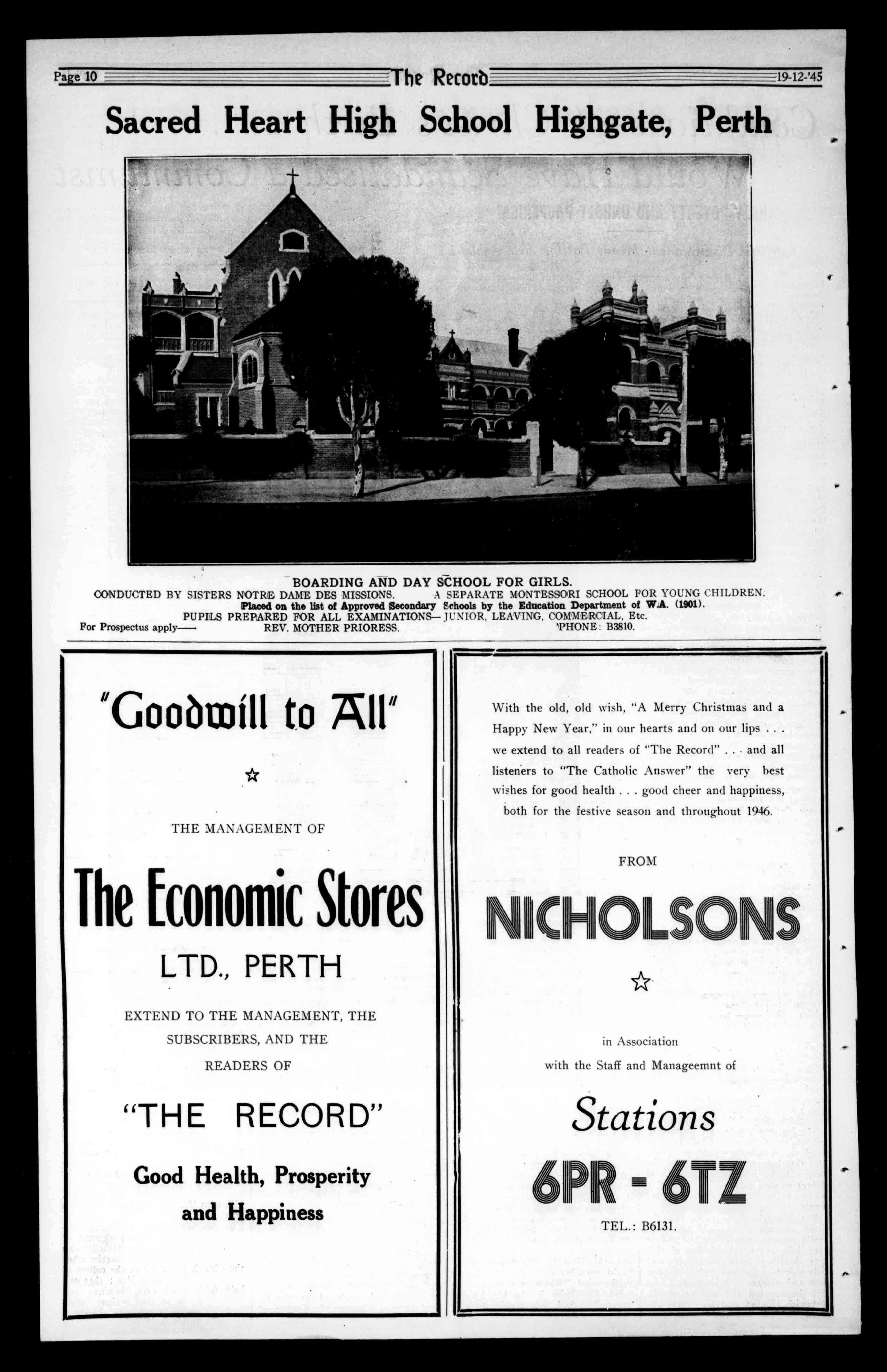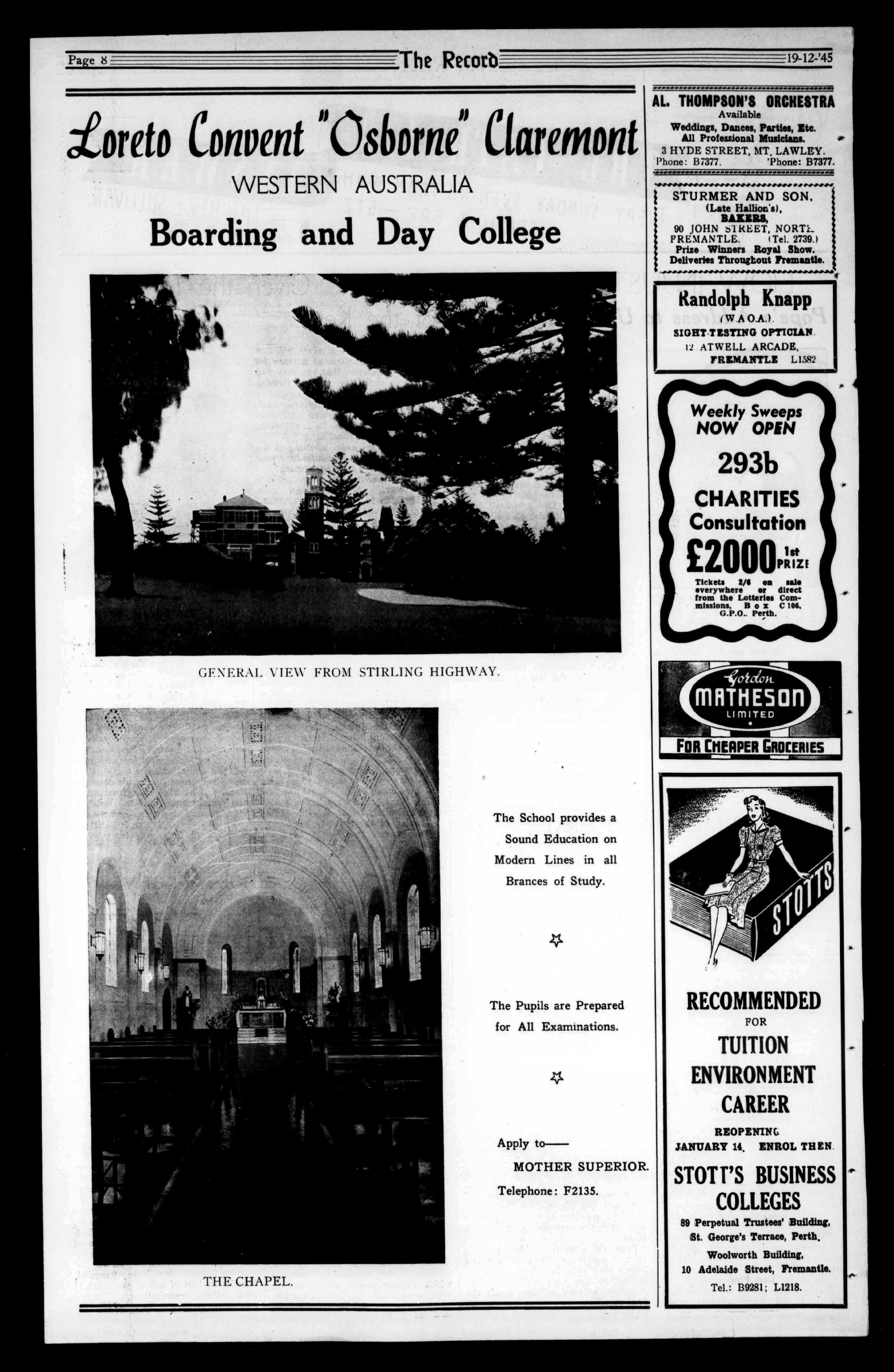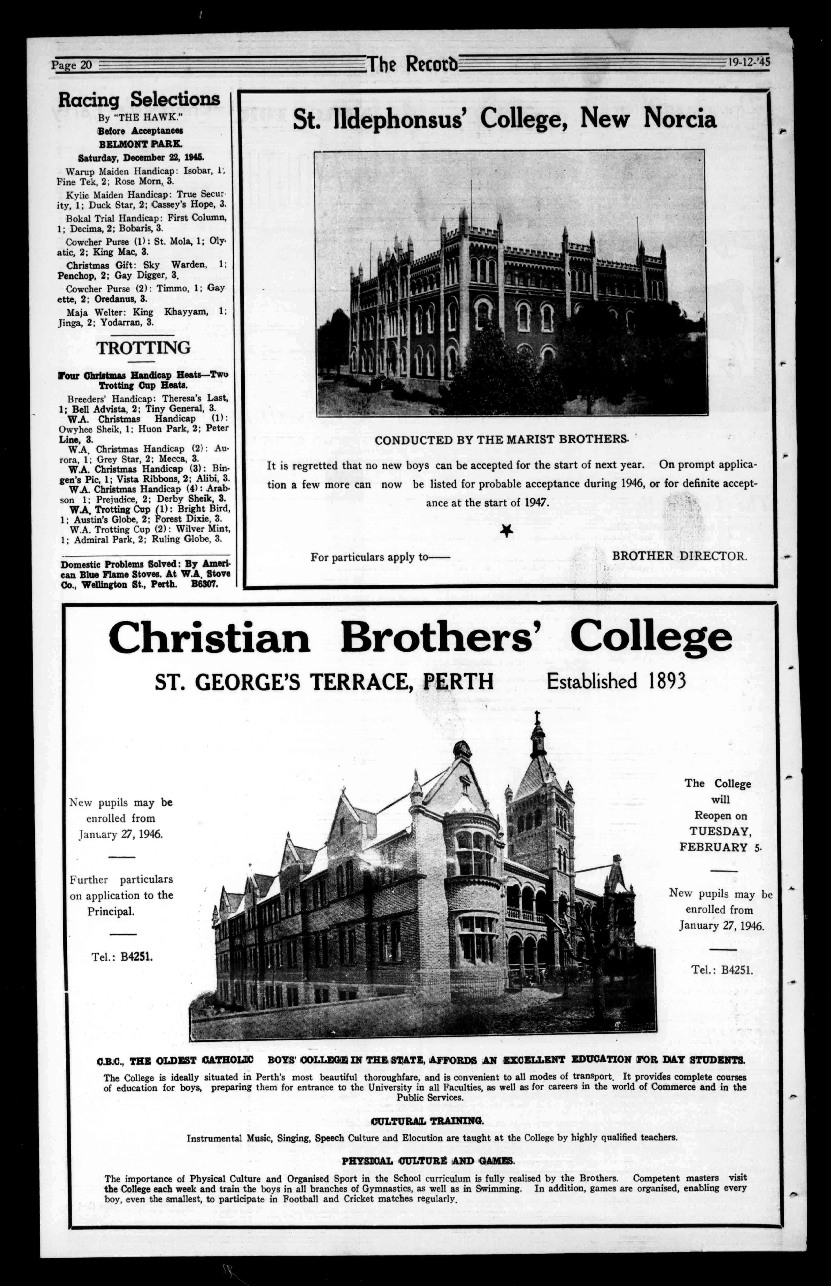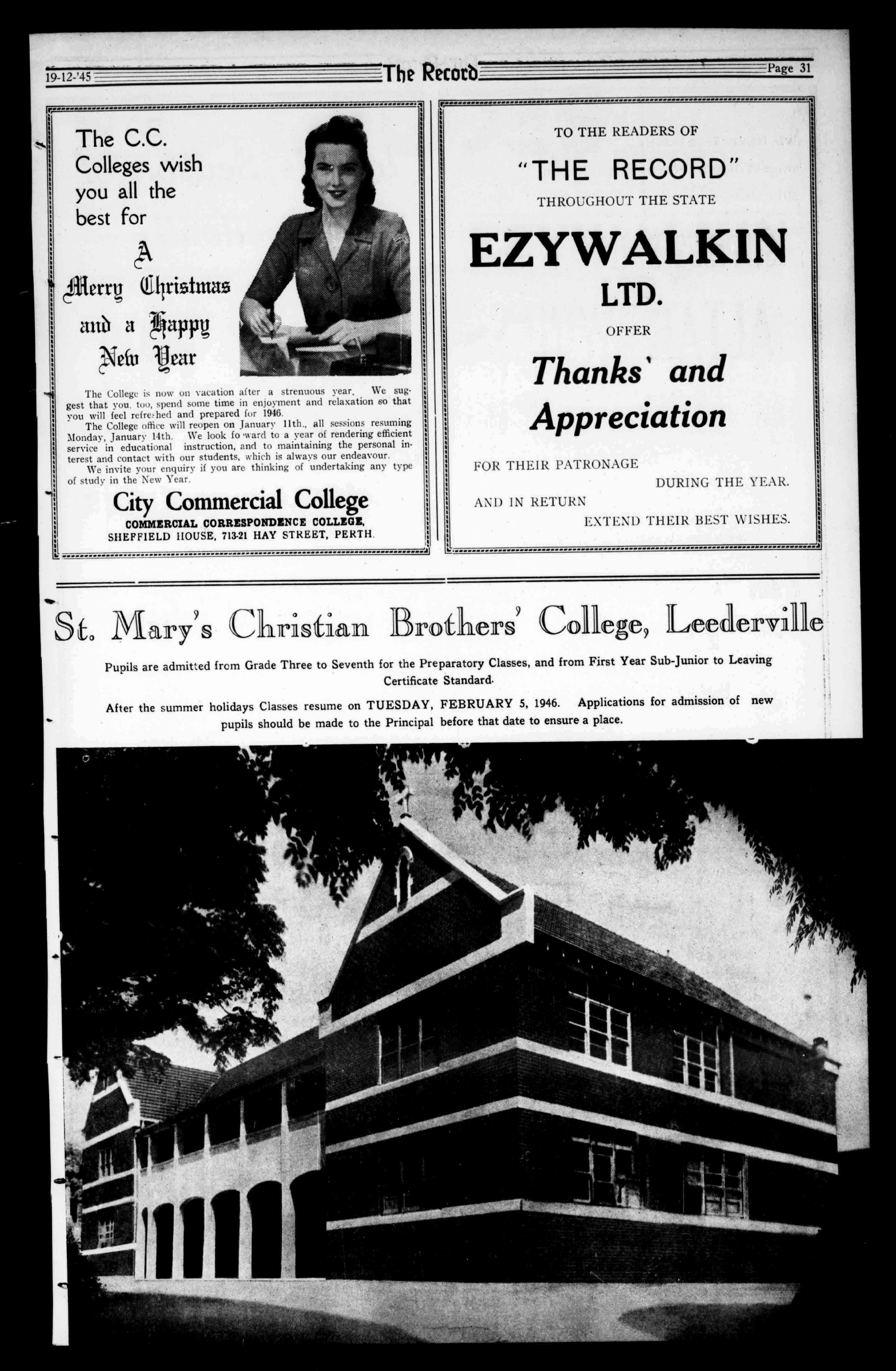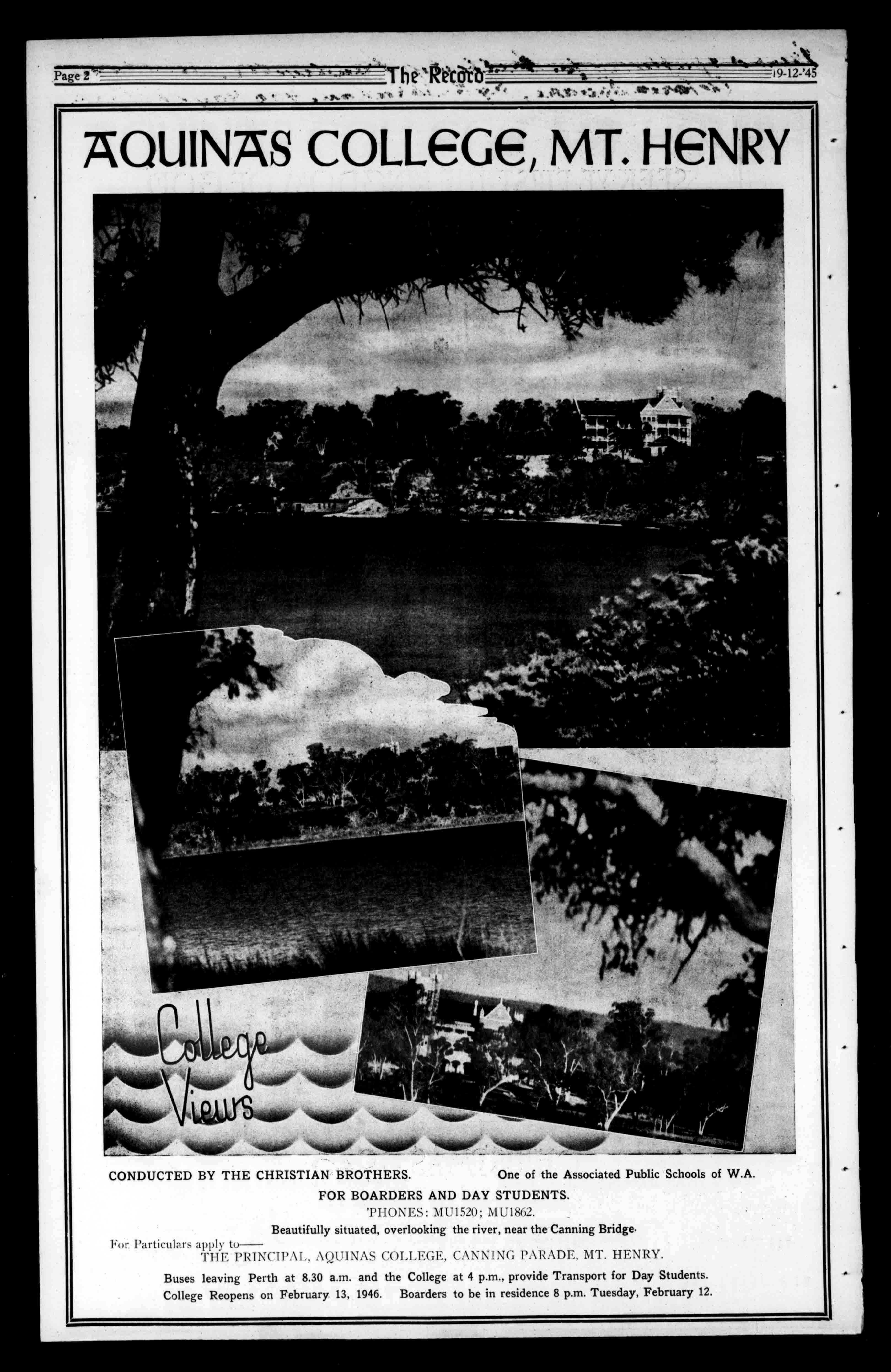 BusesleavingPerthat8.30a.m.andtheCollegeat4p.m.,provideTransportforDayStudents. CollegeReopensonFebruary13,1946.Boarderstobeinresidence8p.m.Tuesday,February12.