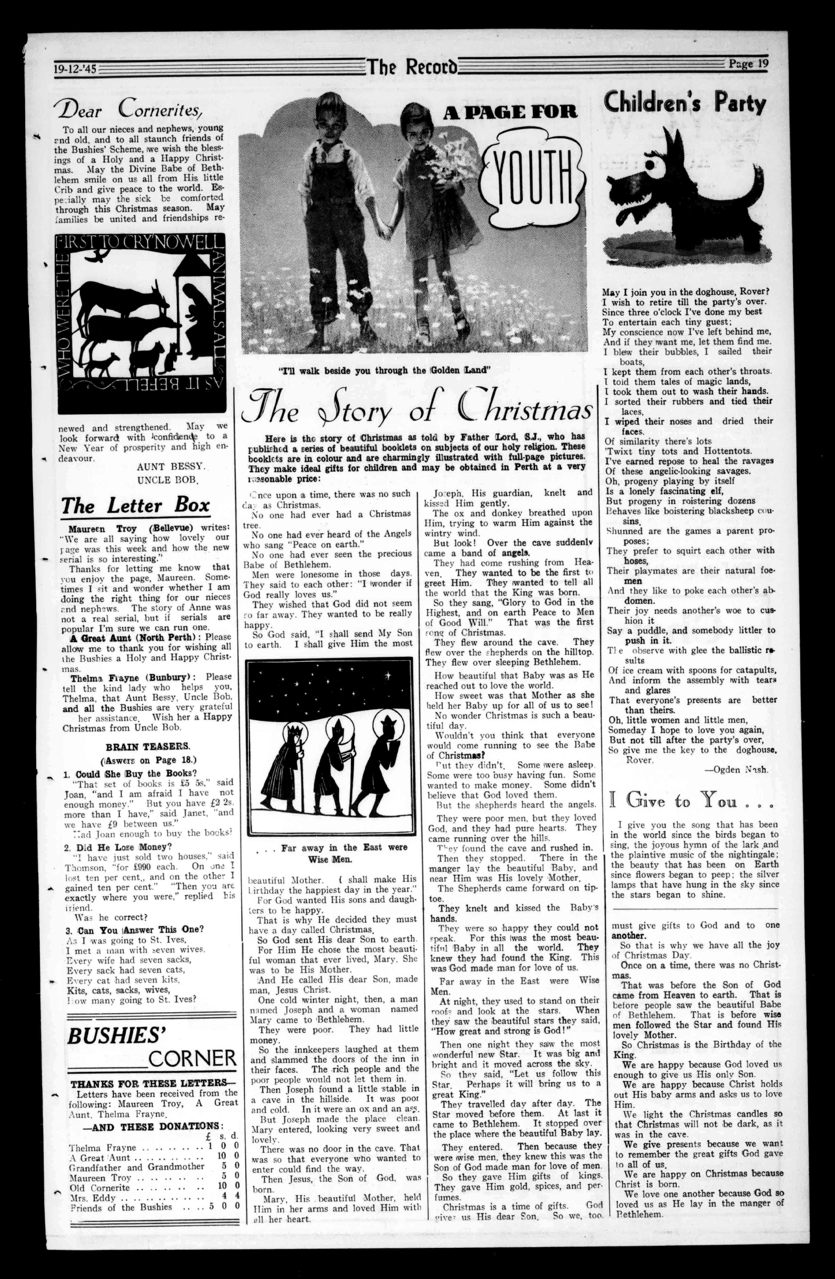 "OneChristmasmorning,many.many yearsago,"weread,"theLordwasso .muchpleasedwiththeprayersofthe childrenthatHewishedtoreward themfortheirloveofHim.