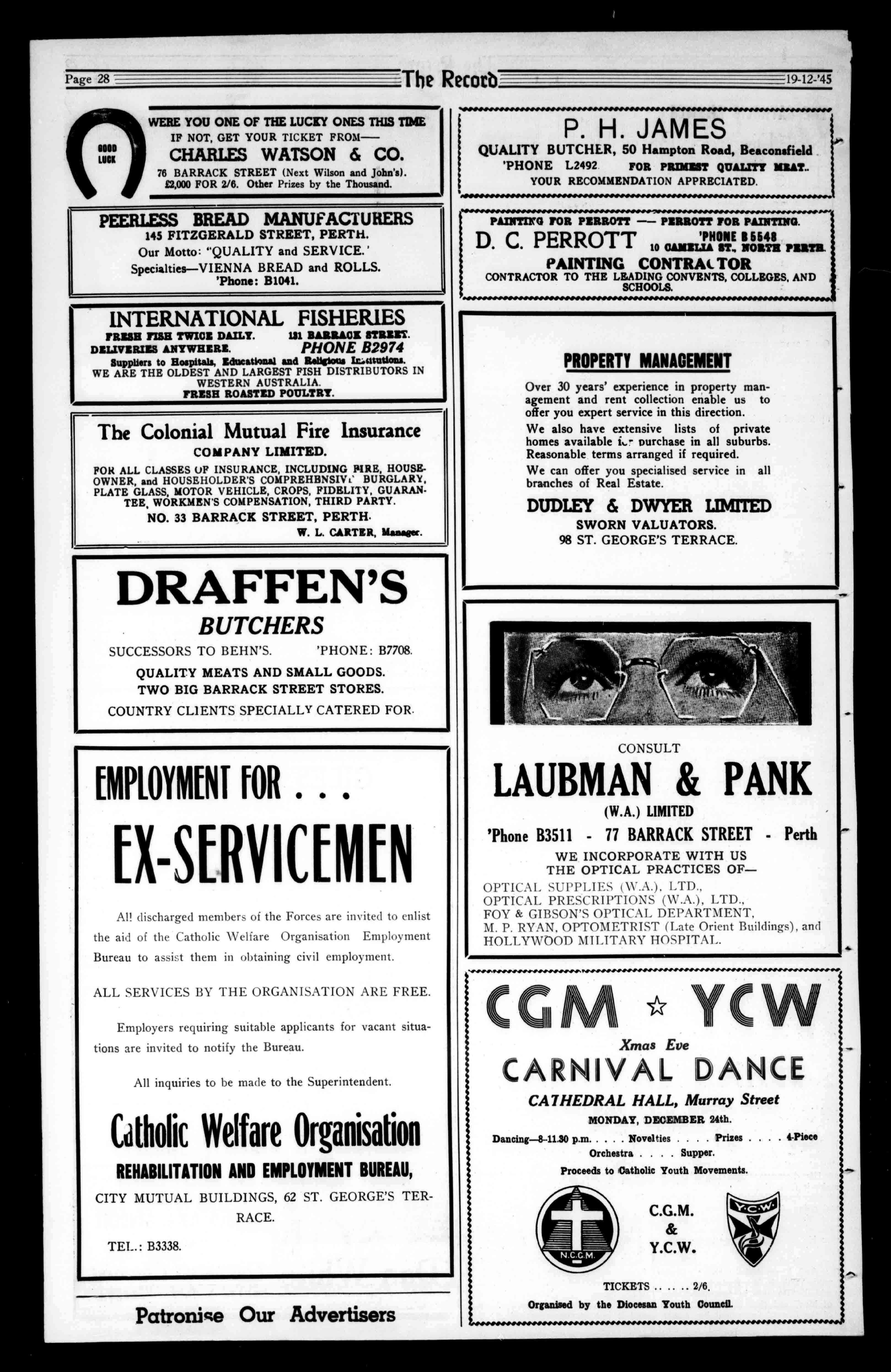Al!dischargedmembersoftheForcesareinvitedtoenlist theaidoftheCatholicWelfareOrganisationEmployment Bureautoassisttheminobtainingcivilemployment.